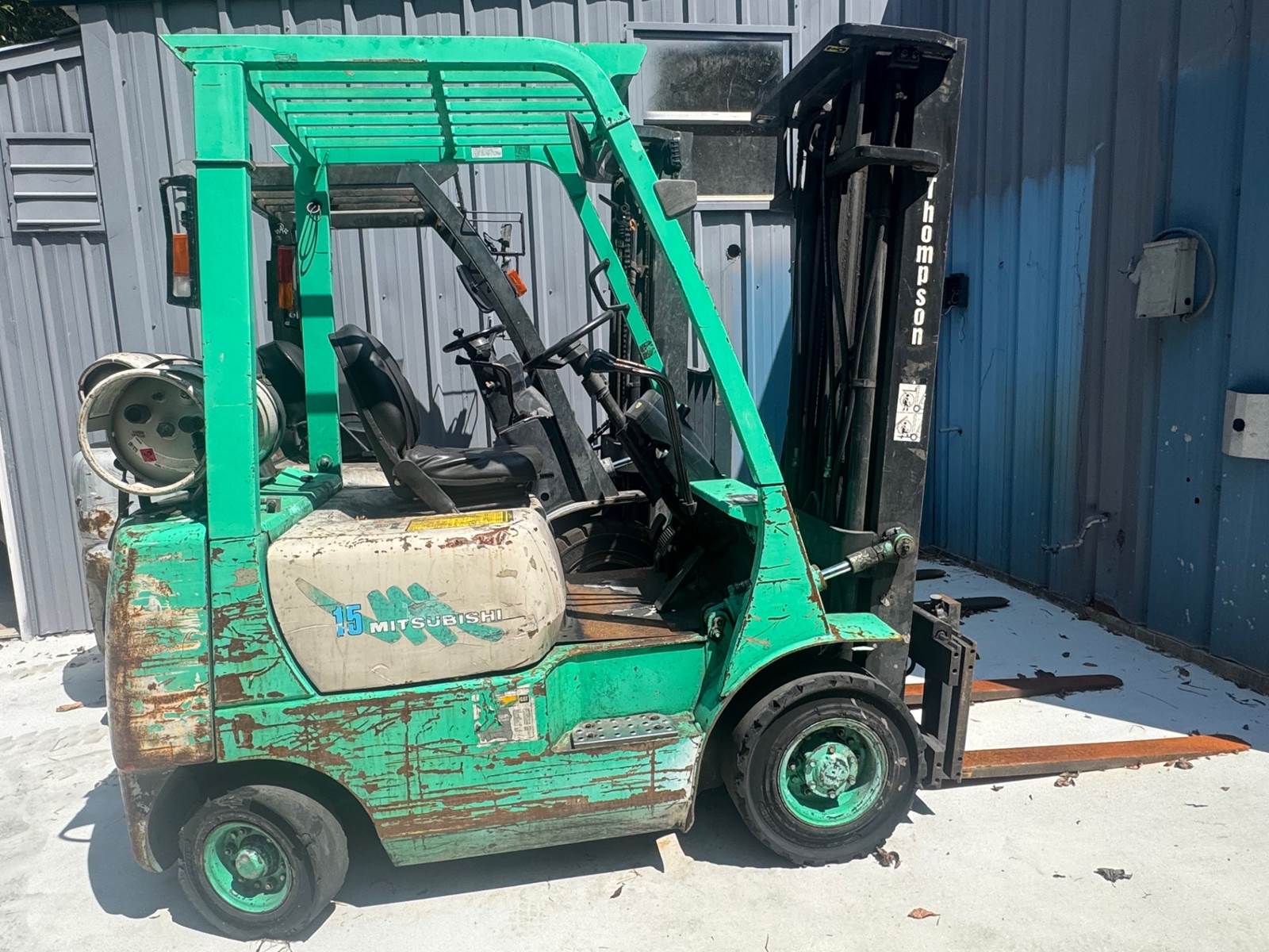 1996 MITSUBISHI FG15, S/N AF31-50713, 84/188" THREE STAGE MAST, 3,000LBS CAP, 2,218HRS, LP/GAS, PNEUMATIC TIRES, SIDE-SHIFT, 42" FORKS, RUNS AND OPERATES.