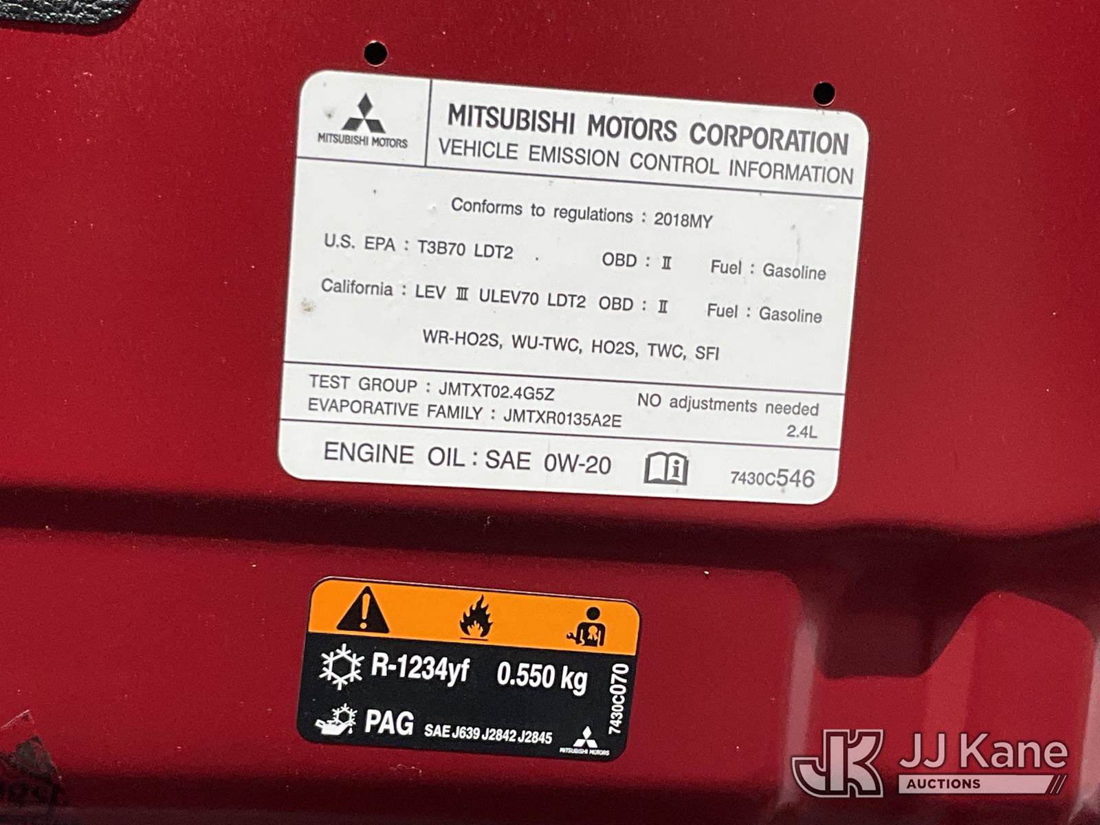 2018 Mitsubishi Outlander AWD 4-Door Sport Utility Vehicle, 4-cyl gas, Auto, A/C, (118,423 miles) (Runs, Does Not Move, Overheats) This is a Titled Item NOTE: This unit is being sold AS IS/WHERE IS via Timed Auction and is located in Salt Lake City, UT. Inspection & preview days for this unit are the 2 business days prior to the first day of items closing for this auction, item is located at 2353 N Redwood Rd Salt Lake City, UT 84116 and hours of operations are 8a-4p. Titles executed exactly as bidder registered. Ensure your name and/or business name and address in JJ Kane and/or ProxiBid is correct before bidding. For pre-sale questions, please contact Office Staff @ (801) 519-0123. (Buyer is responsible for removal. Assistance by consignor or JJ Kane Auctions is not assured.)