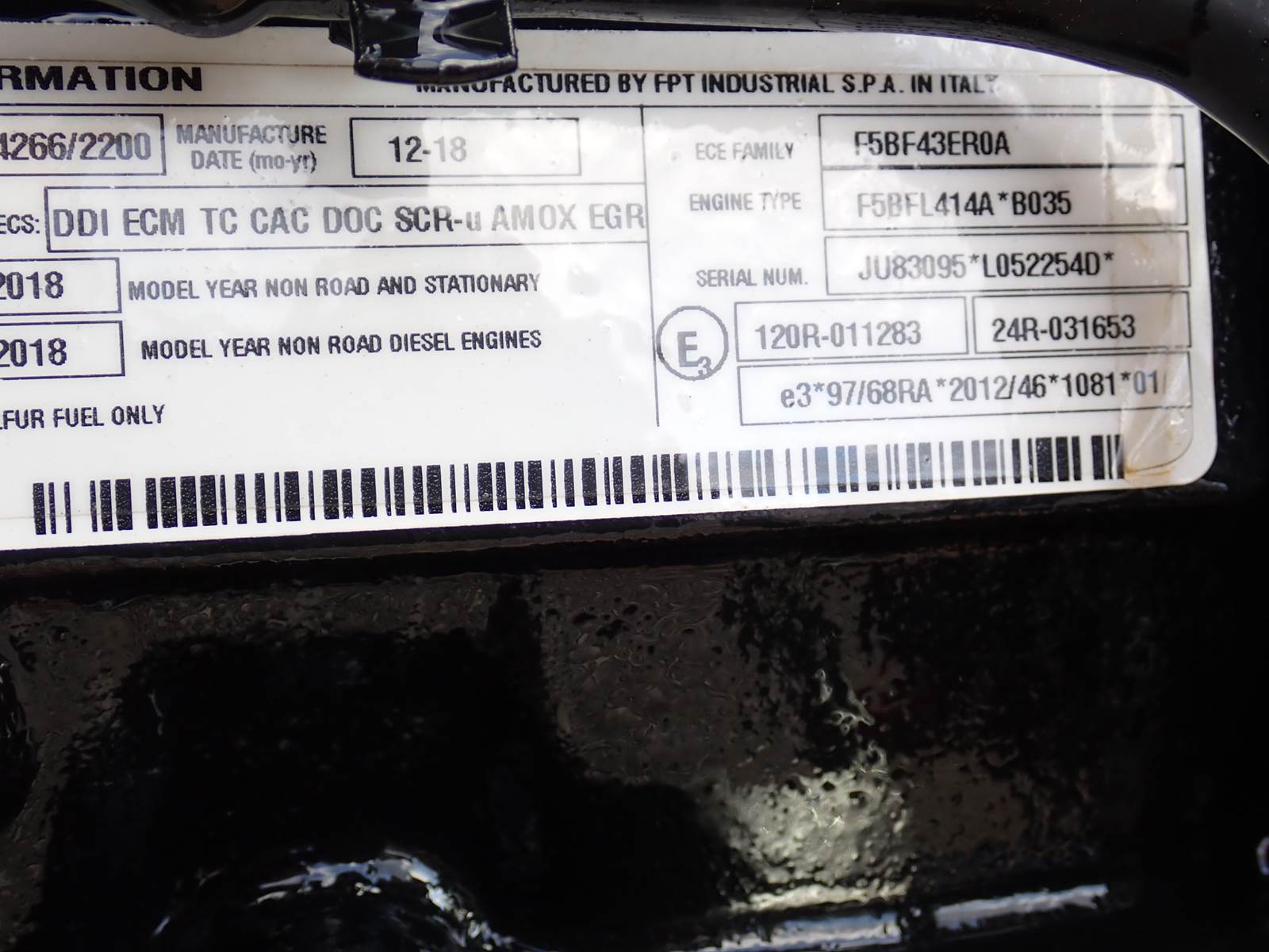 2018 Perkins 854F-E34TAN diesel engine, complete power unit w/ accessories as pictured, 122 HP at 2200 RPM, DEF required, Tier 4 final emissions, JU83301 build code, family F5BF43ER0A, same as many FPT 3.4 liter engines and CAT C3.4B engines. EMISSIONS FAMILY IS JFPXL03.4FSD, WILL INTERCHANGE W/ MOST ENGINES USING THE SAME FAMILY, CONTACT US FOR HELP W/ INTERCHANGE. Used in CAT telehandlers including TL943D machines and MANY others. COMPLETE, FULLY DRESSED POWER UNIT HERE -- USE THIS FOR STATIONARY POWER OR WHATEVER ELSE YOU NEED IT FOR !!