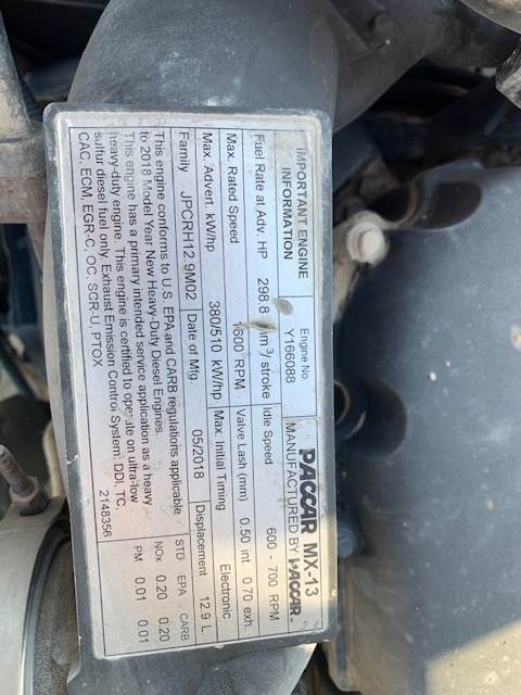 2018 Peterbilt 579, Paccar Engine, 485 HP, Engine Brake, Allison 12 speed Automatic Transmission, (overhauled with 5000 miles), GVWR-52000, 216 inch wheelbase, Wet Kit,Power Door Locks and Windows, A./C, 415,584 miles.