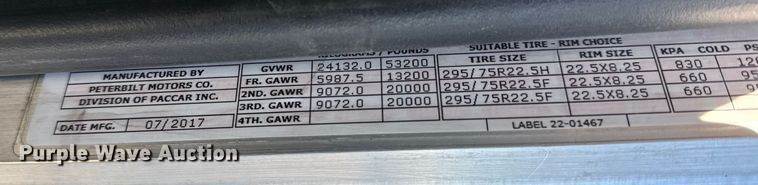 2017 Peterbilt 389 semi truck, Miles: 962,658 on odometer, Hours: 22,585 on meter, VIN: 1XPXD49X5HD367845, Engine, Cummins ISX,...