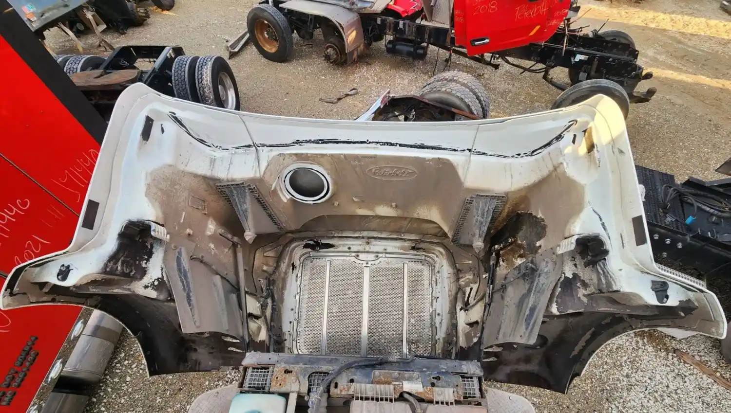 (Used) 2018 Peterbilt 567, HOOD ASSEMBLY- Length: 47" From Cowl to grille, Color: White, Material: Fiberglass, It's Damaged!! Reference images for condition, For more information about this item, give us a call. We ship Worldwide! (CRG HEAVY TRUCK PARTS) 929 W PULASKI HWY ELKTON, MD 21921, Length: 47", From Cowl to grille,, Type: Manual