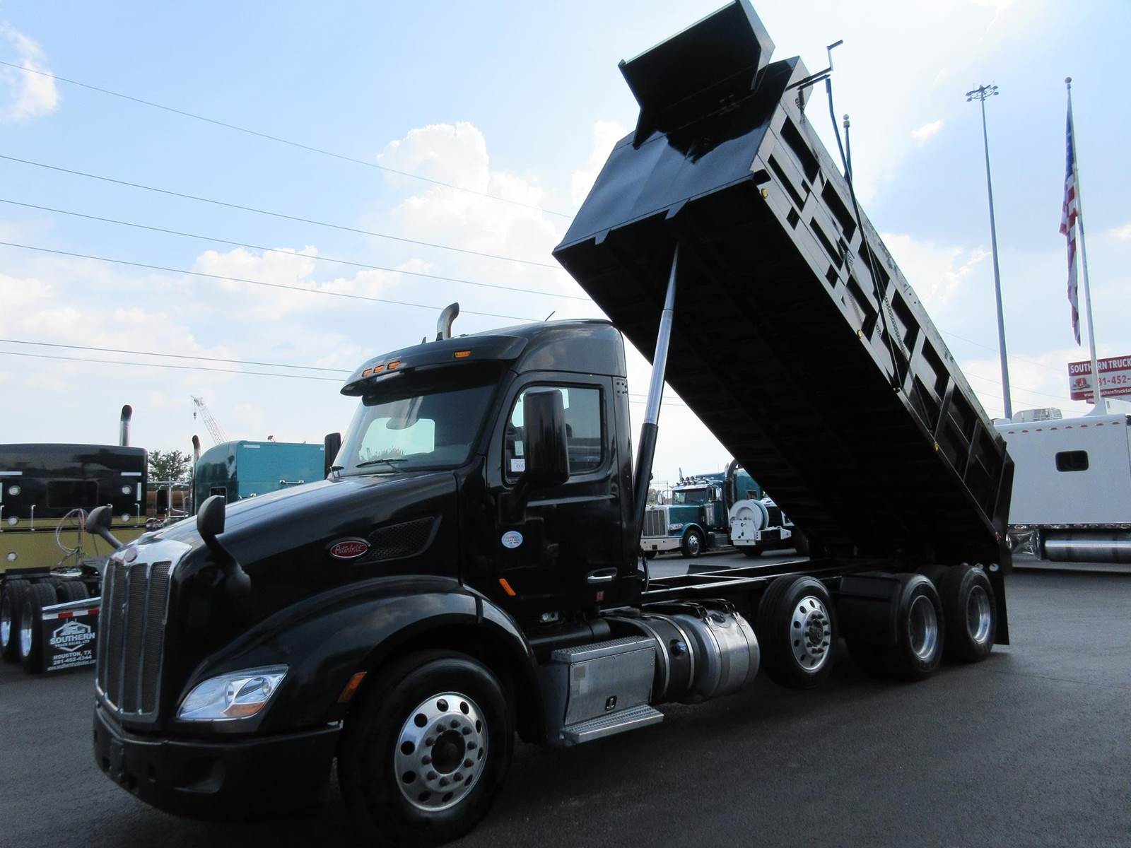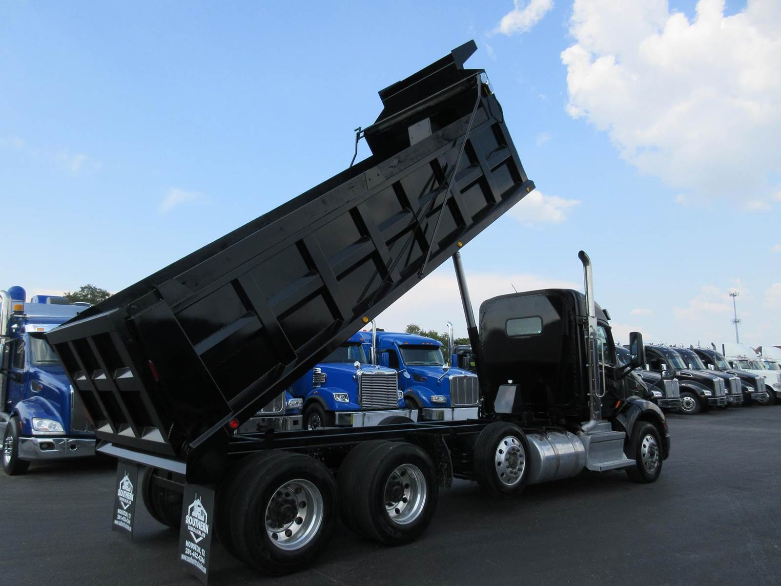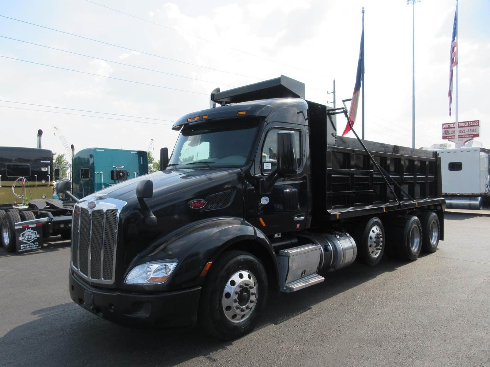 CLEAN PETERBILT 579 TRI AXLE DUMP TRUCK, PACCAR MX-13 455HP, 12 SPEED AUTOMATIC, 13,000 LBS DROP AXLE, 13,200 FAW, NEW 19' X 48" DUMP BED, PTO, HYDRAULICS & TANK! 20 CU YARD CAPACITY!! DISC BRAKES, GOOD RUBBER, LEGACY DRIVER SEAT, CLEAN PAINT NO BODY DAMAGE, READY TO WORK! CAN ADD ADDITIONAL 13K PUSHER AXLE. Please visit our website southerntrucksales or call for all our other sleeper trucks available over 125 trucks all makes and models available.