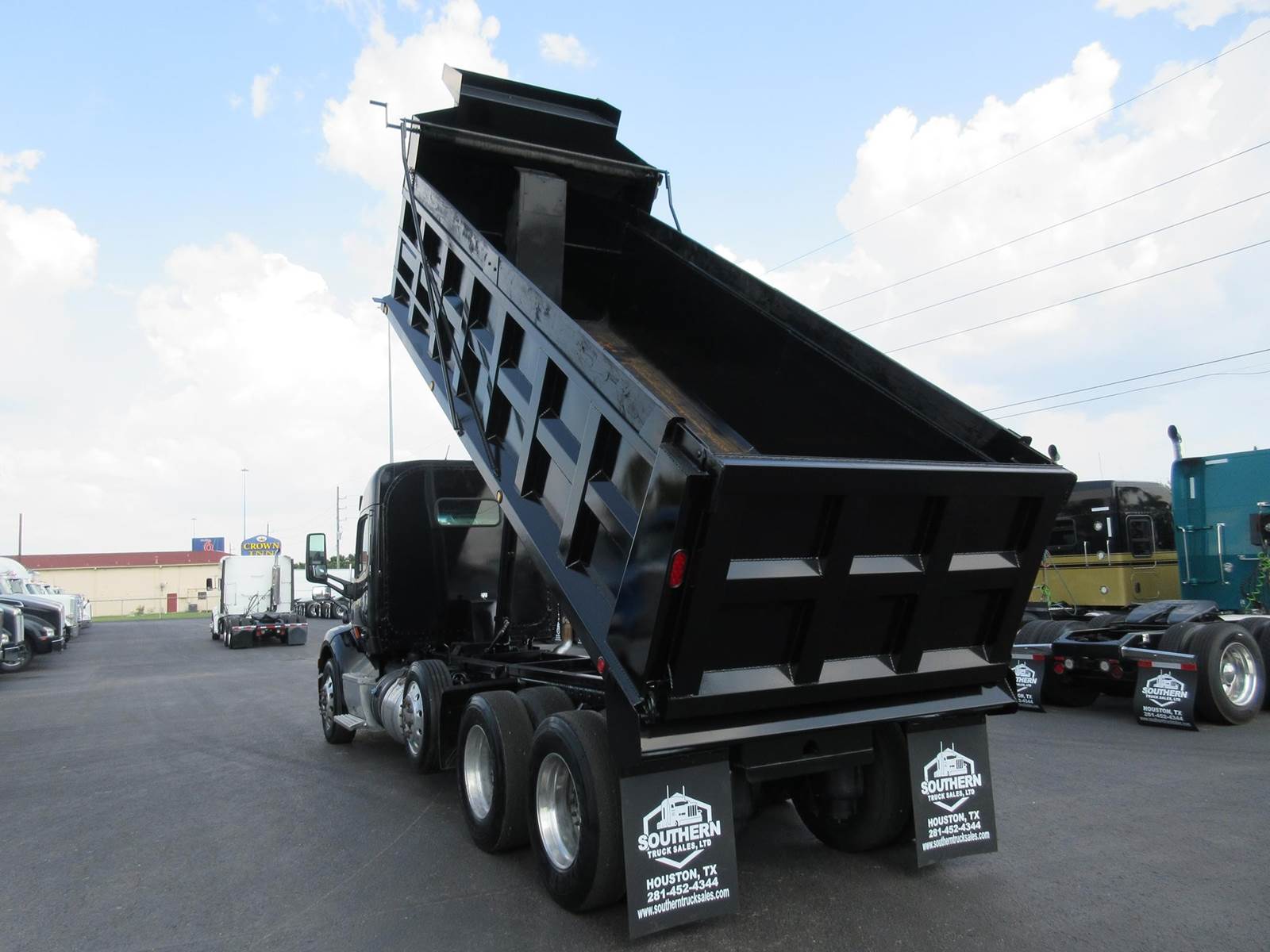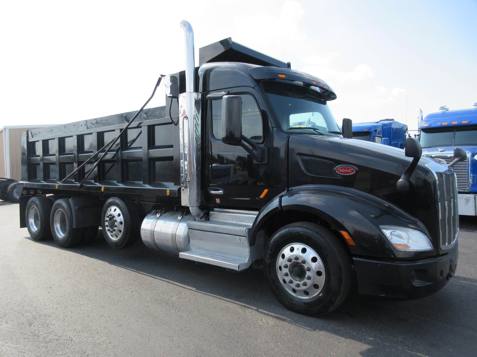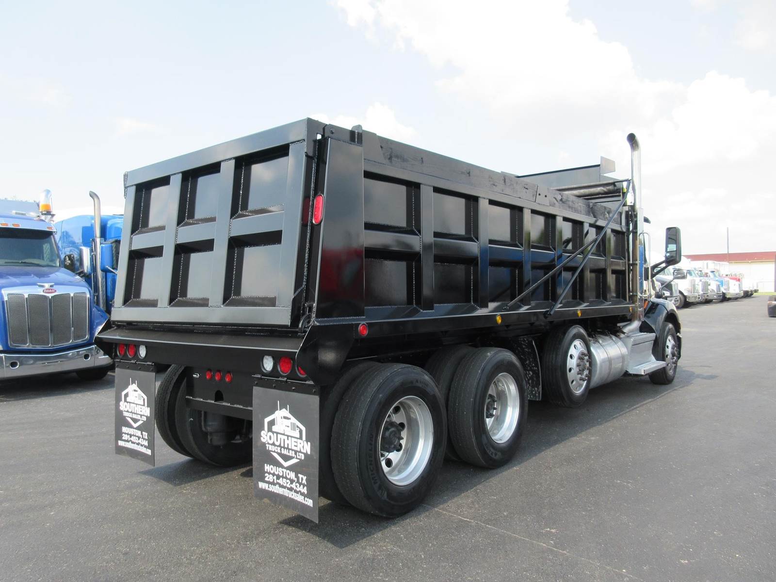 CLEAN PETERBILT 579 TRI AXLE DUMP TRUCK, PACCAR MX-13 455HP, 12 SPEED AUTOMATIC, 13,000 LBS DROP AXLE, 13,200 FAW, NEW 19' X 48" DUMP BED, PTO, HYDRAULICS & TANK! 20 CU YARD CAPACITY!! DISC BRAKES, GOOD RUBBER, LEGACY DRIVER SEAT, CLEAN PAINT NO BODY DAMAGE, READY TO WORK! CAN ADD ADDITIONAL 13K PUSHER AXLE. Please visit our website southerntrucksales or call for all our other sleeper trucks available over 125 trucks all makes and models available.