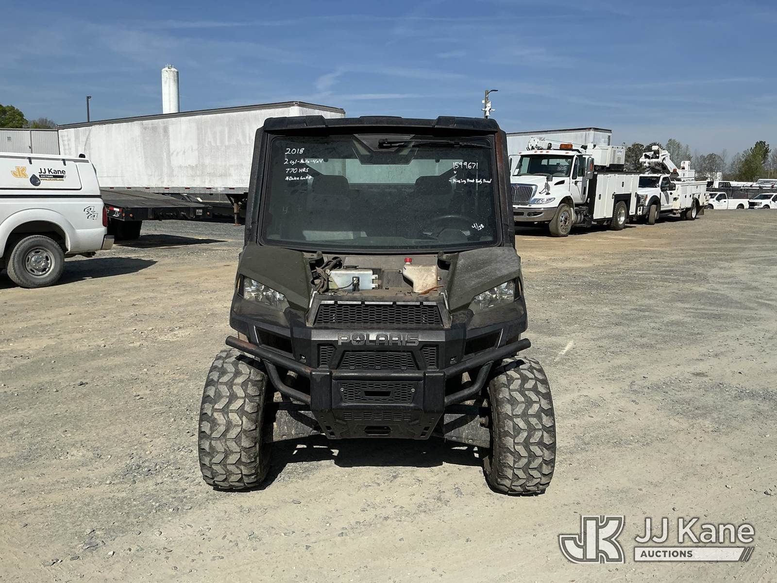 2018 Polaris RANGER XP900 All-Terrain Vehicle, s/n 4XARVA875J8031920, 875cc gas, Auto, (Duke Unit) (Runs & Moves) (Missing Front Body Panel ) (Reads 770 hours) NOTE: This unit is being sold AS IS/WHERE IS via Timed Auction and is located in China Grove, NC. Inspection & preview days for this unit are the 2 business days prior to the first day of items closing for this auction, item is located at 820 E NC Hwy 152 China Grove, NC 28023 and hours of operations are 8a-4p. For pre-sale questions, please contact Office Staff @ (704) 674-1113. (Buyer is responsible for removal. Assistance by consignor or JJ Kane Auctions is not assured.)