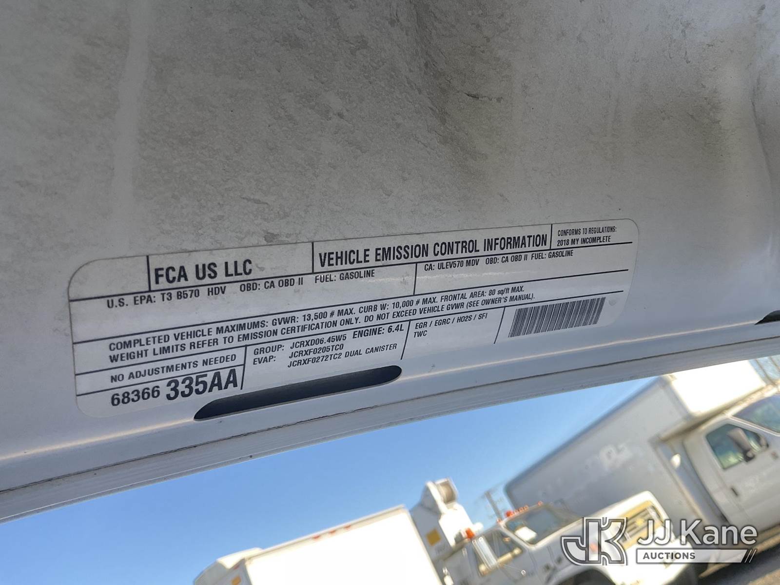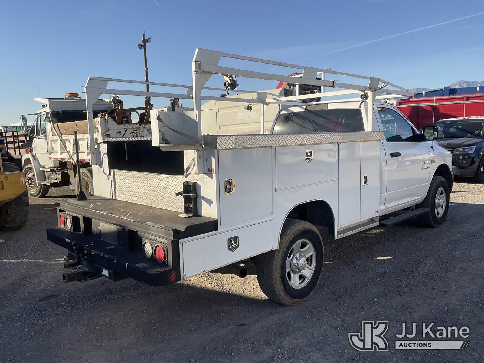 2018 RAM 3500 Service Truck, 8-cyl gas, 6-Speed Automatic, A/C, (78,623 miles) (Runs & Moves) (Hood Is Missing Shocks, Check Engine Light On) (Bidding Restricted to Licensed Vehicle Dealers Only), This is a Titled Item NOTE: This unit is being sold AS IS/WHERE IS via Timed Auction and is located in Jurupa Valley, CA. Inspection & preview days for this unit are the 2 business days prior to the first day of items closing for this auction, item is located at 4510 Muth Way Jurupa Valley, CA 92509 and hours of operations are 8a-4p. For pre-sale questions, please contact please contact Office Staff @ (310) 353-7140. Dealer License Number 45696. (Buyer is responsible for removal. Assistance by consignor or JJ Kane Auctions is not assured.)