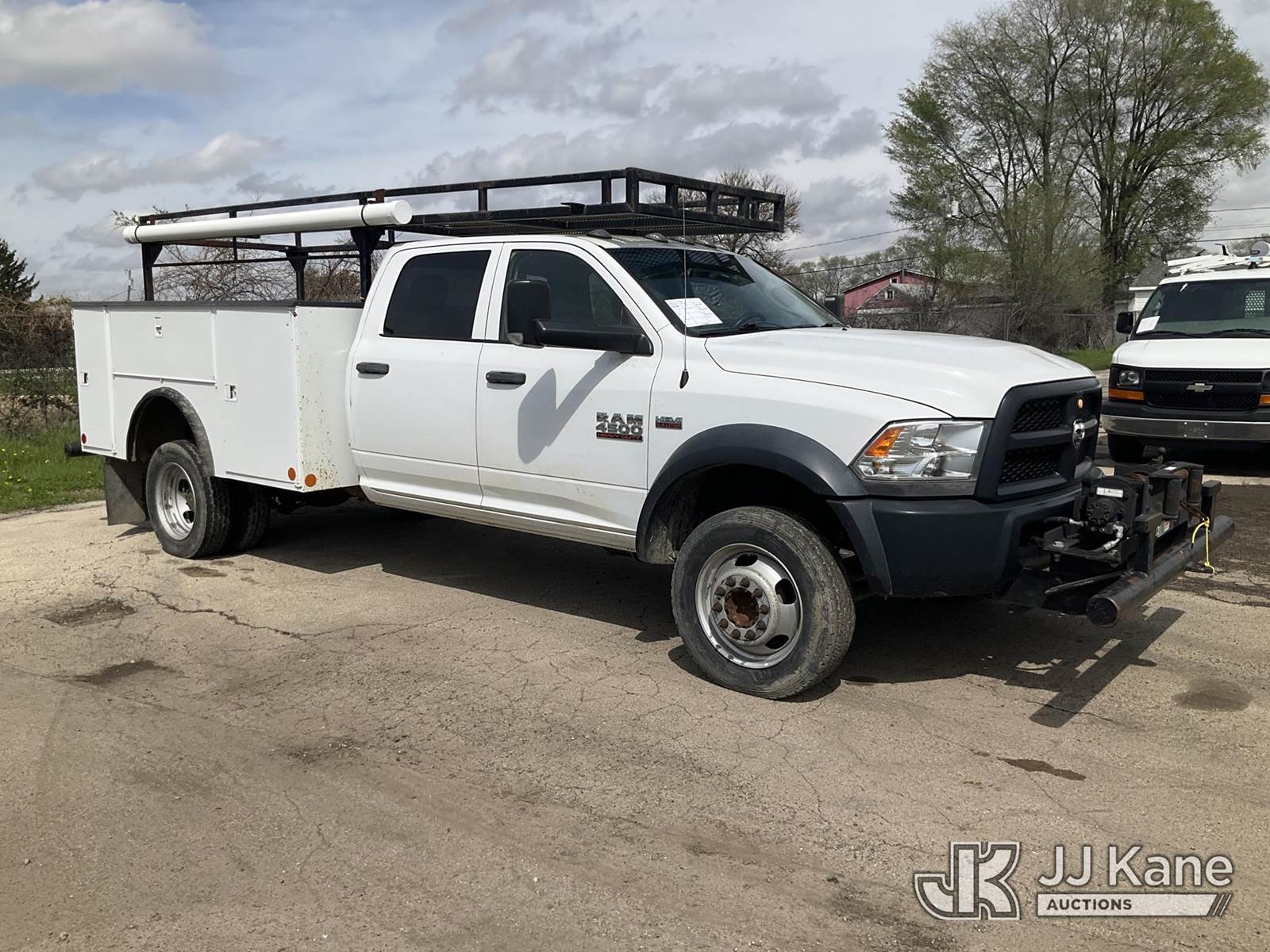 2018 RAM 4500 Crew-Cab Service Truck, 8-cyl 4WD, Gas, Auto, A/C, with front bumper winch, ladder rack, (46,521 miles) ((Runs, Moves, & Operates) (Dash Warning Indicator On)) This is a Titled Item NOTE: This unit is being sold AS IS/WHERE IS via Timed Auction and is located in South Beloit, IL. Inspection & preview days for this unit are the 2 business days prior to the first day of items closing for this auction, item is located at 14354 Dearborn Ave South Beloit, IL and hours of operations are 8a-4p. For pre-sale questions, please contact Derek Eklund at (608) 904-0618 or (derek.eklund@jjkane.com). (Buyer is responsible for removal. Assistance by consignor or JJ Kane Auctions is not assured.)