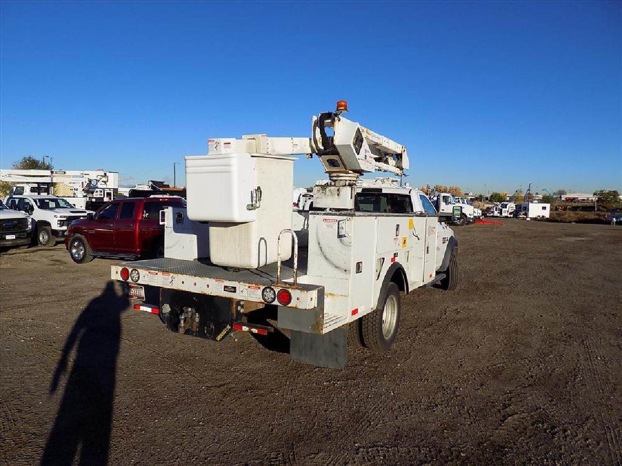2018 Dodge 5500 Diesel 4x4 Terex LT-40 Bucket Truck, Cummins 6.7L Diesel Engine, 56,160 Miles and 4,140 Hours, 6 Speed Automatic Overdrive Transmission, 19,500 L.B. GVWR, 4.88 Gear Ratio, 168" W.B. 225/70R19.5 Rubber on Steel Wheels, P/S A/C, High Back Bucket Seats with Fold Down Center Console, Dakota Bodies Utility Bed Model DK68234 with Optional Shelving Package, Pintle Ball Combo Rear Hitch. Unit sold as-is where-is in Denver CO. Inspection completed by a non-bias, qualified, 3rd party. Additional findings, videos, and photos can be found on the circle inspection icon below. Financing and transportation available