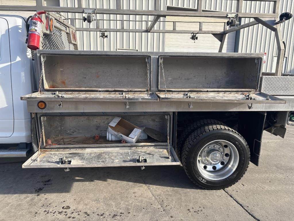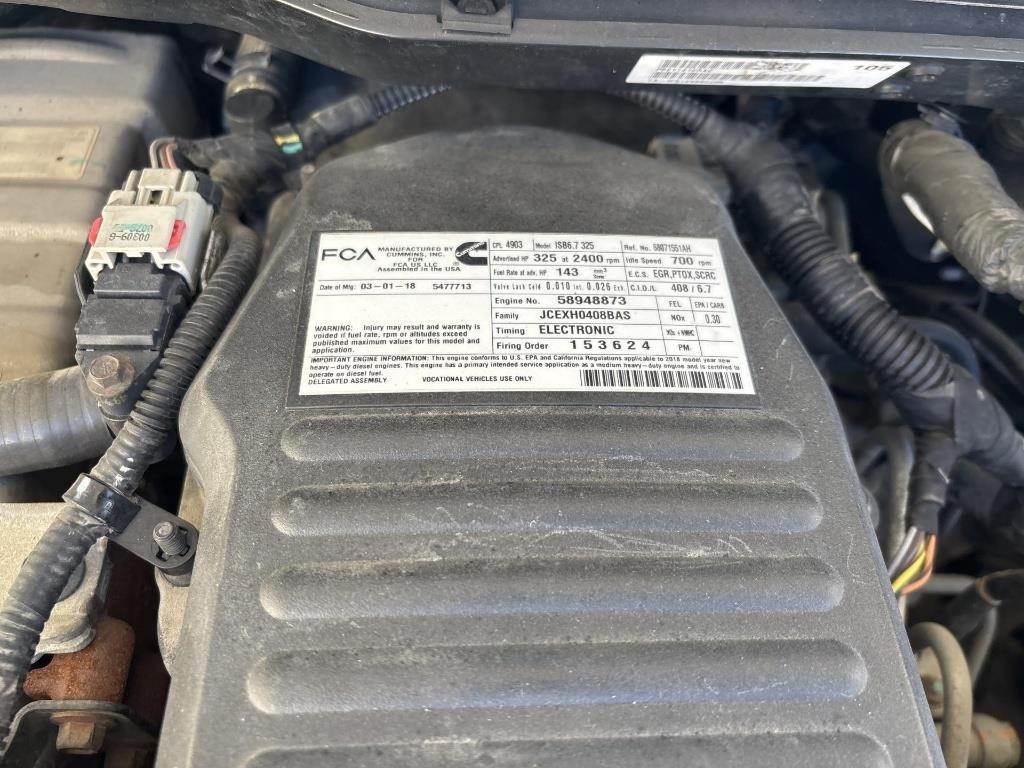 Location: Iowa City, IA 6.7L Cummins Turbo Diesel Engine, Automatic Transmission, 4x4, Approx. 11‘ Service Bed, 6 Tool Box Compartments, Ladder Rack, Fire Extinguisher, Pintle/Ball Hitch, GVWR: 19500lbs, Single Cab, Center Counsel Seat, Heat, AC, Bluetooth Radio, Exhaust Brakes, Integrated Trailer Brakes, Cruise Control, Full Power Mirrors/Locks/Windows, Backup Camera, 225/70R19.5 Tires VIN: 3C7WRNBL0JG246342 Miles Shown: 28061