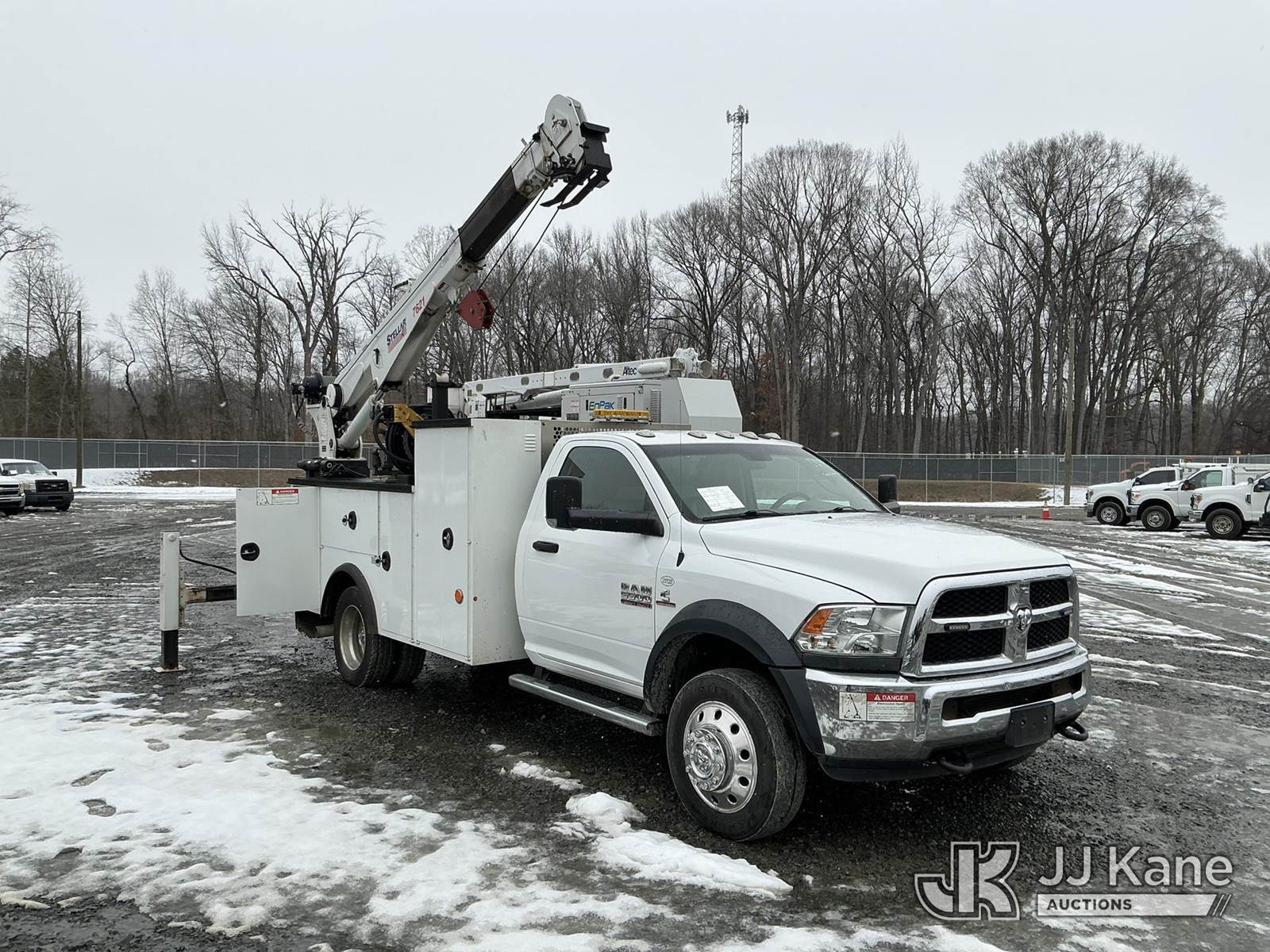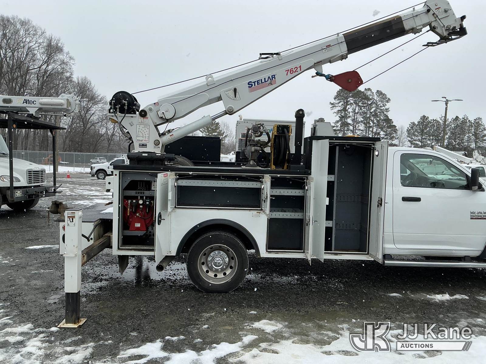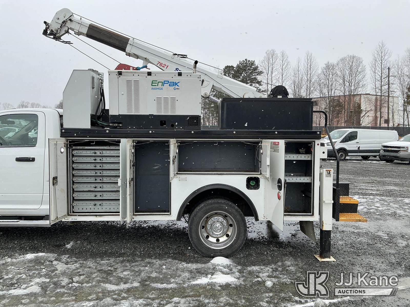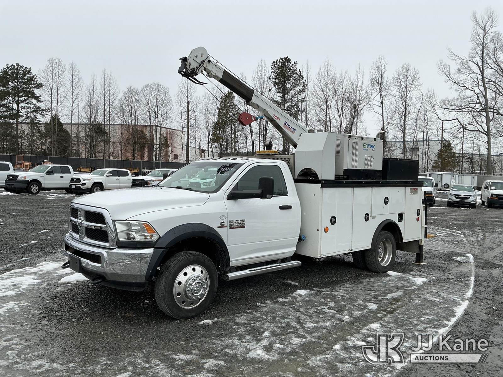 2018 RAM 5500 Service Truck, Cummins 6.7L diesel, Auto, A/C, with Stellar 7621 crane w/remote, EnPak A60HGE hyd air compressor w/hose reel, 6k generator, EnVerter, waste oil recovery system , (187,580 miles) (Runs, Moves & Upper Operates) (Check Engine Light On ) This is a Titled Item NOTE: This unit is being sold AS IS/WHERE IS via Timed Auction and is located in China Grove, NC. Inspection & preview days for this unit are the 2 business days prior to the first day of items closing for this auction, item is located at 820 E NC Hwy 152 China Grove, NC 28023 and hours of operations are 8a-4p. For pre-sale questions, please contact Office Staff @ (704) 674-1113. (Buyer is responsible for removal. Assistance by consignor or JJ Kane Auctions is not assured.)