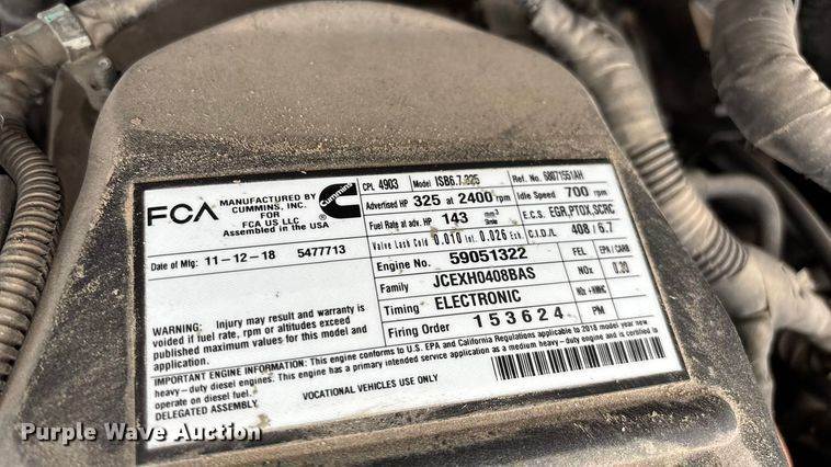 2019 RAM 3500 utility / service truck, Miles: 233,107 on odometer, Hours: 5,644 on meter, VIN: 3C7WRTCL0KG670611, Engine, Cummins B6.7 360...