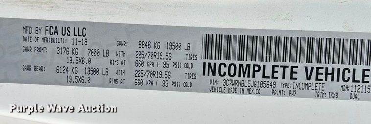 2018 RAM 5500 utility / service truck, Miles: 85,477 on odometer, Hours: 2,461 on meter, VIN: 3C7WRMBL1JG383428, Engine, Cummins,...