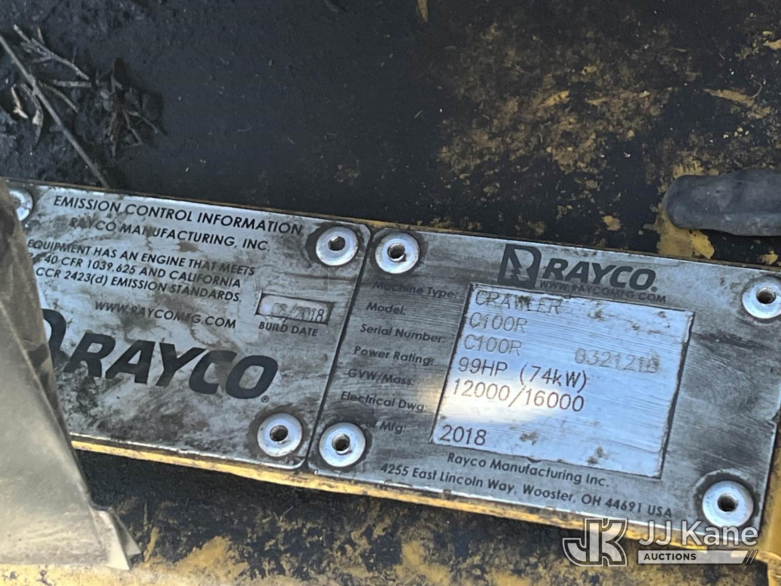 2018 Rayco C100 Crawler Shredder/Mulcher, s/n C100R0321218, Kubota Hydrostatic, diesel, (Runs & Operates) (Control Screen Damaged, Cannot Verify Hours, Does Not Cut Off at Key) (Seller States: Engine Issues) NOTE: This unit is being sold AS IS/WHERE IS via Timed Auction and is located in Chester, VA. Inspection & preview days for this unit are the 2 business days prior to the first day of items closing for this auction, item is located at 13301 Great Coastal Dr Chester, VA 23836 and hours of operations are 8a-4p. For pre-sale questions, please contact Zach Geller @ 804-807-4574. (Buyer is responsible for removal. Assistance by consignor or JJ Kane Auctioneers is not assured.)