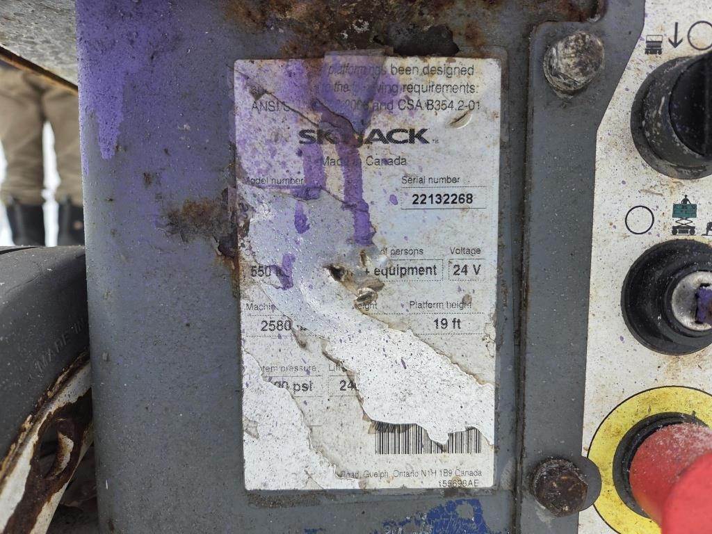 Location: ISA Yard: Merrill, WI Electric Over Hydraulic, 24V, 550LB Capacity, 19' Max Platform Height, Extendable Platform, Upper and Lower Controls, 12x4 Tires, Serial: 22132268 Hours Shown: NA