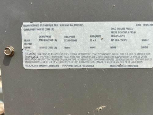 2018 SULLIVAN D185PDZSB AIR COMPRESSOR, 185cfm, Deutz diesel, portable. s/n:09802604-004-026; Trailer s/n:4YAHH1112JM003270 --(LOCATED IN MADERA, CA)--