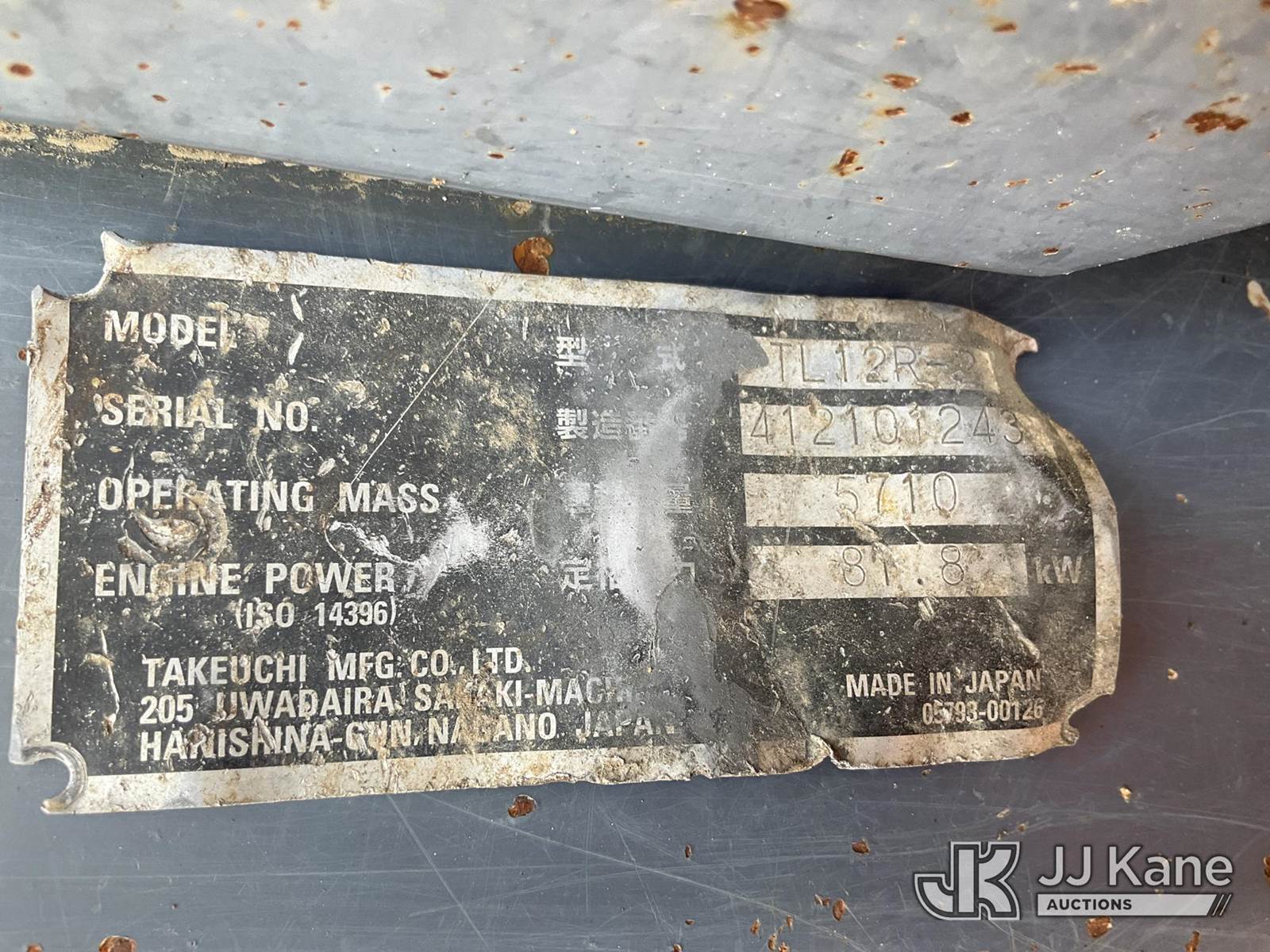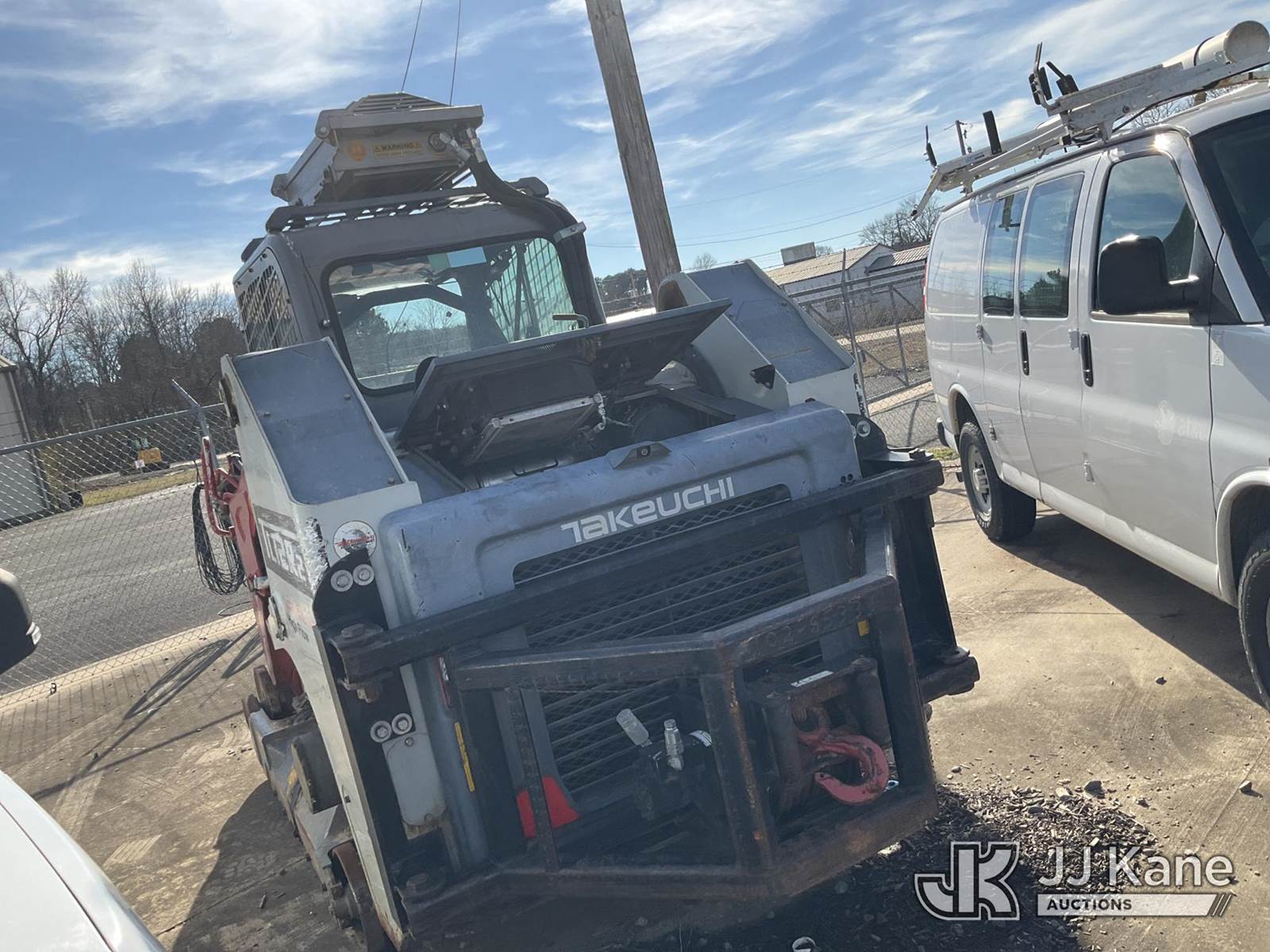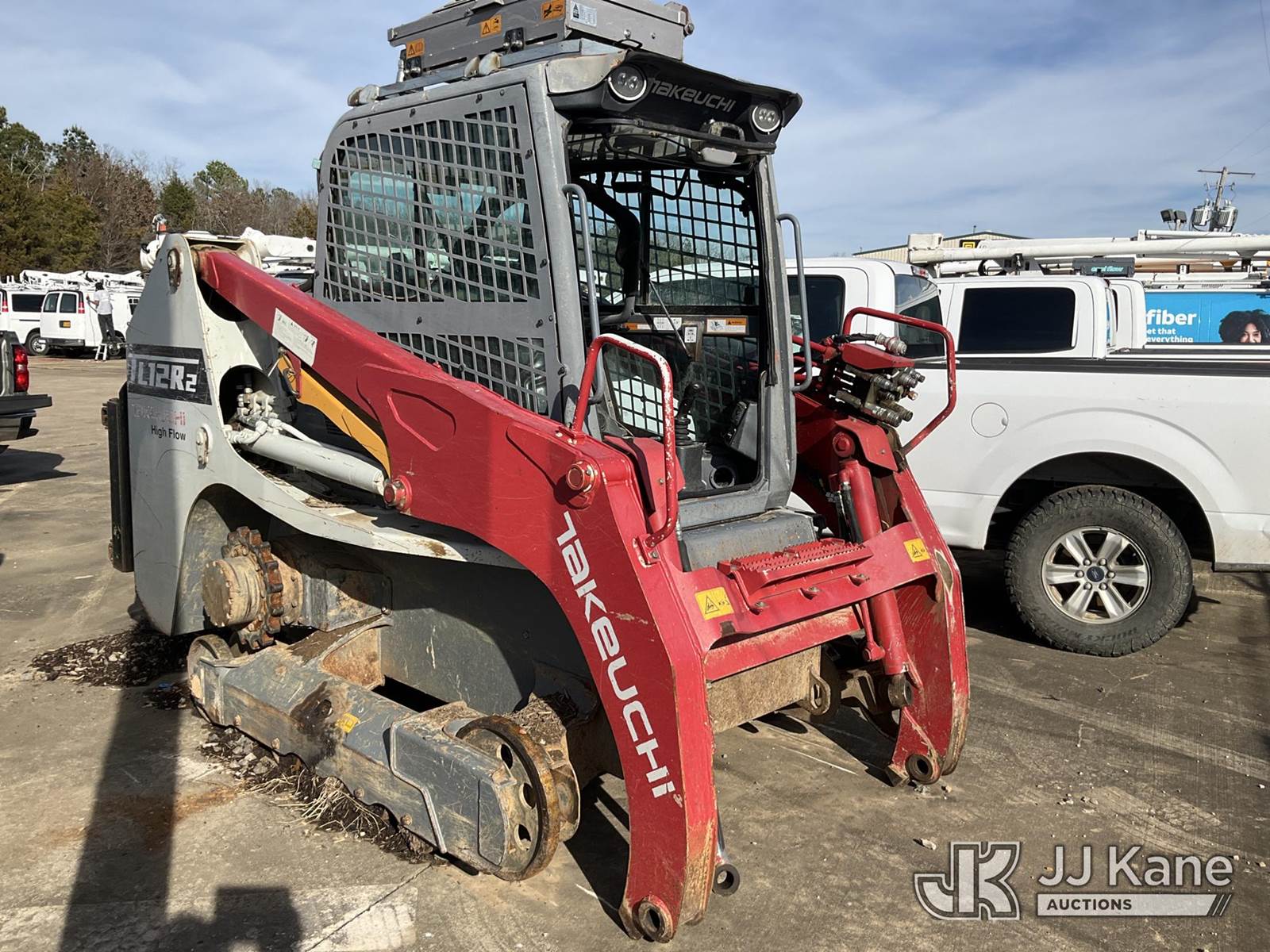 2018 Takeuchi TL12 Skid Steer, s/n 412101243, diesel, Hydraulic Drive, with rear winch, (Not Running, Condition Unknown, Fire Damage, Missing Tracks, No Attachments, further Conditions Unknown, Per Seller “The wiring harness melted and caused the unit to catch fire”) NOTE: This unit is being sold AS IS/WHERE IS via Timed Auction and is located in Conway, AR. Inspection & preview days for this unit are by appointment only; please contact us at contact@jjkane.com or 84-Go-JJKane for more details. (Buyer is responsible for removal. Assistance by consignor or JJ Kane Auctions is not assured.)