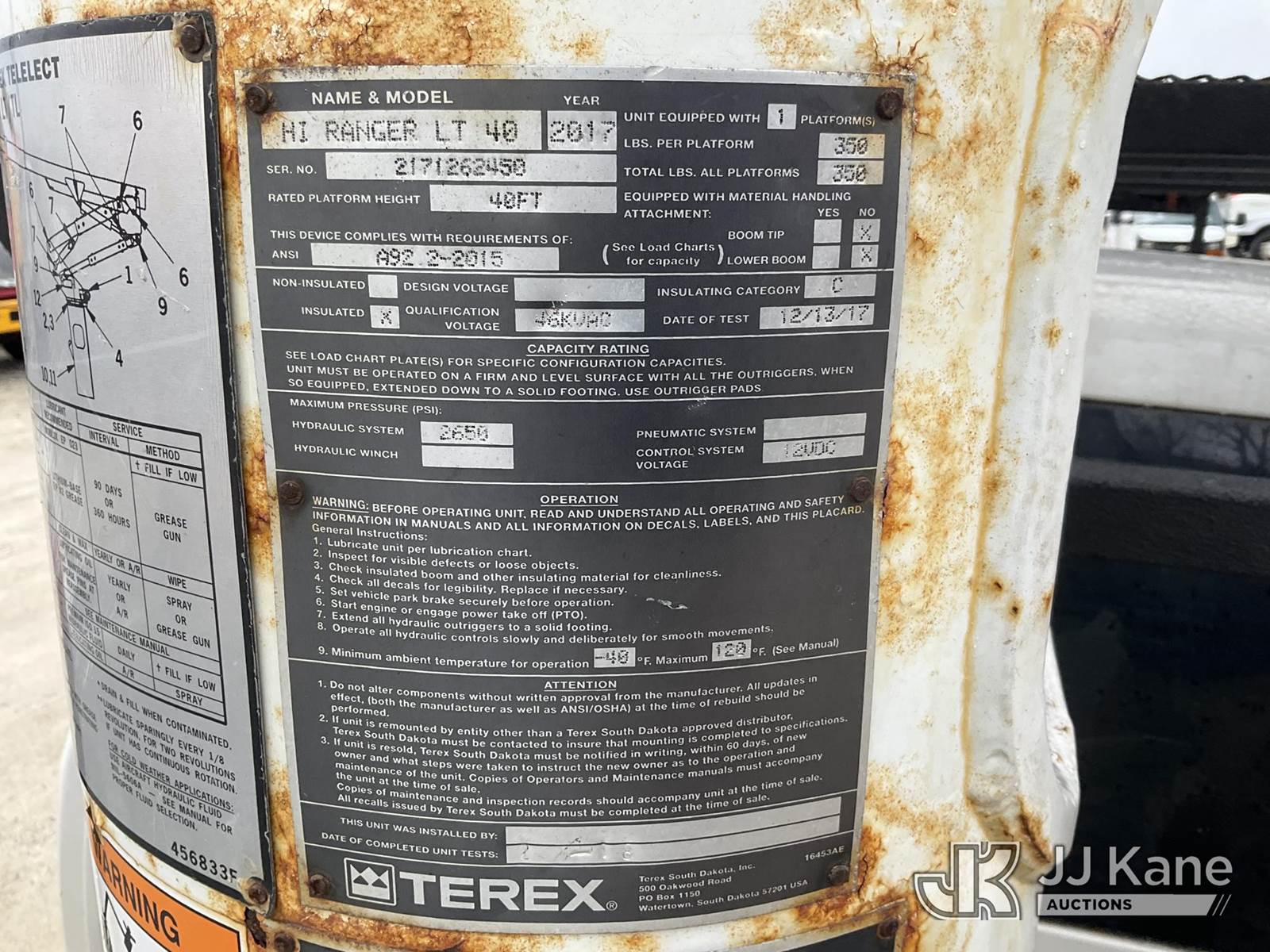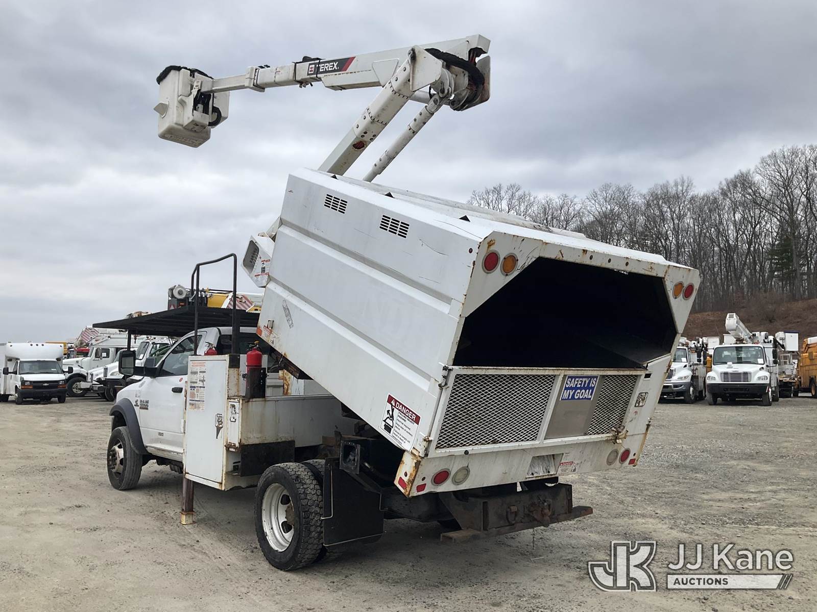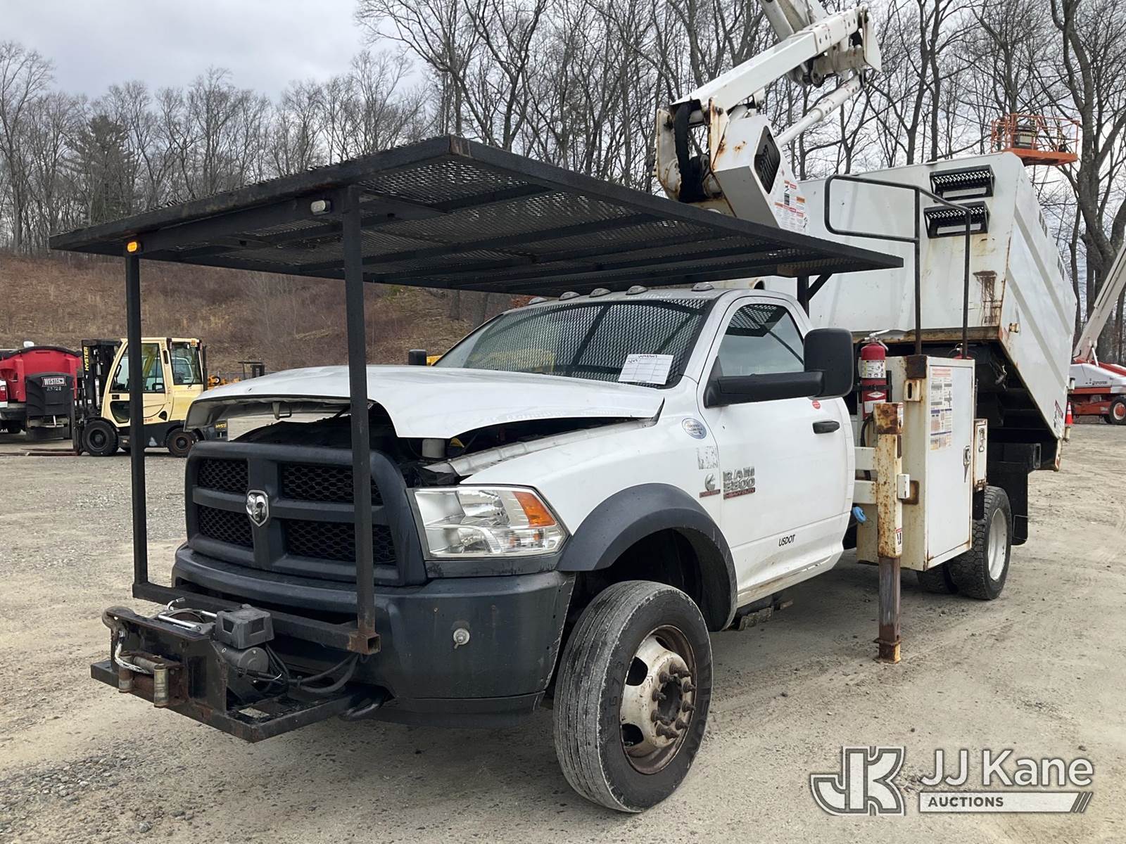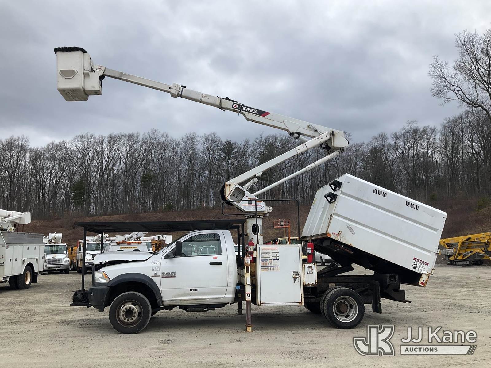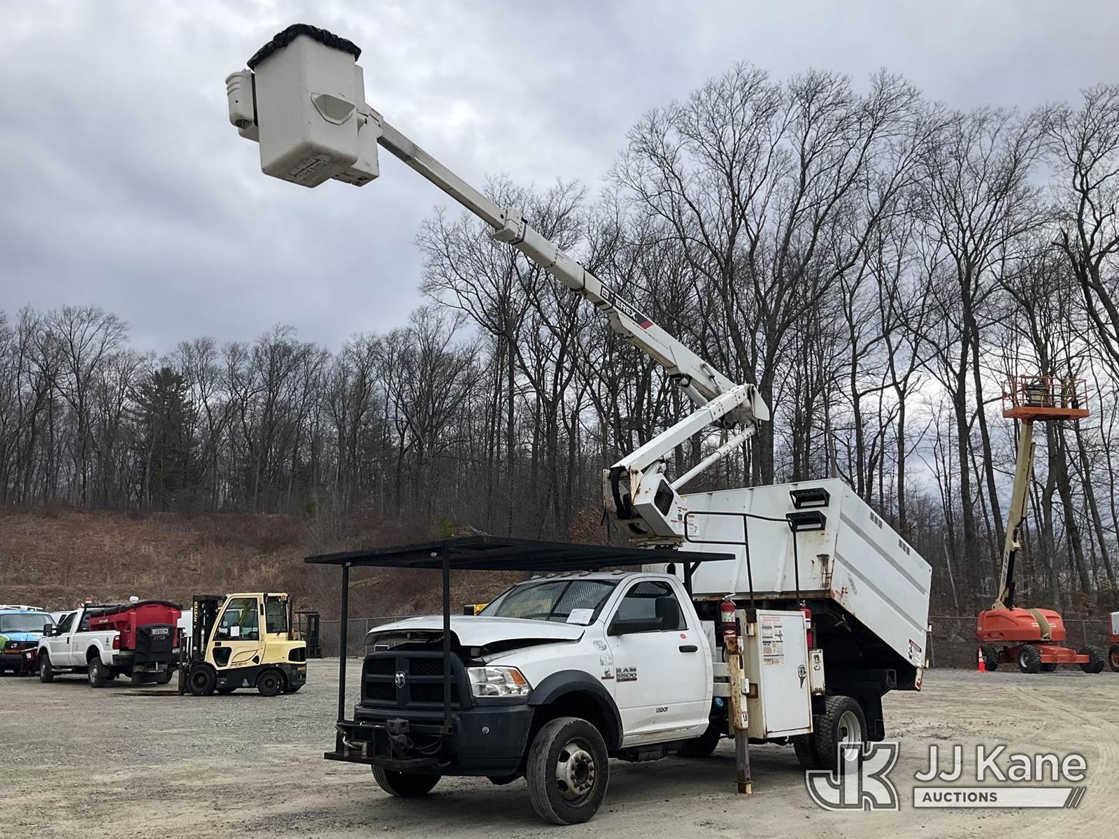 Terex LT40, 45 ft, Articulating & Telescopic Bucket Truck s/n 2171262450, with single-man bucket, mounted behind cab on 2018 RAM 5500 Regular Cab 4WD DRW Cummins 6.7L 4WD, diesel, Auto, A/C, (98,728 miles) (Runs, Moves & Upper Operates) (Multiple Lights On Dash, Battery/Charging System Issues, Seller States: Electrical Codes, Oil Pan Needs Repair) (Reads 7,035 hours) This is a Titled Item NOTE: This unit is being sold AS IS/WHERE IS via Timed Auction and is located in Shrewsbury, MA. Inspection & preview days for this unit are the 2 business days prior to the first day of items closing for this auction, item is located at 11 Fortune Blvd Shrewsbury, MA 01545 and hours of operations are 8a-4p. For pre-sale questions, please contact Rob Gifford @ (508) 864-4126. (Manuals provided in cab) (Buyer is responsible for removal. Assistance by consignor or JJ Kane Auctions is not assured.)