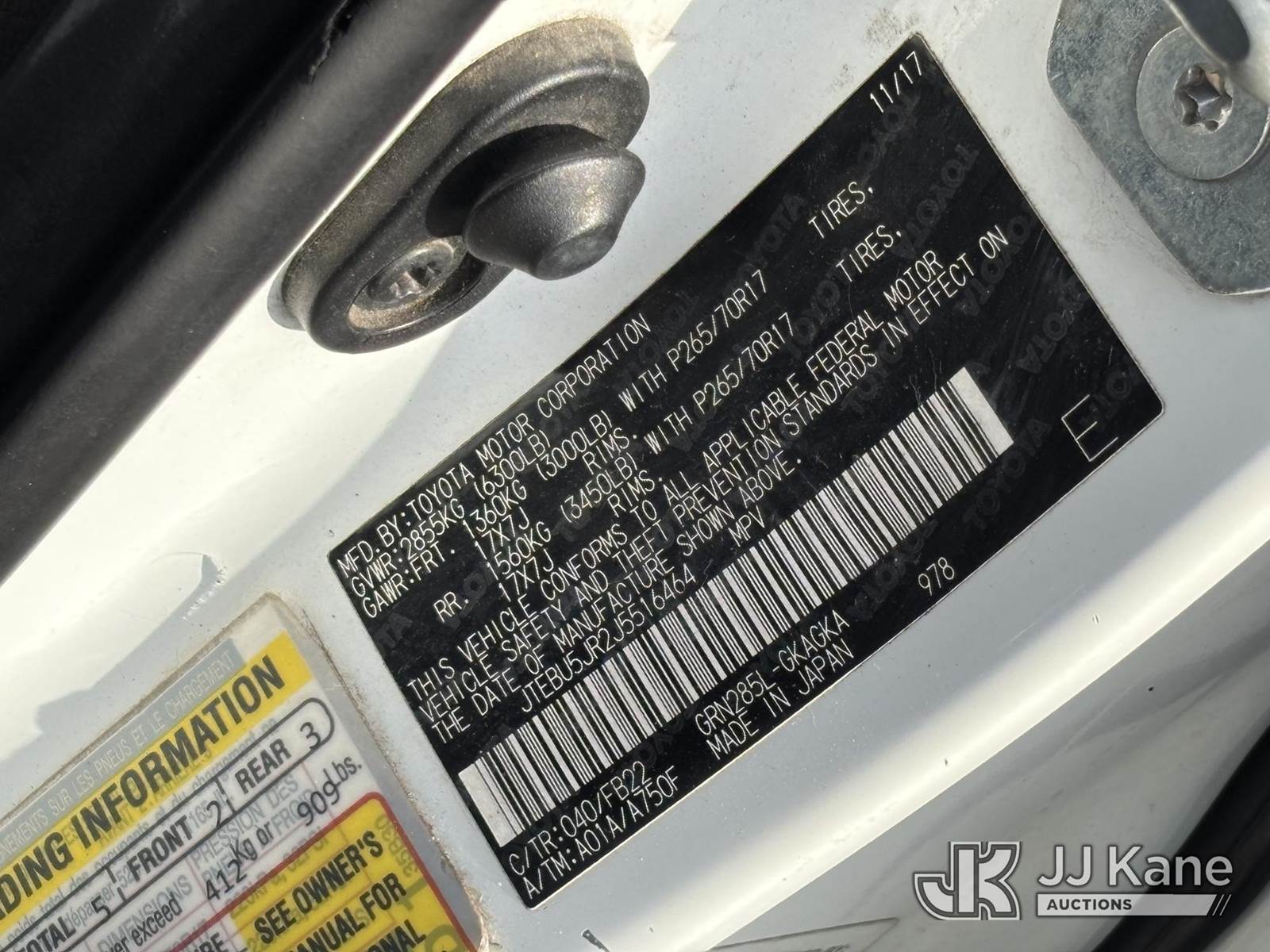 2018 Toyota 4-Runner 4x4 4-Door Sport Utility Vehicle, 6-cyl gas, Auto, A/C, (148,594 miles) (Danella Unit) (Runs & Moves, Front & Rear Bumper Damage) This is a Titled Item NOTE: This unit is being sold AS IS/WHERE IS via Timed Auction and is located in Plymouth Meeting, PA. Inspection & preview days for this unit are the 2 business days prior to the first day of items closing for this auction, item is located at 1402 Conshohocken Rd Plymouth Meeting, PA 19462 and hours of operations are 8a-4p. For pre-sale questions, please contact Bruce Thomas @ (267) 887-0392 or bruce.thomas.jr@jjkane.com. (Buyer is responsible for removal. Assistance by consignor or JJ Kane Auctions is not assured.)