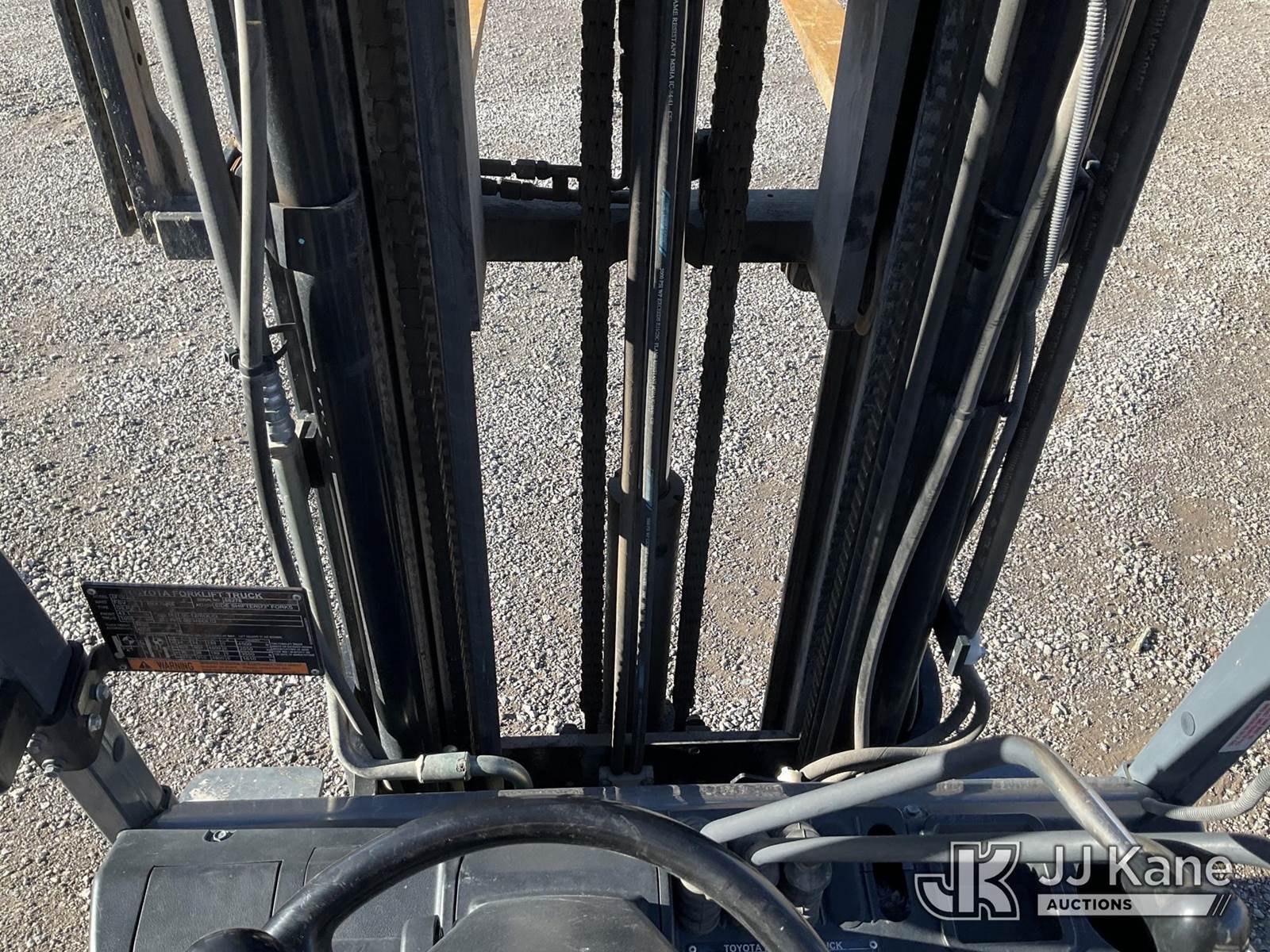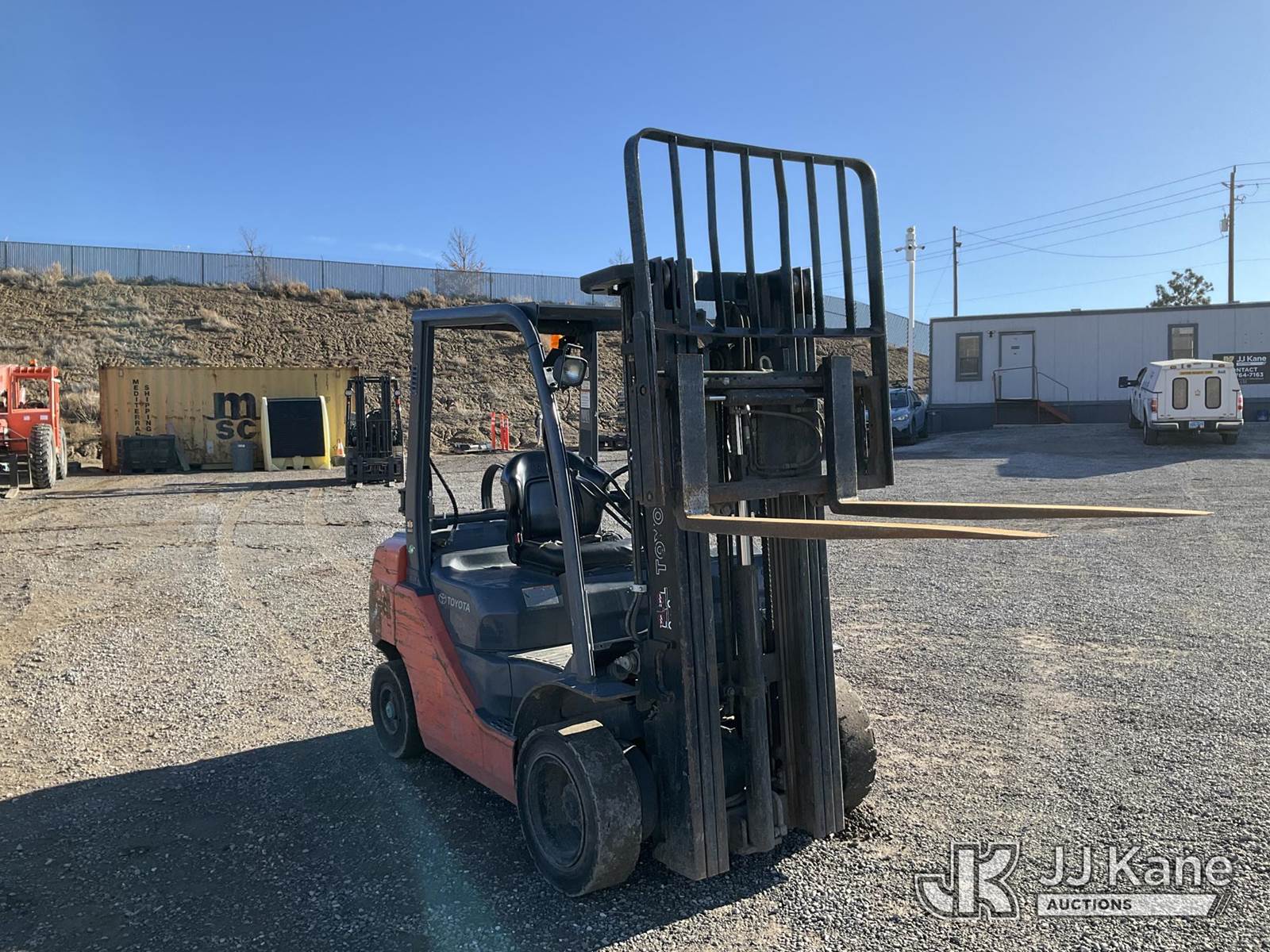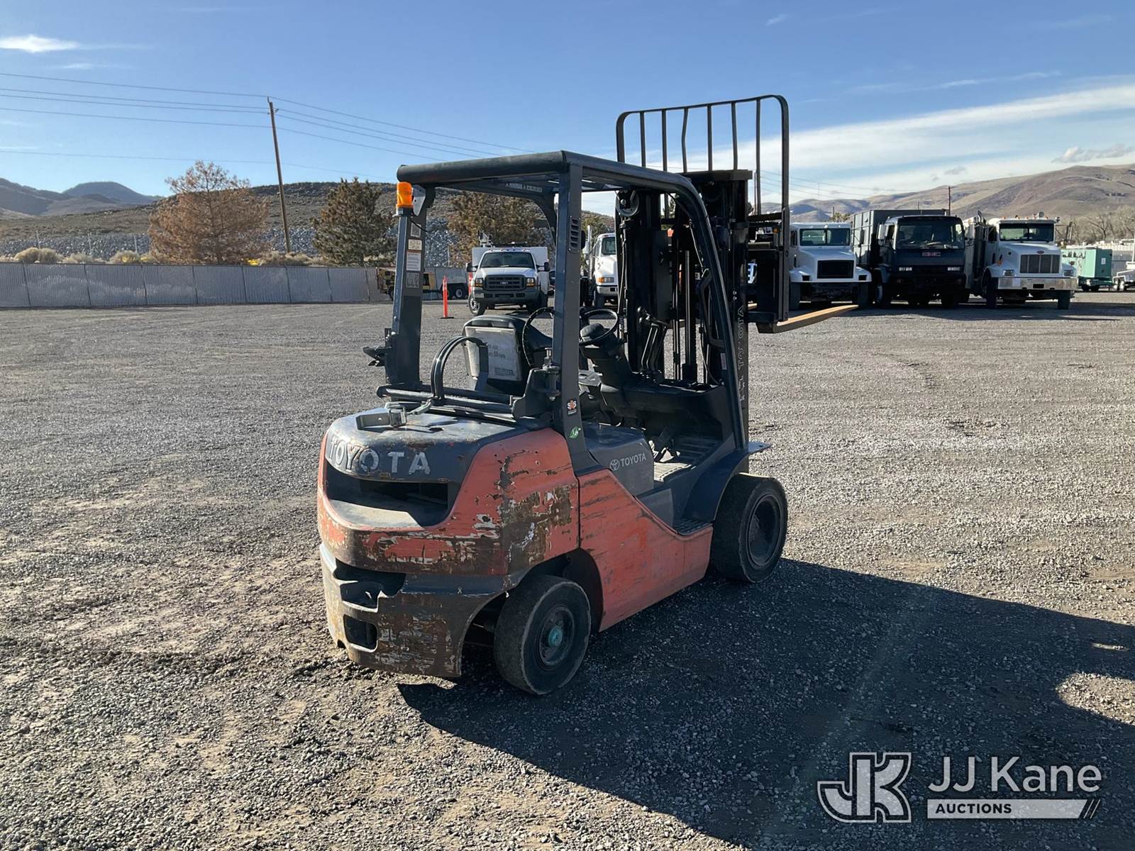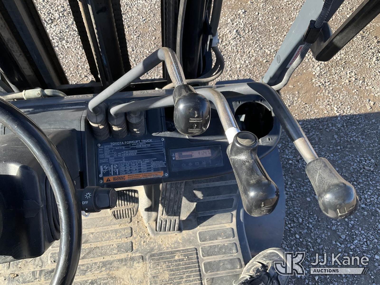 2018 Toyota 8FGCU25 Pneumatic Tired Forklift, s/n 8FGU25-88278, Toyota 4Y-ECS 4-cylinder Shuttle, Dual Fuel (LPG & Gas), with 4,500lbs capacity, 189in fork height, (Runs, Moves & Operates) (Reads 9,124 hours) NOTE: This unit is being sold AS IS/WHERE IS via Timed Auction and is located in Sparks, NV. Inspection & preview days for this unit are the 2 business days prior to the first day of items closing for this auction, item is located at 601 Britain Dr Sparks, NV 89437 and hours of operations are 8a-4p. Titles executed exactly as bidder registered. Ensure your name and/or business name and address in JJ Kane and/or ProxiBid is correct before bidding. For pre-sale questions, please contact Office Staff @ (801) 519-0123 and provide sale date and lot number. Sparks Dealer License Number DLR000052908 / OHV000052909. (Buyer is responsible for removal. Assistance by consignor or JJ Kane Auctions is not assured.)