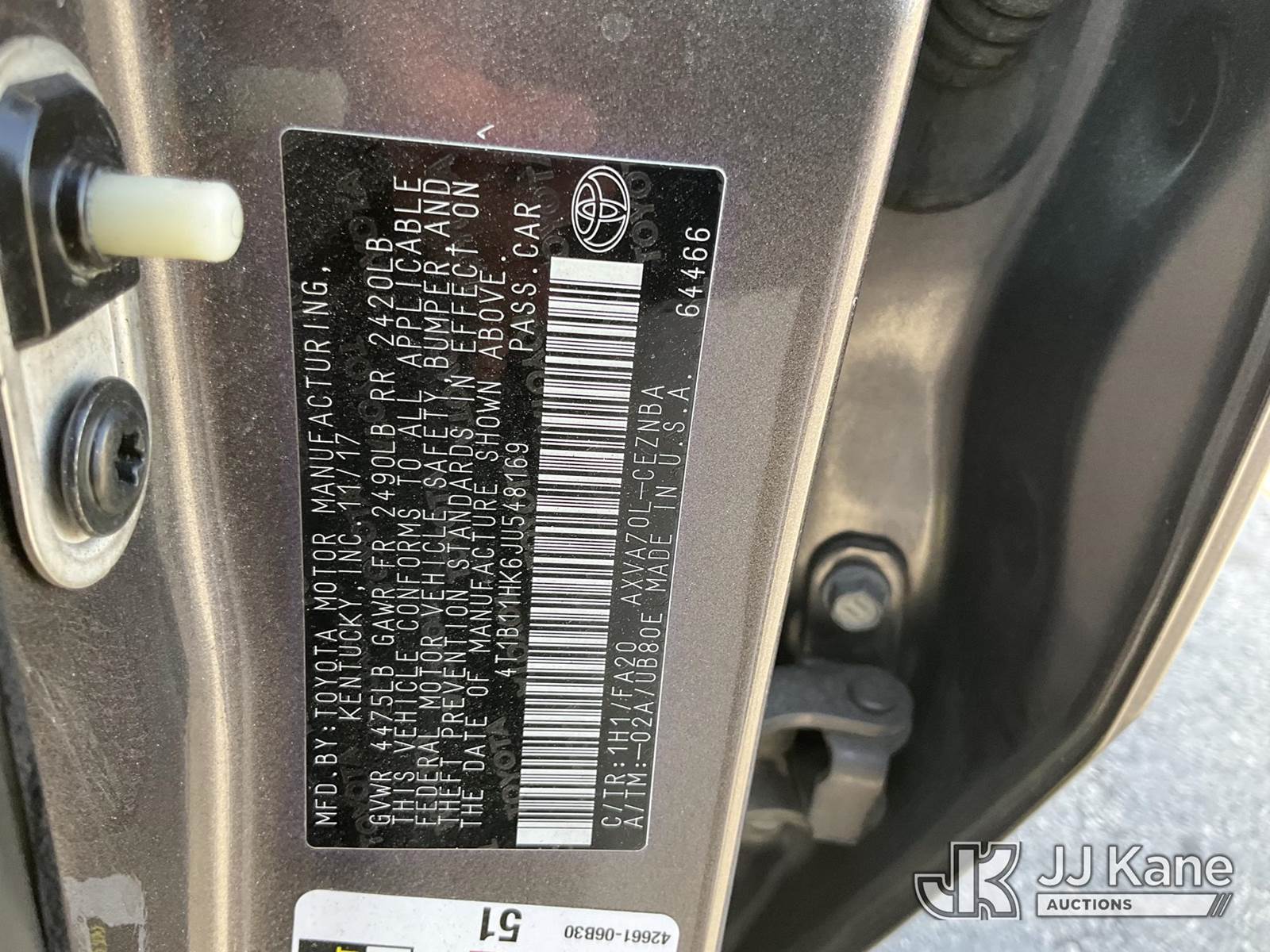 2018 Toyota Camry 4-Door Sedan, 4-cyl gas, Auto, A/C, (65,280 miles) (Runs & Moves) This is a Titled Item NOTE: This unit is being sold AS IS/WHERE IS via Timed Auction and is located in Salt Lake City, UT. Inspection & preview days for this unit are the 2 business days prior to the first day of items closing for this auction, item is located at 2353 N Redwood Rd Salt Lake City, UT 84116 and hours of operations are 8a-4p. Titles executed exactly as bidder registered. Ensure your name and/or business name and address in JJ Kane and/or ProxiBid is correct before bidding. For pre-sale questions, please contact Office Staff @ (801) 519-0123. (Buyer is responsible for removal. Assistance by consignor or JJ Kane Auctions is not assured.)