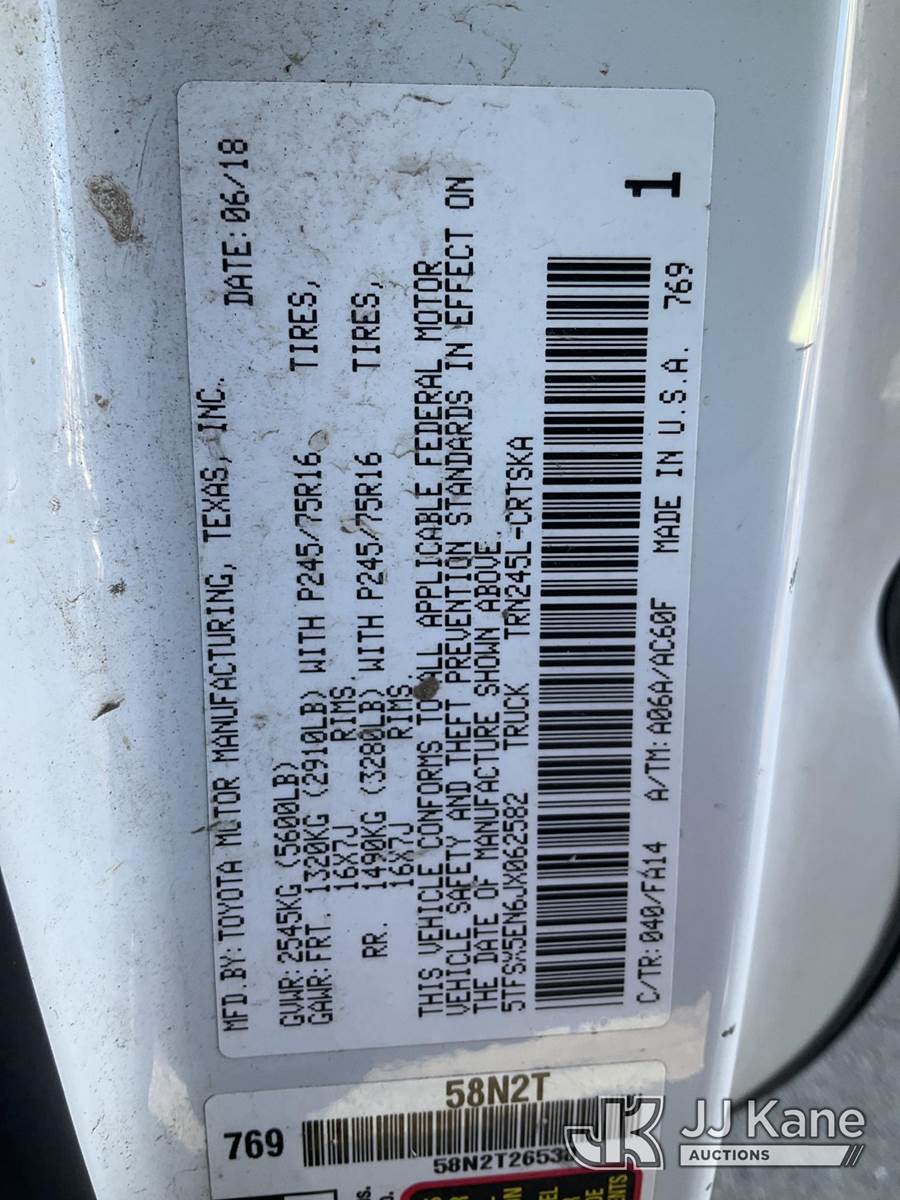 2018 Toyota Tacoma 4x4 Extended-Cab Pickup Truck, 4-cyl gas, 6-Speed Automatic, A/C, (151,068 miles) (Runs & Moves) This is a Titled Item NOTE: This unit is being sold AS IS/WHERE IS via Timed Auction and is located in South Beloit, IL. Inspection & preview days for this unit are the 2 business days prior to the first day of items closing for this auction, item is located at 14354 Dearborn Ave South Beloit, IL and hours of operations are 8a-4p. For pre-sale questions, please contact Derek Eklund at (608) 904-0618 or (derek.eklund@jjkane.com). (Buyer is responsible for removal. Assistance by consignor or JJ Kane Auctions is not assured.)