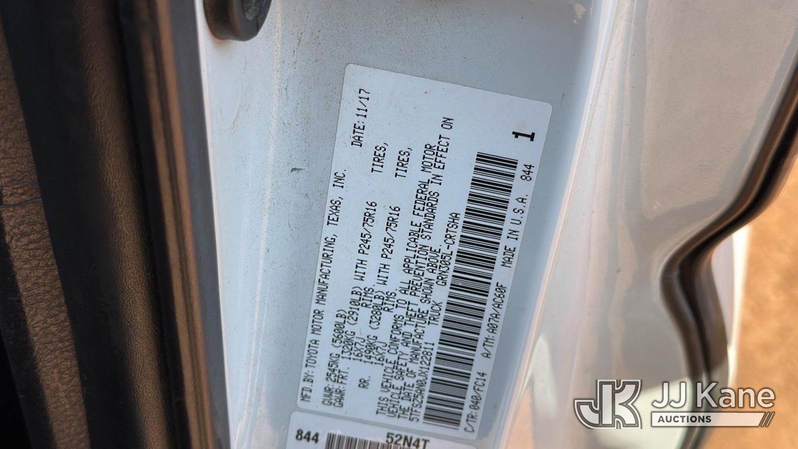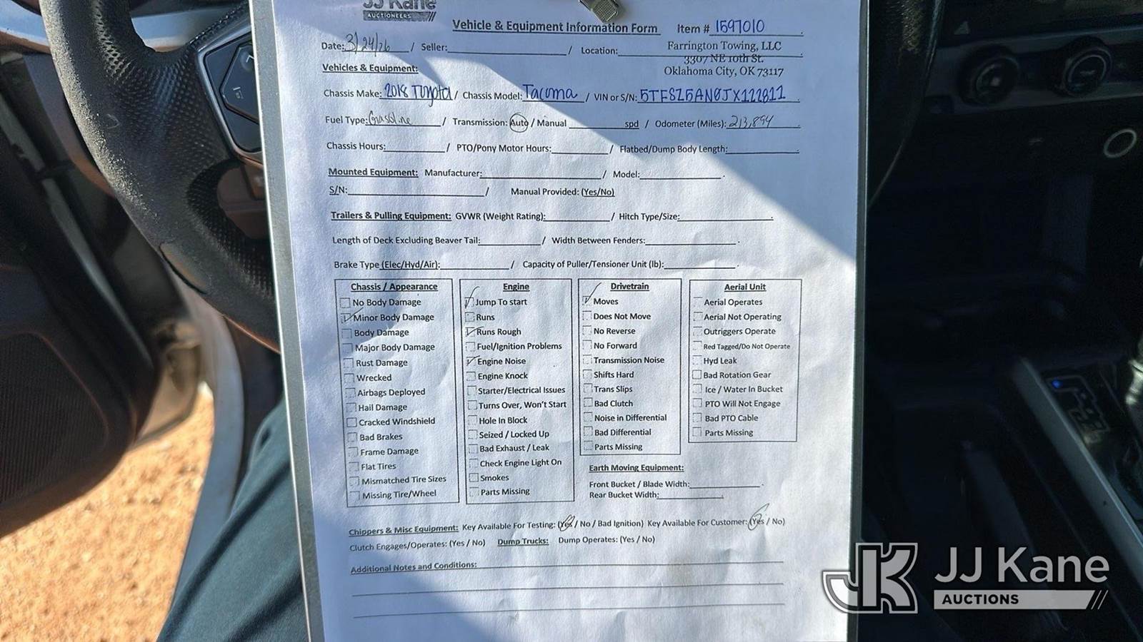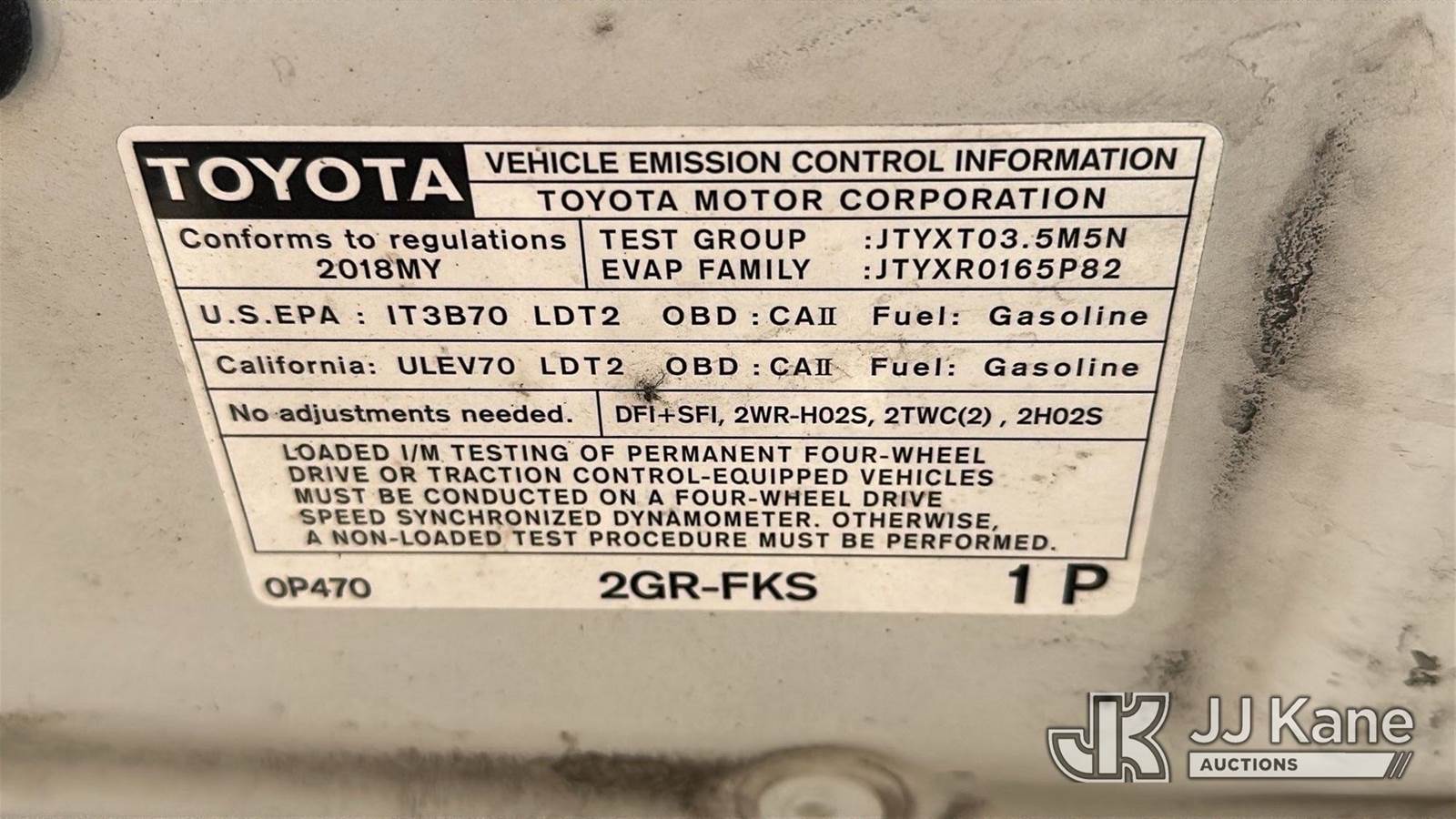2018 Toyota Tacoma 4x4 Extended-Cab Pickup Truck, 3.5L V6 DOHC 24V gas, 6-Speed Automatic, A/C, (213,893 miles) (Runs & Moves) (Jump To Start, Runs Rough, Engine Noise, Body Damage) This is a Titled Item NOTE: This unit is being sold AS IS/WHERE IS via Timed Auction and is located in Oklahoma City, OK. Inspection & preview days for this unit are by appointment only; please contact us at contact@jjkane.com or 84-Go-JJKane for more details. (Buyer is responsible for removal. Assistance by consignor or JJ Kane Auctions is not assured.)