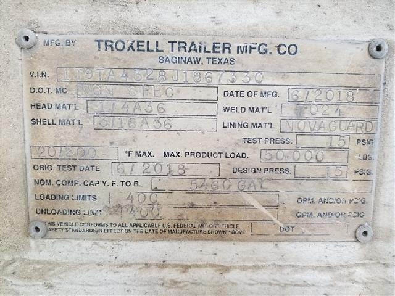 2018 Troxell Vac 130 BBL Vacuum Tank Trailer
