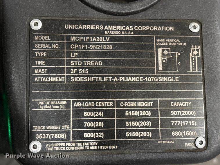 2018 UniCarriers CFS40 forklift