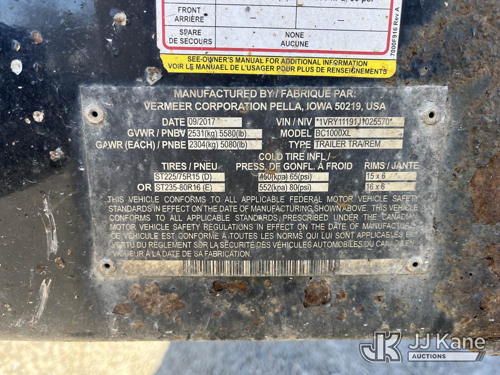 2018 Vermeer BC1000XL Portable Chipper (12in Drum), Deutz diesel, trailer mtd. (Runs, Operational Condition Unknown, Hour Meter Inop, High RPM) This is a Titled Item NOTE: This unit is being sold AS IS/WHERE IS via Timed Auction and is located in Smock, PA. Inspection & preview days for this unit are the 2 business days prior to the first day of items closing for this auction, item is located at 1000 Franklin Dr Smock, PA 15480 and hours of operations are 7:00 am to 3:30 pm. For pre-sale questions, please contact Alaina White @ (724) 562-2575 or Alaina.White@JJKane.com. (Buyer is responsible for removal. Assistance by consignor or JJ Kane Auctions is not assured.)
