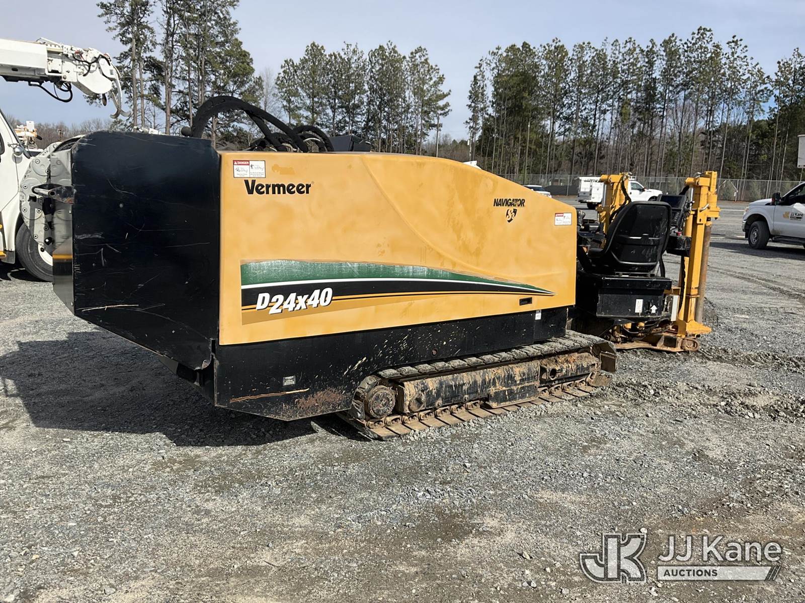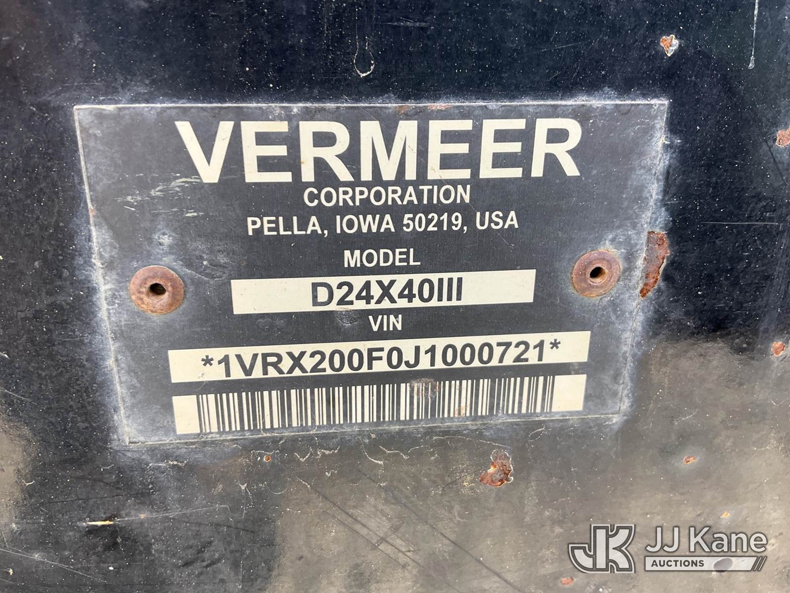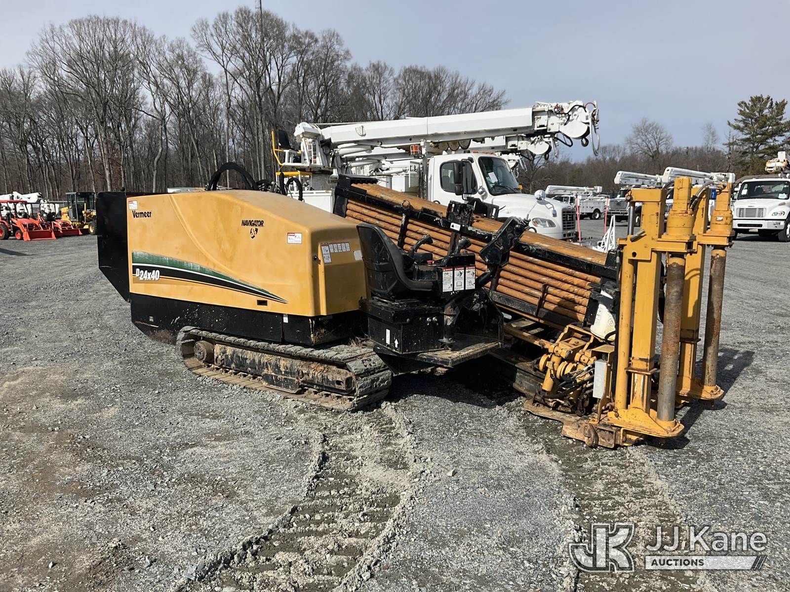 2018 Vermeer Corporation D24X40 Directional Boring Machine, s/n 1VRX200F0J1000721, Deutz diesel, Hydrostatic, with ~ 510 ft drill stem, reamer, hys staking,rubber tracks & riding console, Key Charge (Runs, Moves & Operates) (Cuts Off After Running 2 Min, Hood Latch Broken Cant Lift Hood) (Reads 4,417 hours) NOTE: This unit is being sold AS IS/WHERE IS via Timed Auction and is located in China Grove, NC. Inspection & preview days for this unit are the 2 business days prior to the first day of items closing for this auction, item is located at 820 E NC Hwy 152 China Grove, NC 28023 and hours of operations are 8a-4p. For pre-sale questions, please contact Office Staff @ (704) 674-1113. (Buyer is responsible for removal. Assistance by consignor or JJ Kane Auctions is not assured.)