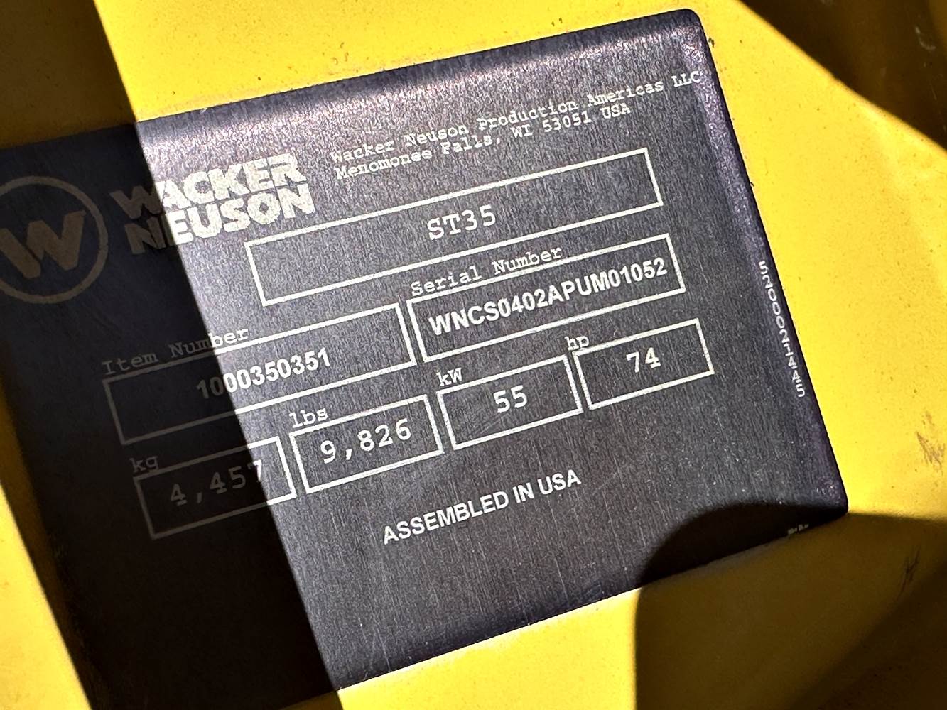 This is a Large Full Size Machine. It Weighs 9,826 pounds and has an operating capacity of 6,159 pounds.