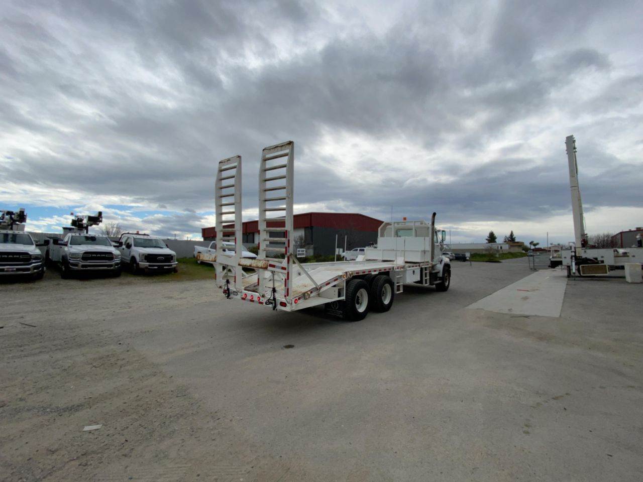 2018 Western Star 4700SB 6x4 Equipment Hauler, 144,212 Miles, 20,000 Lbs. FAWR, 46,000 Lbs. RAWR, 66,000 Lbs. GVWR, Detroit DD13 Engine, 450 Horsepower, Fuller RTO-16908LL Transmission, 70 Inch Headache Rack, 20 Ft. Bed Length, 8 Ft. Bed Width, 6 Ft. Dove Tail, Dual Sided Steps, Hydraulic Drop Down Ramps