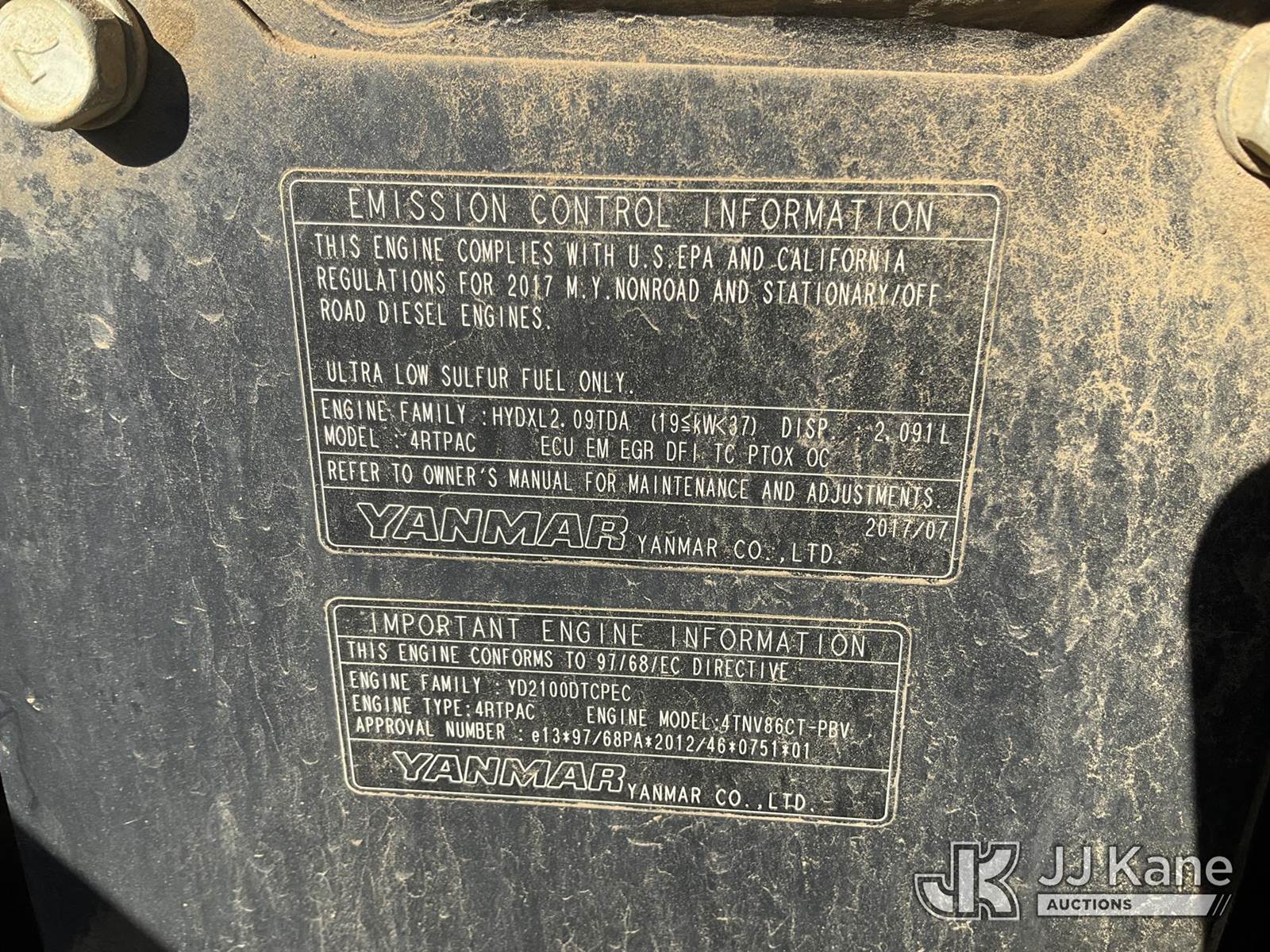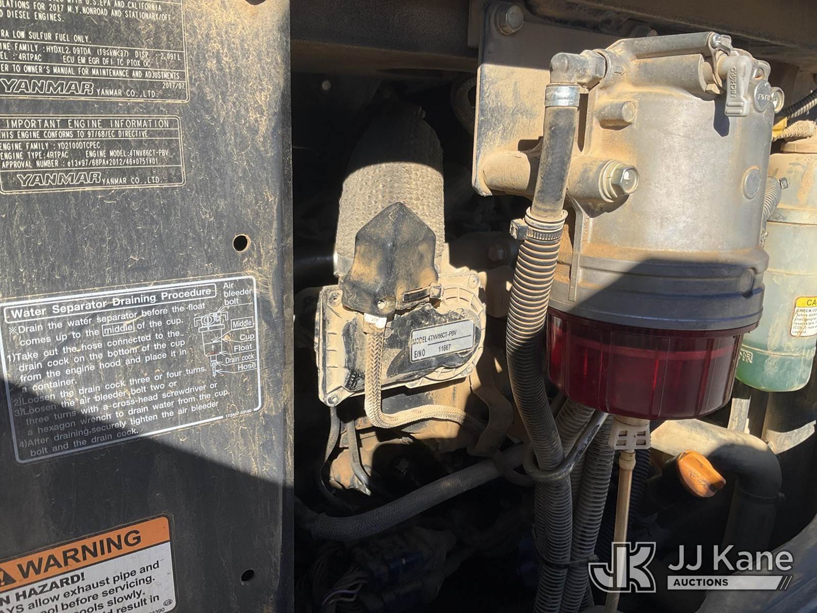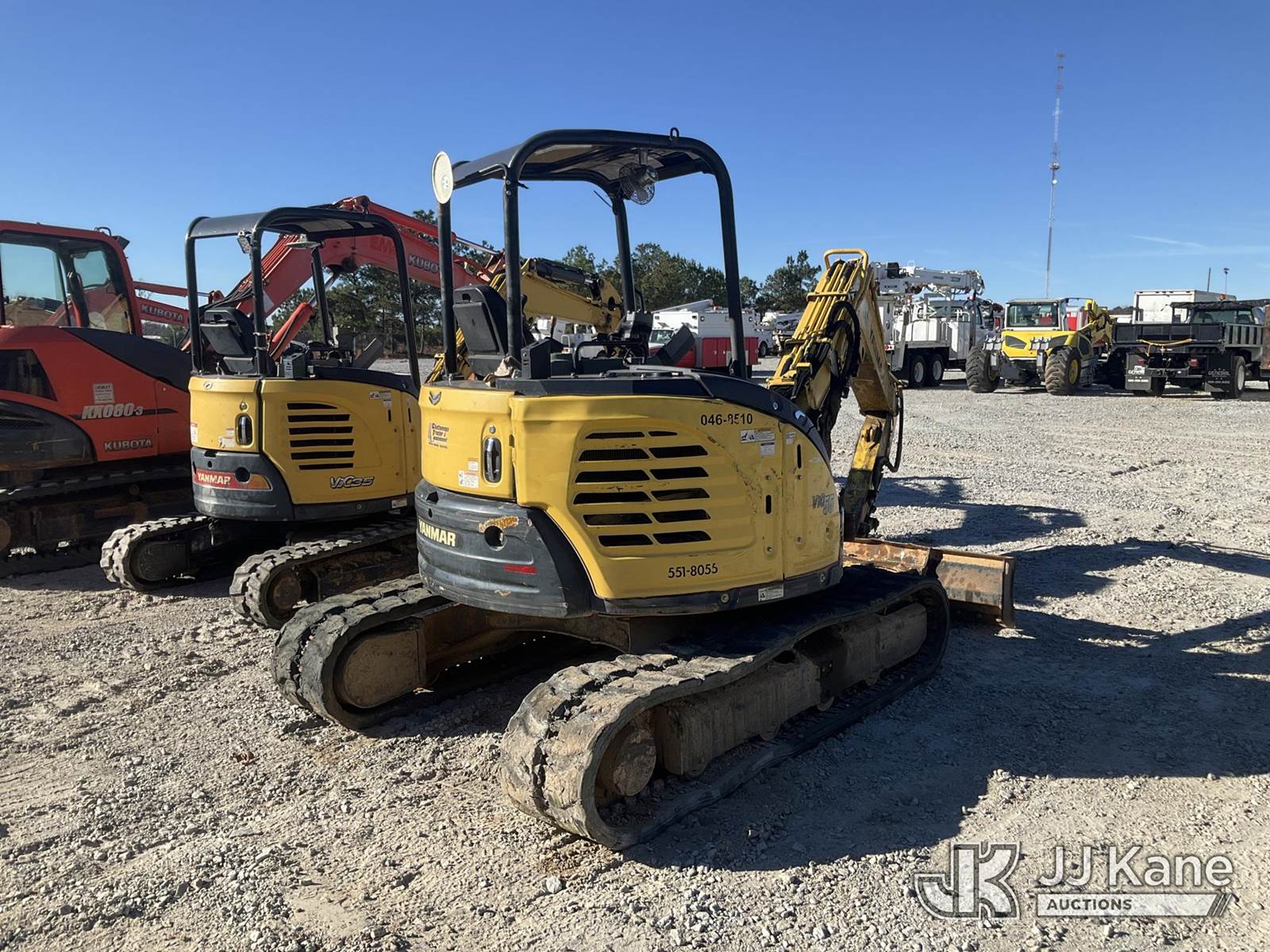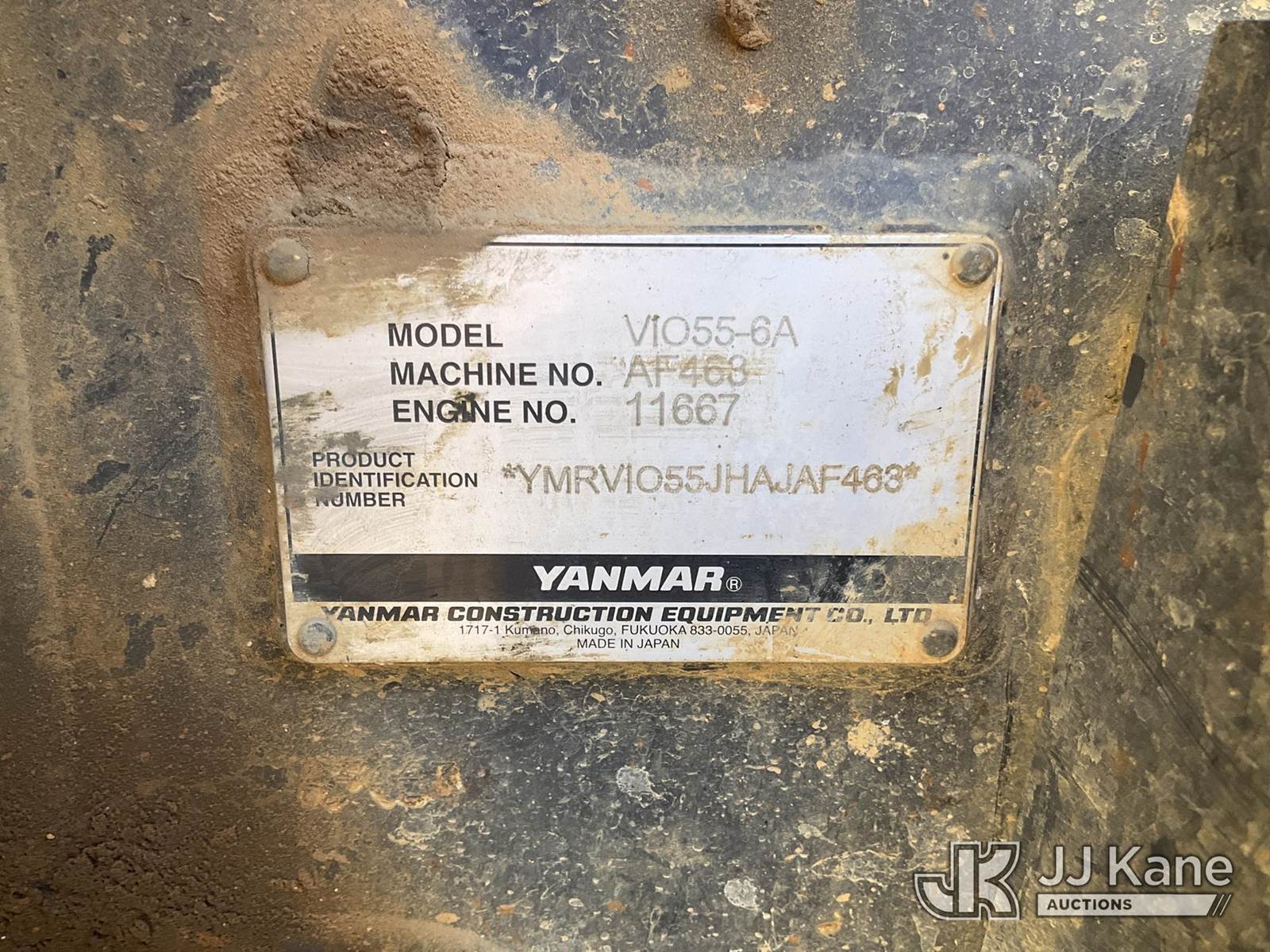 2018 Yanmar VIO55-6A Mini Hydraulic Excavator, s/n AF463, Yanmar Hydraulic Drive, diesel, with ROPS, backfill blade, 65 in boom, . (Not Running, Condition Unknown, Missing Bucket, Damaged Tracks, Body/ Paint Damage) (Seller States: Whole fuel needs to be replaced, Bucket is missing, High pressure pump is down) (Reads 4,346 hours) NOTE: This unit is being sold AS IS/WHERE IS via Timed Auction and is located in Villa Rica, GA. Inspection & preview days for this unit are the 2 business days prior to the first day of items closing for this auction, item is located at 100 Liberty Rd Villa Rica, GA 30180 and hours of operations are 8a-4p. For pre-sale questions, please contact Office Staff @ (470) 590-8453. (Buyer is responsible for removal. Assistance by consignor or JJ Kane Auctioneers is not assured.)