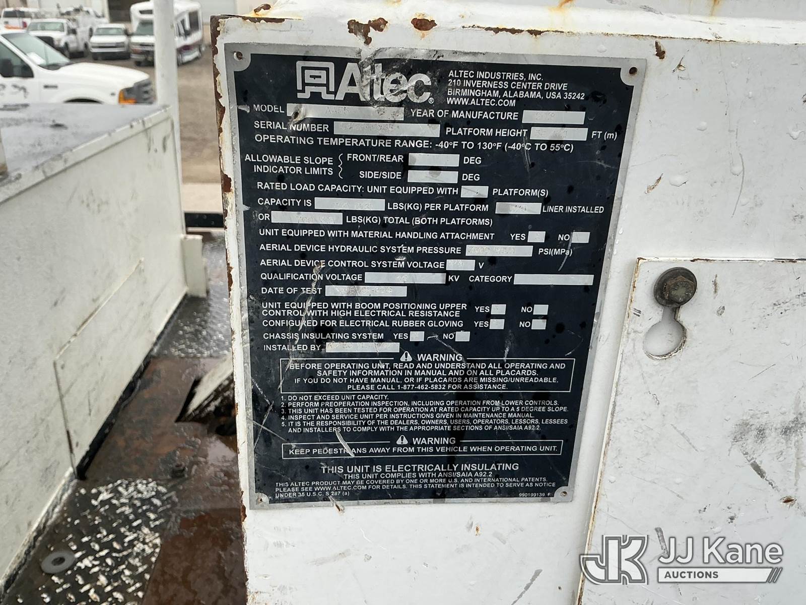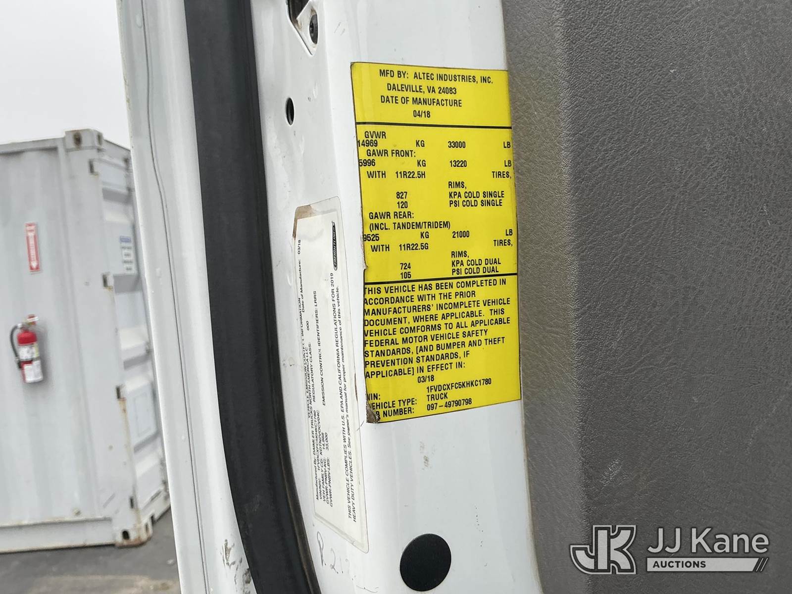 Altec AA55, 60 ft, Articulating Non-Over Center Bucket Truck s/n 0418FH5938, with dual man bucket, material handler, 4 hyd outriggers, rear mounted on 2019 Freightliner M2 Utility Truck, 6.7L Diesel Auto, A/C, with tow package, (65,518 miles) (Runs, Moves & Upper Operates) (Check Engine Light On, Low On Diesel, No Winch, Jump To Start) (Bidding Restricted to Licensed Vehicle Dealers Only), May be subject to ARB Regulations This is a Titled Item NOTE: This unit is being sold AS IS/WHERE IS via Timed Auction and is located in Dixon, CA. Inspection & preview days for this unit are the 2 business days prior to the first day of items closing for this auction, item is located at 8668 Sparling Ln Dixon, CA 95620 and hours of operations are 8a-4p. For pre-sale questions, please contact JJ Kane Staff at (707) 678-8060 (dixon@jjkane.com). Dealer License Number 45696. (Manuals provided in cab) (Buyer is responsible for removal. Assistance by consignor or JJ Kane Auctions is not assured.)