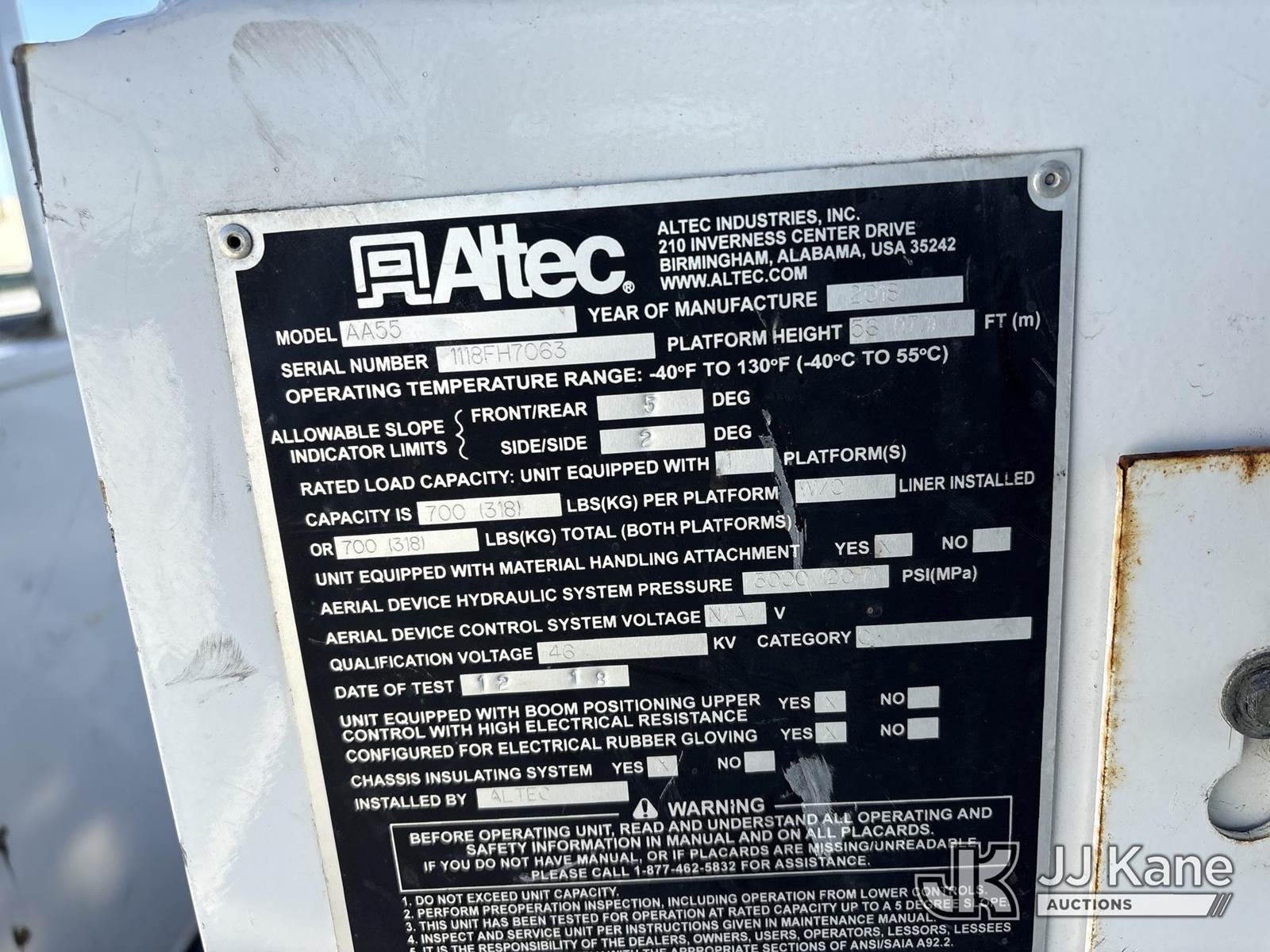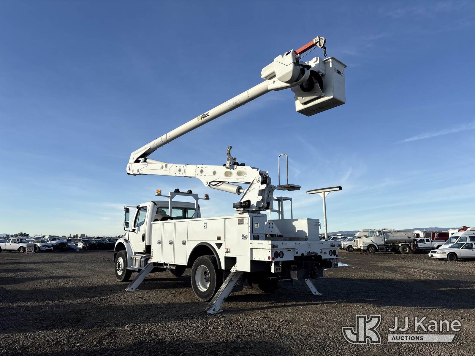 Altec AA55, 61 ft, Articulating Non-Over Center Bucket Truck s/n 1118FH7063, with 4 hyd outriggers, two man bucket, material handler, rear mounted on 2019 Freightliner M2 Utility Truck, Cummins 6.7L Diesel Auto, A/C, (34,071 miles) (Runs, Moves & Upper Operates) (Reads 2,563 hours) May be subject to ARB Regulations This is a Titled Item NOTE: This unit is being sold AS IS/WHERE IS via Timed Auction and is located in Dixon, CA. Inspection & preview days for this unit are the 2 business days prior to the first day of items closing for this auction, item is located at 8668 Sparling Ln Dixon, CA 95620 and hours of operations are 8a-4p. For pre-sale questions, please contact JJ Kane Staff at (707) 678-8060 (dixon@jjkane.com). Dealer License Number 45696. (Manuals provided in cab) (Buyer is responsible for removal. Assistance by consignor or JJ Kane Auctions is not assured.)