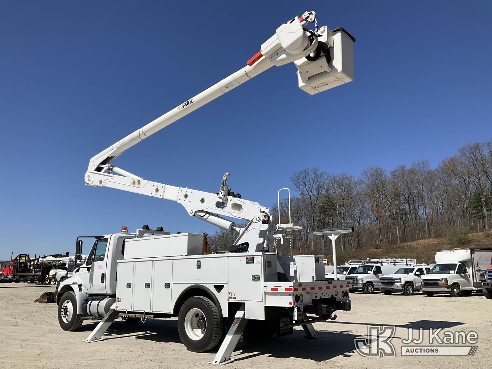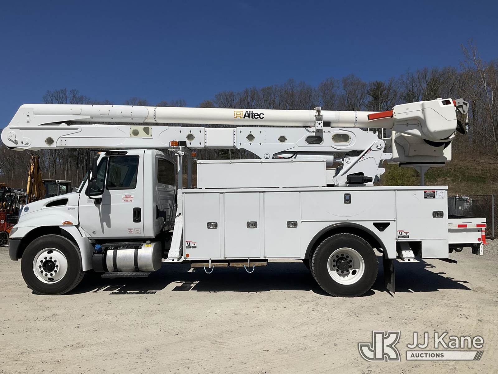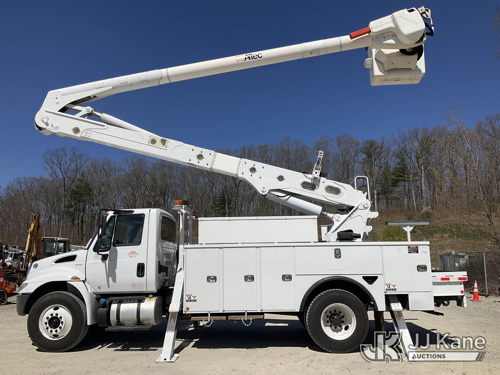 Altec AA55, 61 ft, Material Handling Bucket Truck s/n 1217FH5333, with two-man bucket & 4 hyd outriggers, rear mounted on 2019 International 4300 Utility Truck, Cummins 6.7L, diesel 4X2, Auto, A/C, (88,198 miles) (Runs, Moves & Upper Operates) (Reads 8,221 hours) This is a Titled Item NOTE: This unit is being sold AS IS/WHERE IS via Timed Auction and is located in Shrewsbury, MA. Inspection & preview days for this unit are the 2 business days prior to the first day of items closing for this auction, item is located at 11 Fortune Blvd Shrewsbury, MA 01545 and hours of operations are 8a-4p. For pre-sale questions, please contact Rob Gifford @ (508) 864-4126. (Manuals provided in cab) (Buyer is responsible for removal. Assistance by consignor or JJ Kane Auctions is not assured.)
