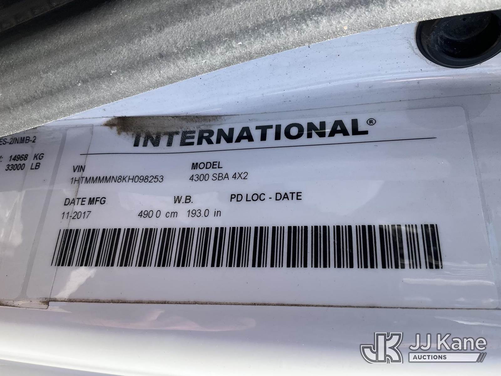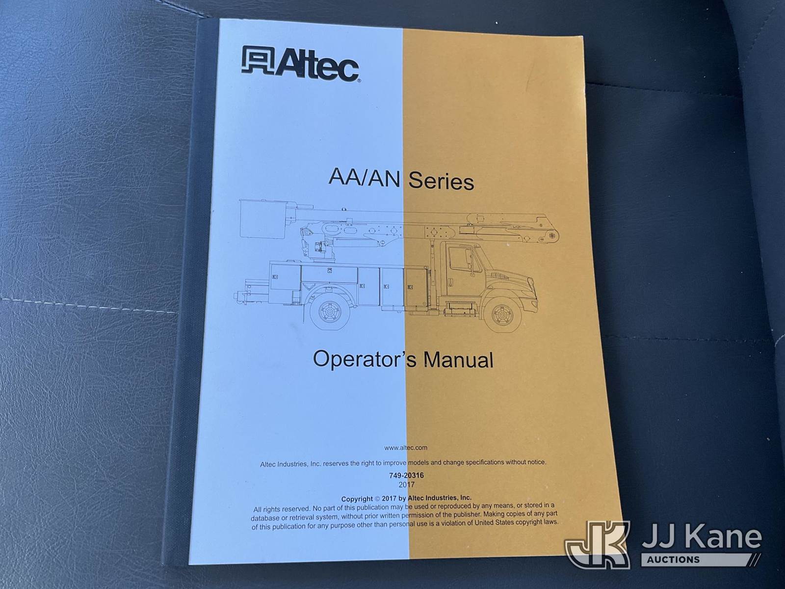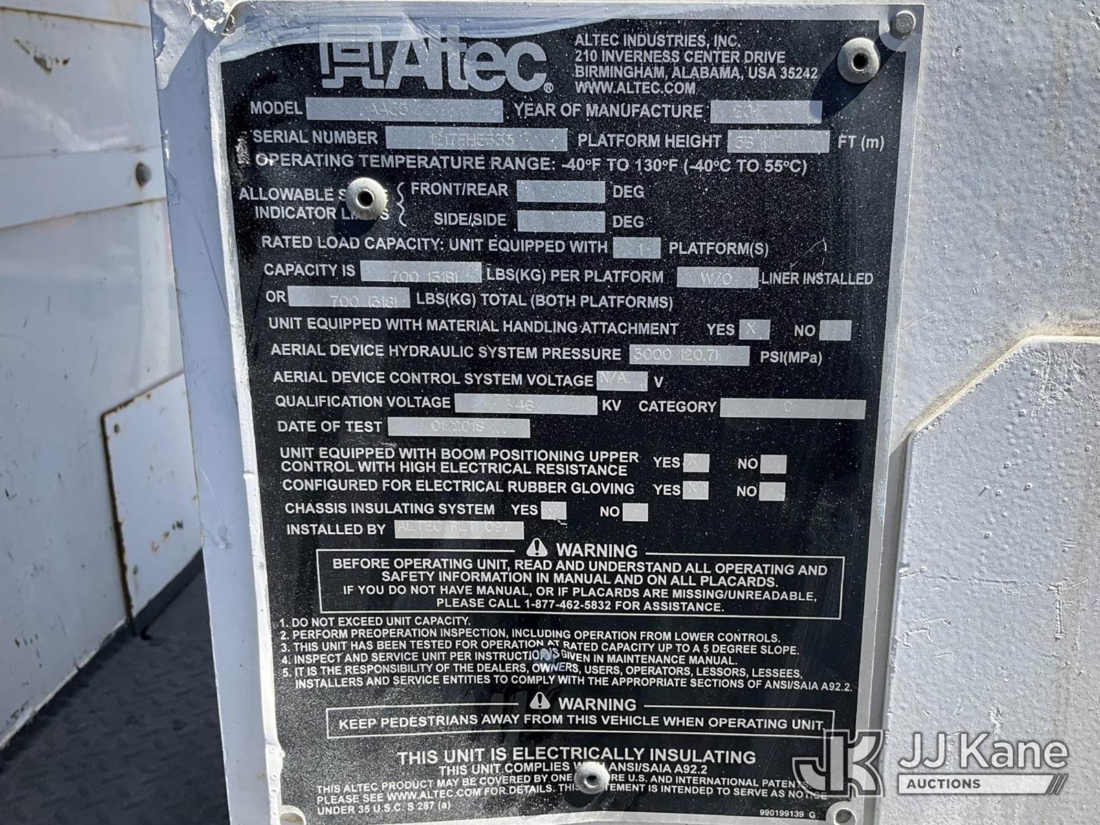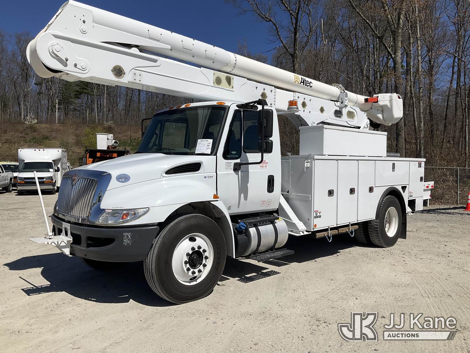 Altec AA55, 61 ft, Material Handling Bucket Truck s/n 1217FH5333, with two-man bucket & 4 hyd outriggers, rear mounted on 2019 International 4300 Utility Truck, Cummins 6.7L, diesel 4X2, Auto, A/C, (88,198 miles) (Runs, Moves & Upper Operates) (Reads 8,221 hours) This is a Titled Item NOTE: This unit is being sold AS IS/WHERE IS via Timed Auction and is located in Shrewsbury, MA. Inspection & preview days for this unit are the 2 business days prior to the first day of items closing for this auction, item is located at 11 Fortune Blvd Shrewsbury, MA 01545 and hours of operations are 8a-4p. For pre-sale questions, please contact Rob Gifford @ (508) 864-4126. (Manuals provided in cab) (Buyer is responsible for removal. Assistance by consignor or JJ Kane Auctions is not assured.)