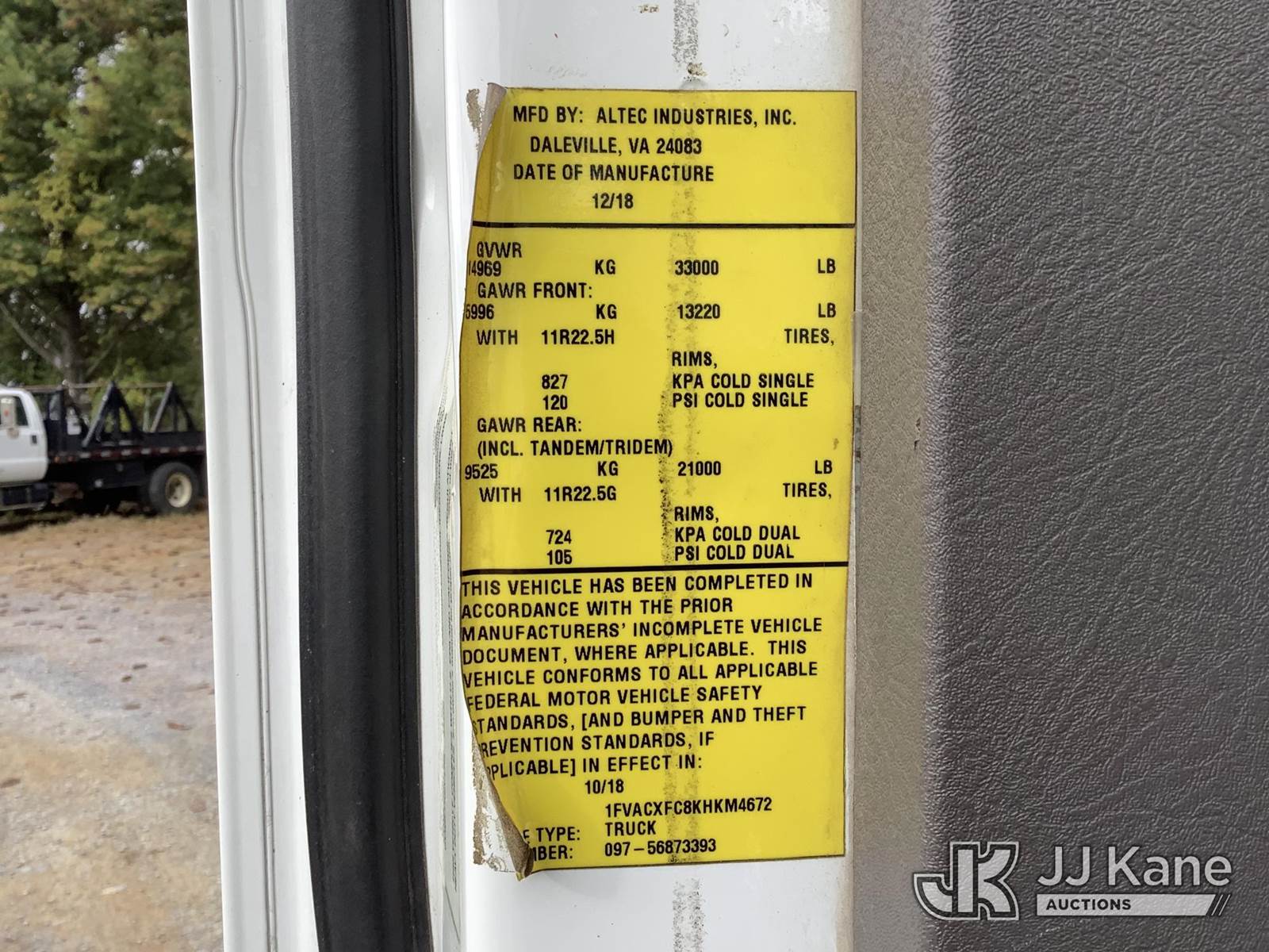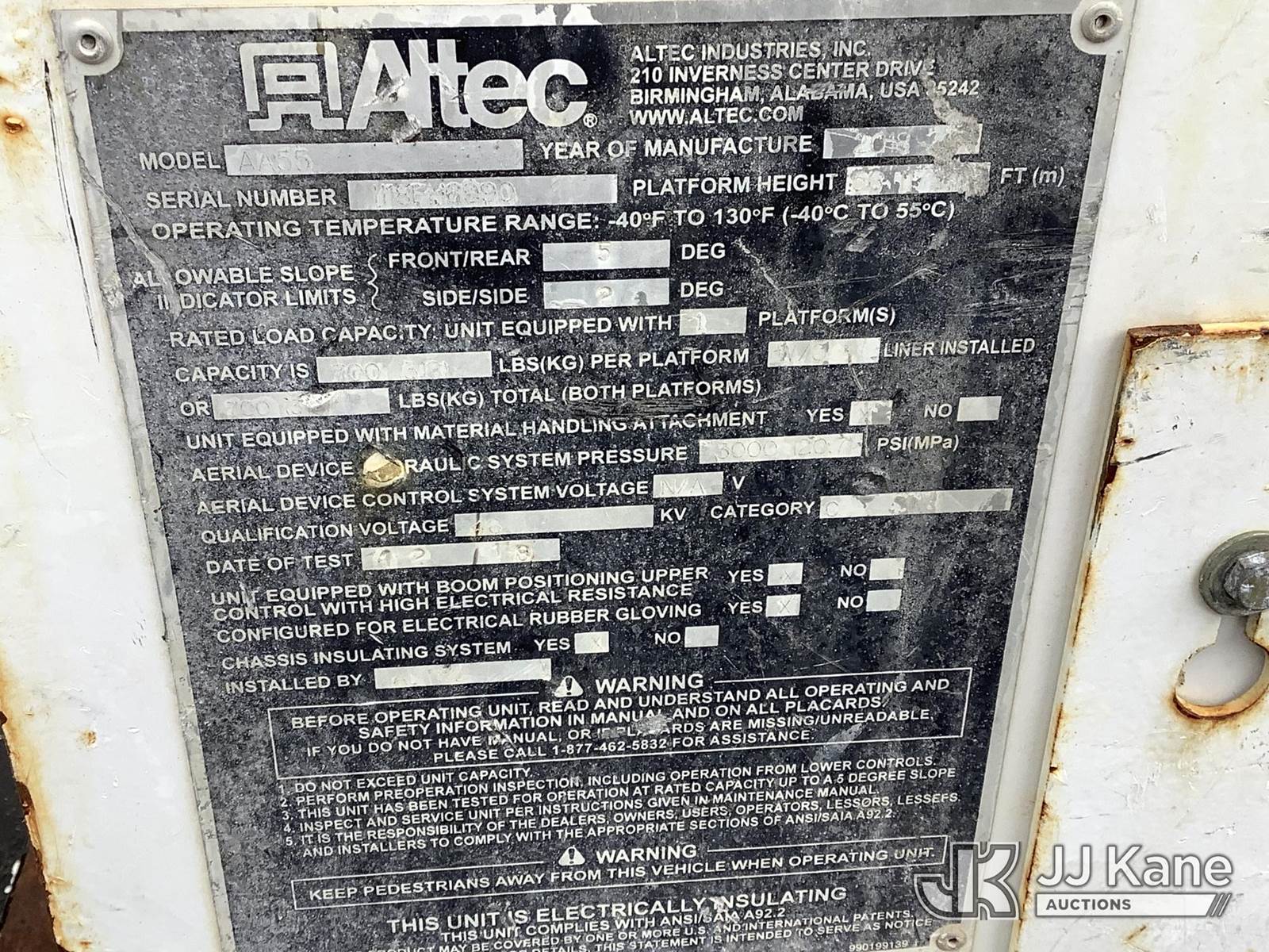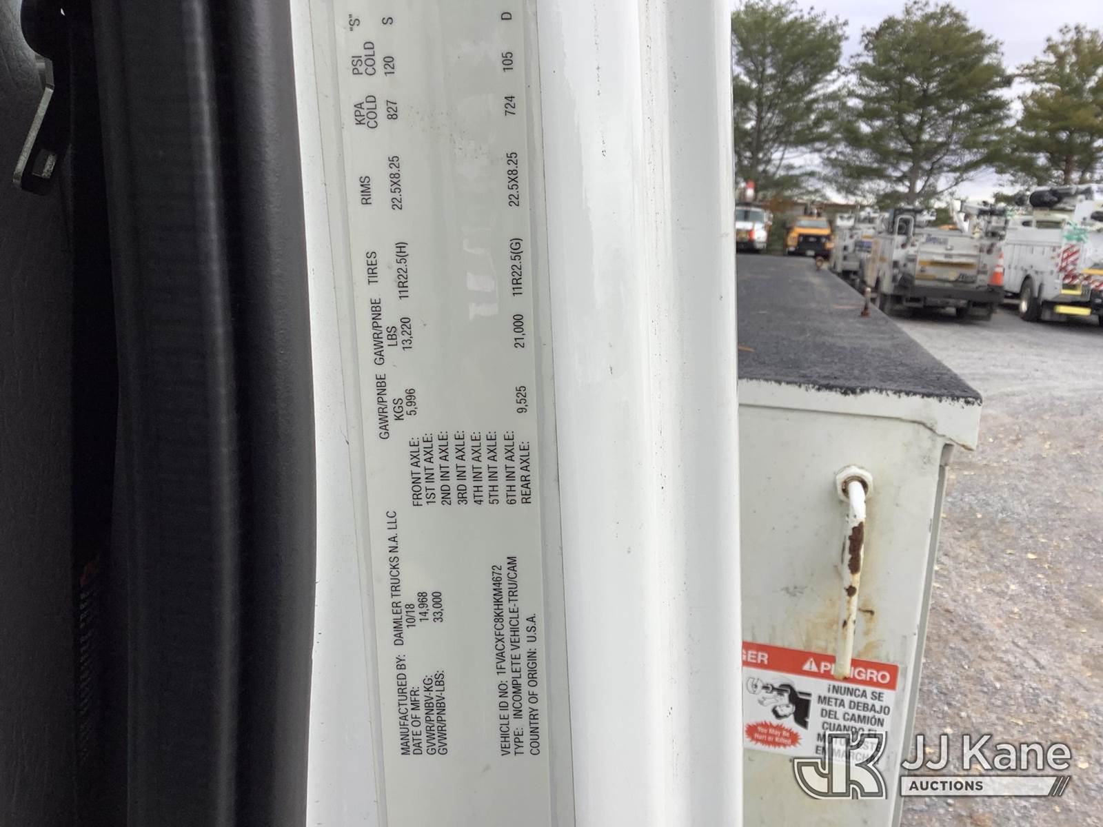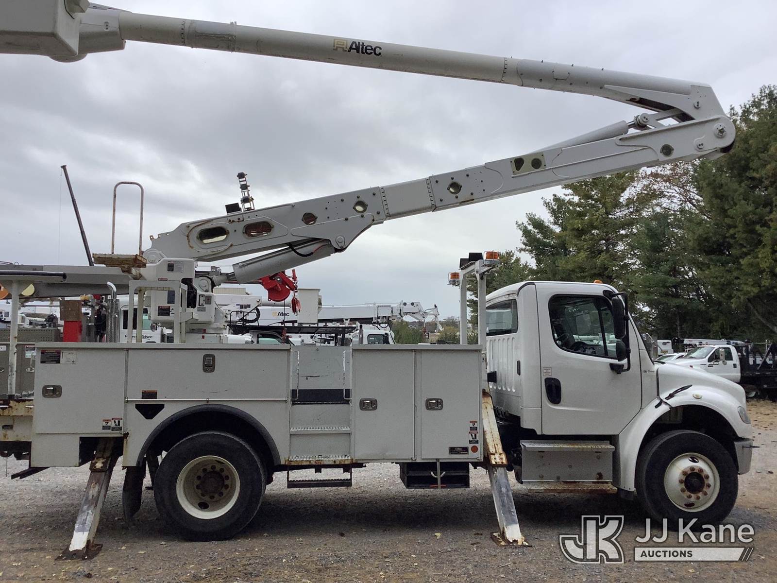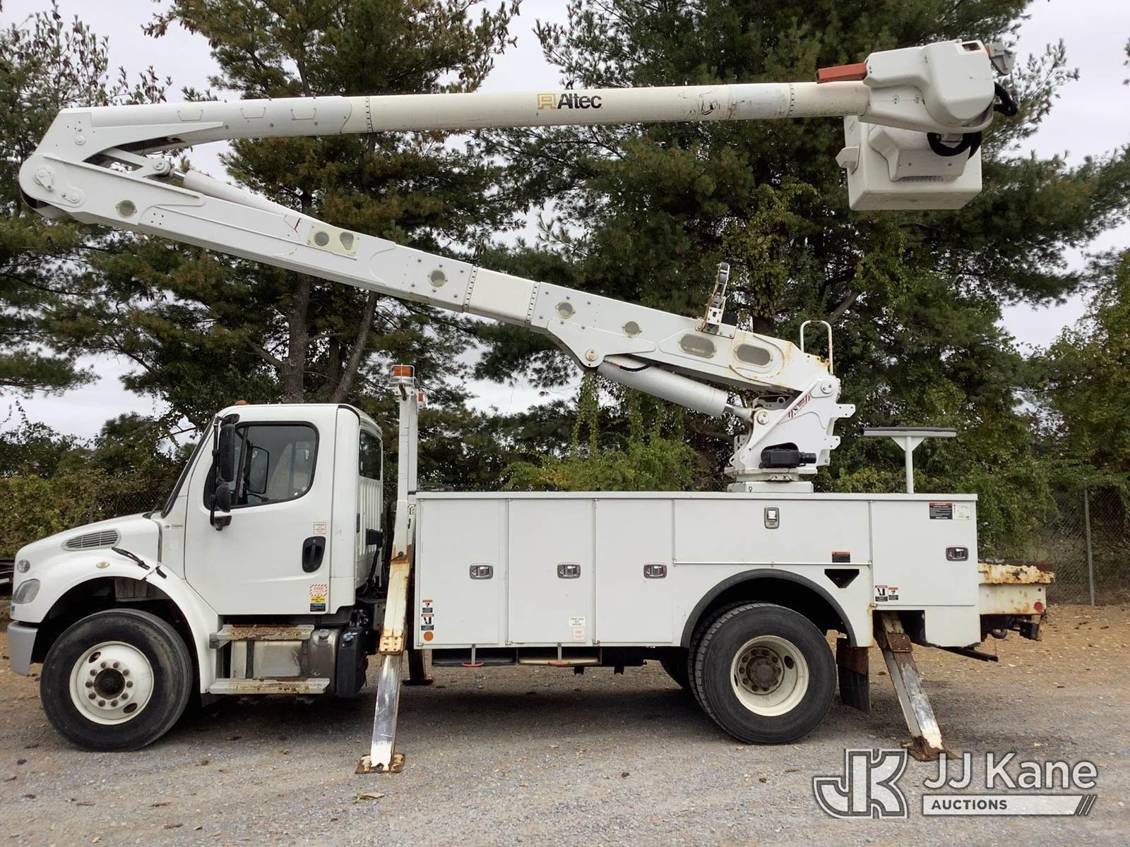 Altec AA55-MH, 60 ft, Material Handling Bucket Truck s/n 1118FH6990, with Two-Man Bucket & 4 Outriggers, rear mounted on 2019 Freightliner M2 106 Utility Truck, 6.7L I6 Diesel, Auto, (66,378 miles) (Runs, Moves & Operates) This is a Titled Item NOTE: This unit is being sold AS IS/WHERE IS via Timed Auction and is located in Frederick, MD. For pre-sale questions, please contact Kevin Waggoner at 707-210-4879 or Kevin.Waggoner@JJKane.com. JJ Kane Frederick, MD yard is available for inspections by appointment only. REMOVAL: All items must be removed by 10 calendar days after the sale, Monday - Friday (Excluding Holidays). (Manuals provided in cab) (Buyer is responsible for removal. Assistance by consignor or JJ Kane Auctioneers is not assured.)