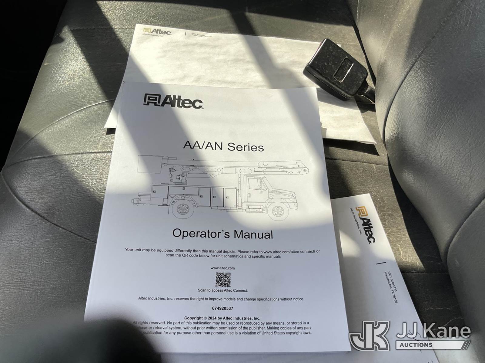 Altec AA55-MH, 60 ft, Material Handling Bucket Truck s/n 1117FH5314(YEAR 2017), with two-man bucket, rear mounted on 2019 International 4300 Utility Truck, Cummins ISB 6.7L diesel, Auto, A/C, (105,628 miles) (Runs, Moves & Upper Operates) (Remounted Upper Unit Year 2017, Check Engine Light On) This is a Titled Item NOTE: This unit is being sold AS IS/WHERE IS via Timed Auction and is located in Waxahachie, TX. Inspection & preview days for this unit are the 2 business days prior to the first day of items closing for this auction, item is located at 999 Solon Rd Waxahachie, TX 75165 and hours of operations are 8a-4p. For pre-sale questions, please contact Alex Bayless @ (469) 550-4938. (Manuals provided in cab) (Buyer is responsible for removal. Assistance by consignor or JJ Kane Auctions is not assured.)