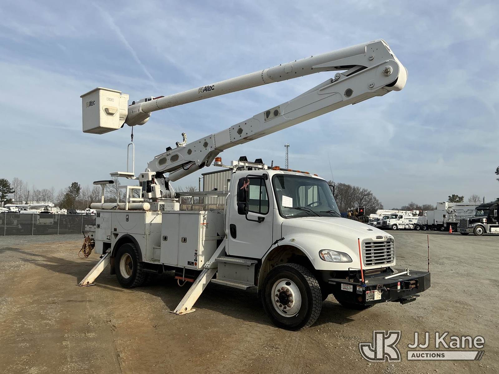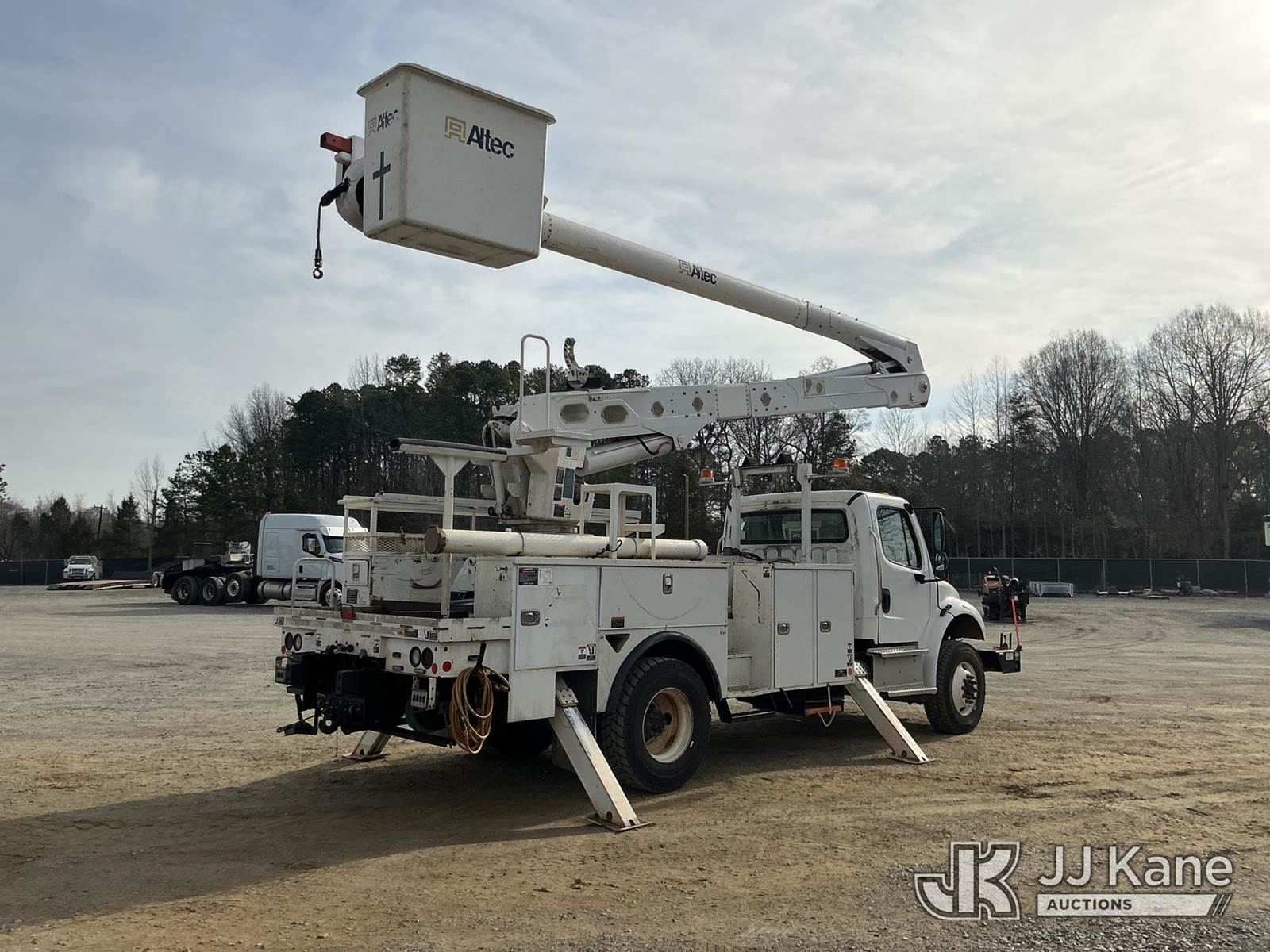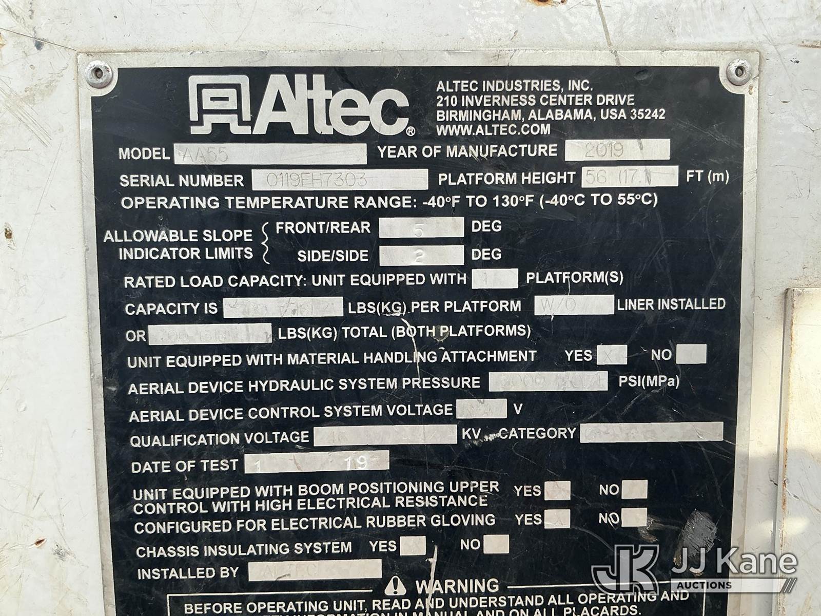 Altec AA55-MH, 60 ft, Material Handling Bucket Truck s/n 0119FH7303, with two man bucket , rear mounted on 2019 Freightliner M2 106 4x4 Utility Truck, Cummins 6.7L diesel, Auto, A/C, with front winch , (26,673 miles) (Runs, Moves & Upper Operates) ( The manufacturer has notified JJ Kane that this equipment is subject to an open recall. CSN 787 Check Valve Inspection The equipment should not be operated until this is addressed. Buyer is responsible for reviewing the recall notice and contacting the manufacturer to schedule the recommended corrective actions. Associated costs may be covered by the manufacturer in some cases.) This is a Titled Item NOTE: This unit is being sold AS IS/WHERE IS via Timed Auction and is located in China Grove, NC. Inspection & preview days for this unit are the 2 business days prior to the first day of items closing for this auction, item is located at 820 E NC Hwy 152 China Grove, NC 28023 and hours of operations are 8a-4p. For pre-sale questions, please contact Office Staff @ (704) 674-1113. (Manuals provided in cab) (Buyer is responsible for removal. Assistance by consignor or JJ Kane Auctions is not assured.)