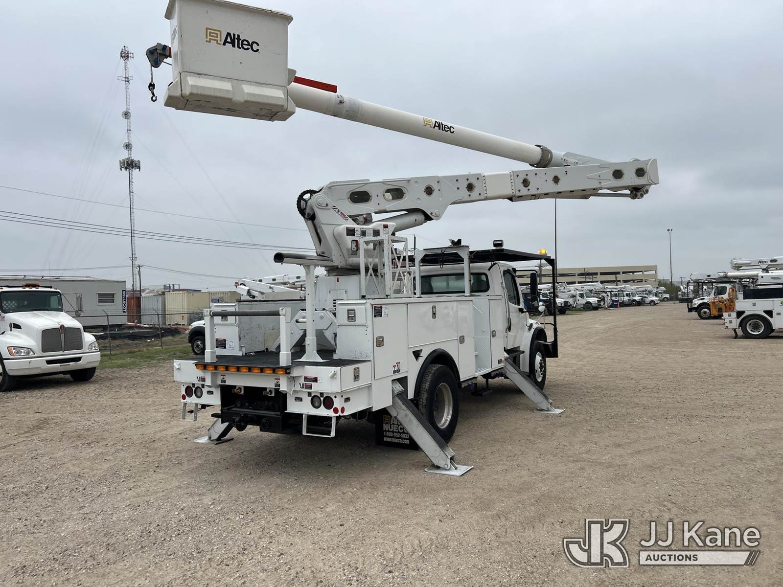 Altec AM55-MH, 60 ft, Over-Center Material Handling Bucket Truck s/n 1018DM7648, with 4 hyd outriggers, 2 man bucket, rear mounted on 2019 Freightliner M2 Utility Truck, 6.7L diesel, Auto, A/C, (49,432 miles) (Runs, Moves & Upper Operates) (Jump To Start) (Reads 7,870 hours) This is a Titled Item NOTE: This unit is being sold AS IS/WHERE IS via Timed Auction and is located in Waxahachie, TX. Inspection & preview days for this unit are the 2 business days prior to the first day of items closing for this auction, item is located at 999 Solon Rd Waxahachie, TX 75165 and hours of operations are 8a-4p. For pre-sale questions, please contact Alex Bayless @ (469) 550-4938. (Manuals provided in cab) (Buyer is responsible for removal. Assistance by consignor or JJ Kane Auctions is not assured.)