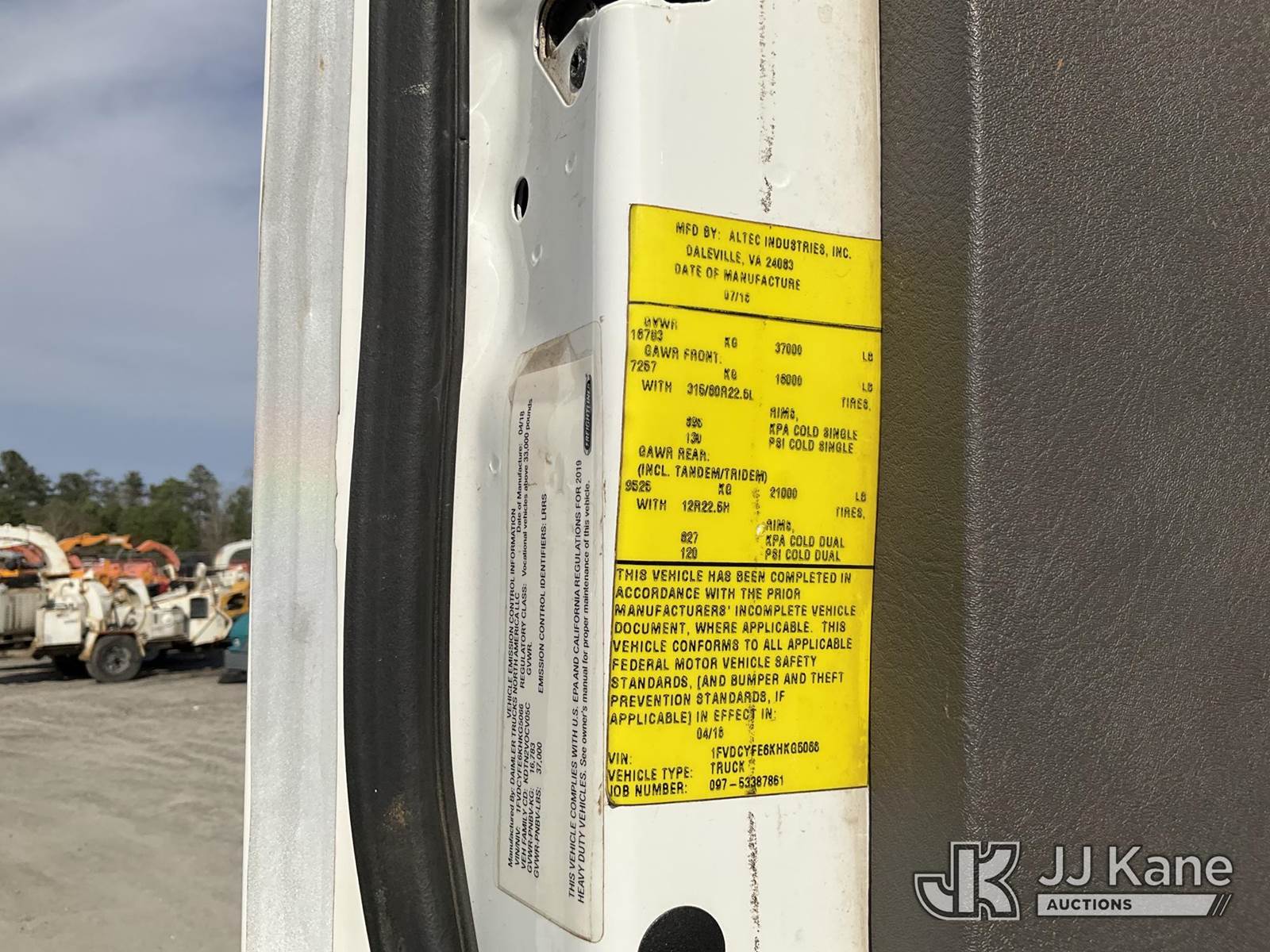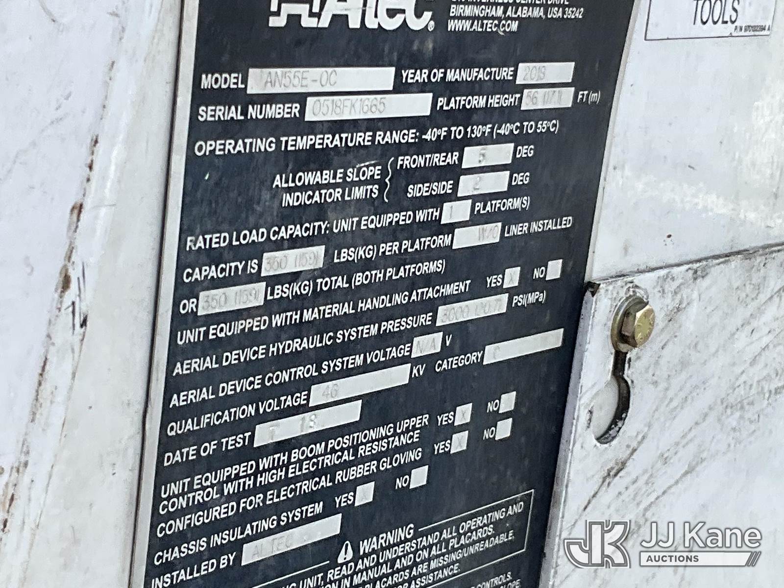 Altec AN55EOC, 61 ft, Articulating Material Handling Bucket Truck s/n 0518FK1665, with single-man bucket & 4 hyd outriggers, rear mounted on 2019 Freightliner M2 Utility Truck, Cummins L9 diesel, Auto, A/C, with front winch, (70,394 miles) (**Dealer Only** Runs, Moves, & Upper Operates) (Seller states this item has been removed from service: Fiberglass Damage on Upper Boom(Pole/Transformer fell and impacted upper boom) - Requires ANSI Inspection and Dielectric Testing for repair/replacement requirements.) (TITLE DELAY) (Bidding Restricted to Licensed Vehicle Dealers Only), This is a Titled Item NOTE: This unit is being sold AS IS/WHERE IS via Timed Auction and is located in Chester, VA. Inspection & preview days for this unit are the 2 business days prior to the first day of items closing for this auction, item is located at 13301 Great Coastal Dr Chester, VA 23836 and hours of operations are 8a-3p. For pre-sale questions, please contact Doug Caton @ 804-807-4574. (Manuals provided in cab) Sales Tax Collected Based on Residency Title To Come From Leasing Company In 30 Days(Buyer is responsible for removal. Assistance by consignor or JJ Kane Auctions is not assured.)