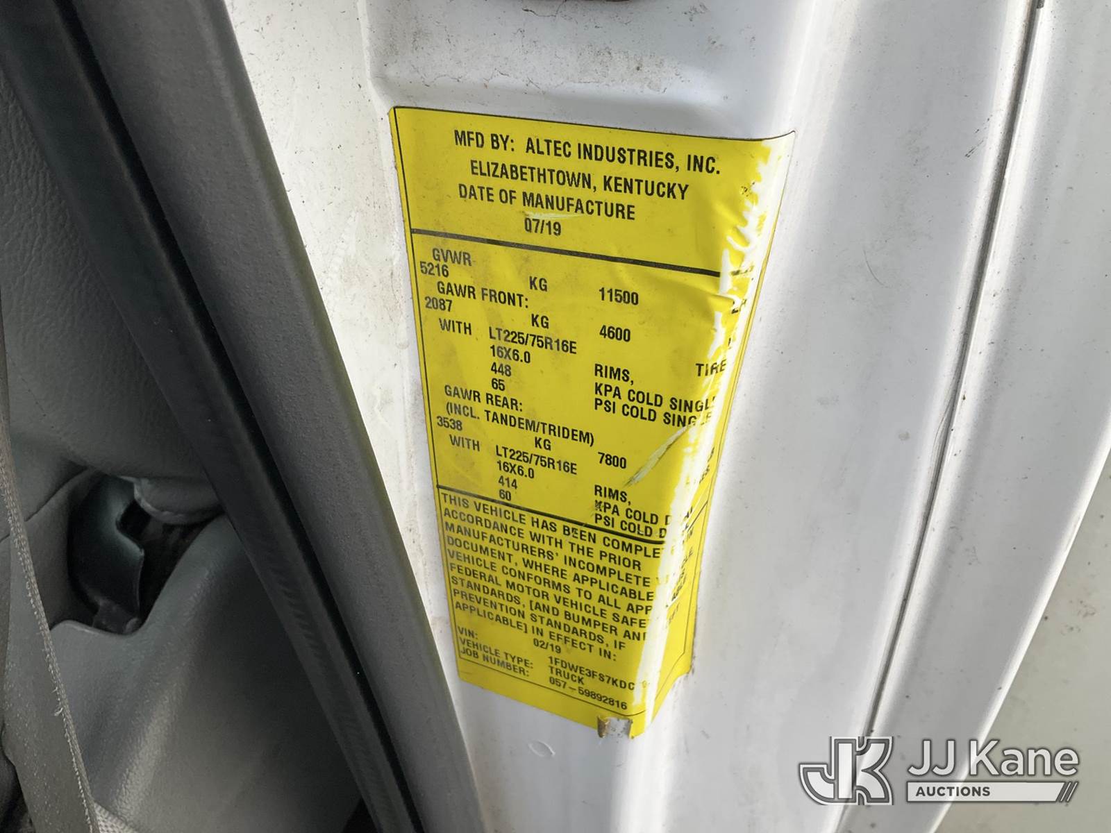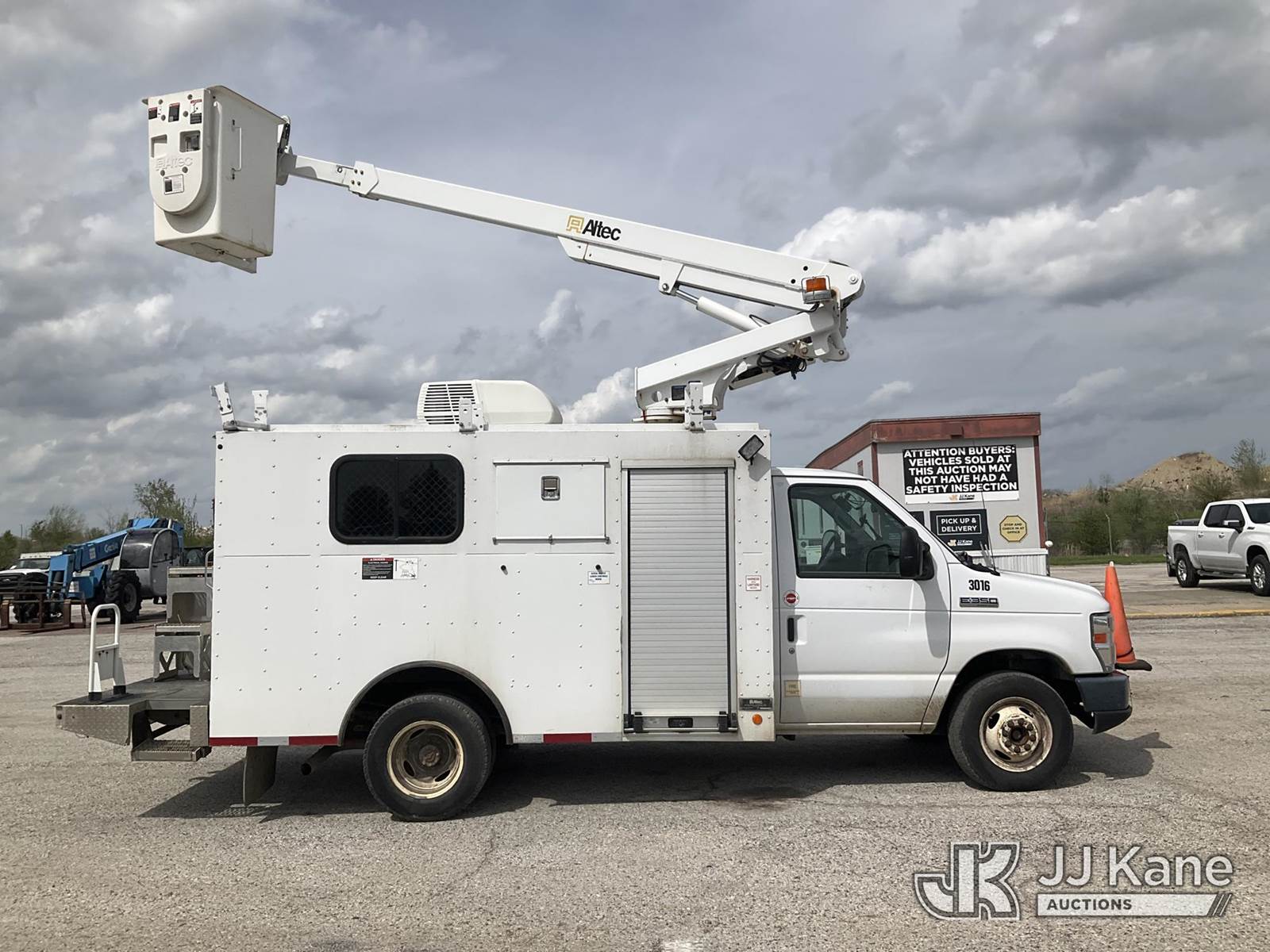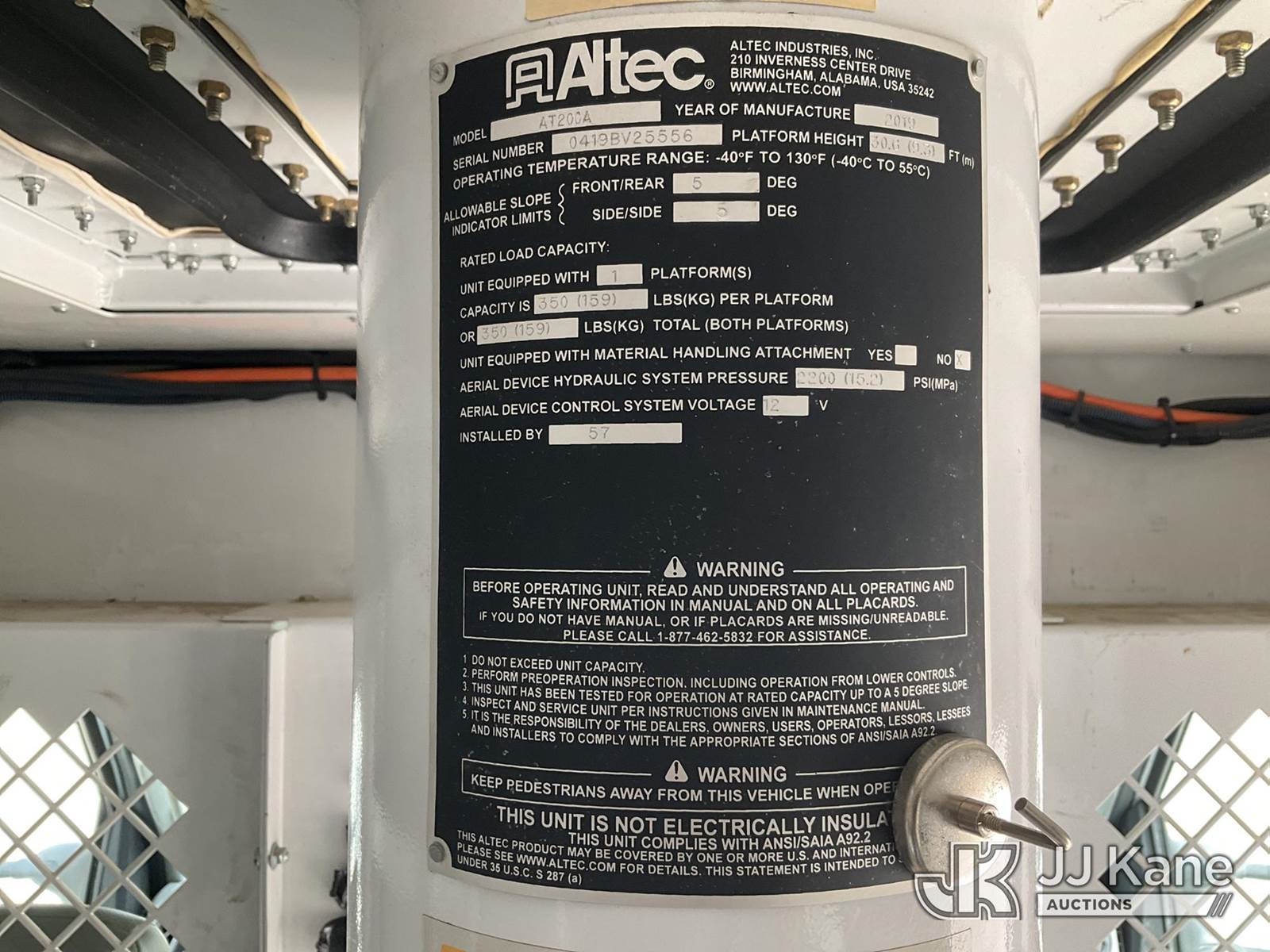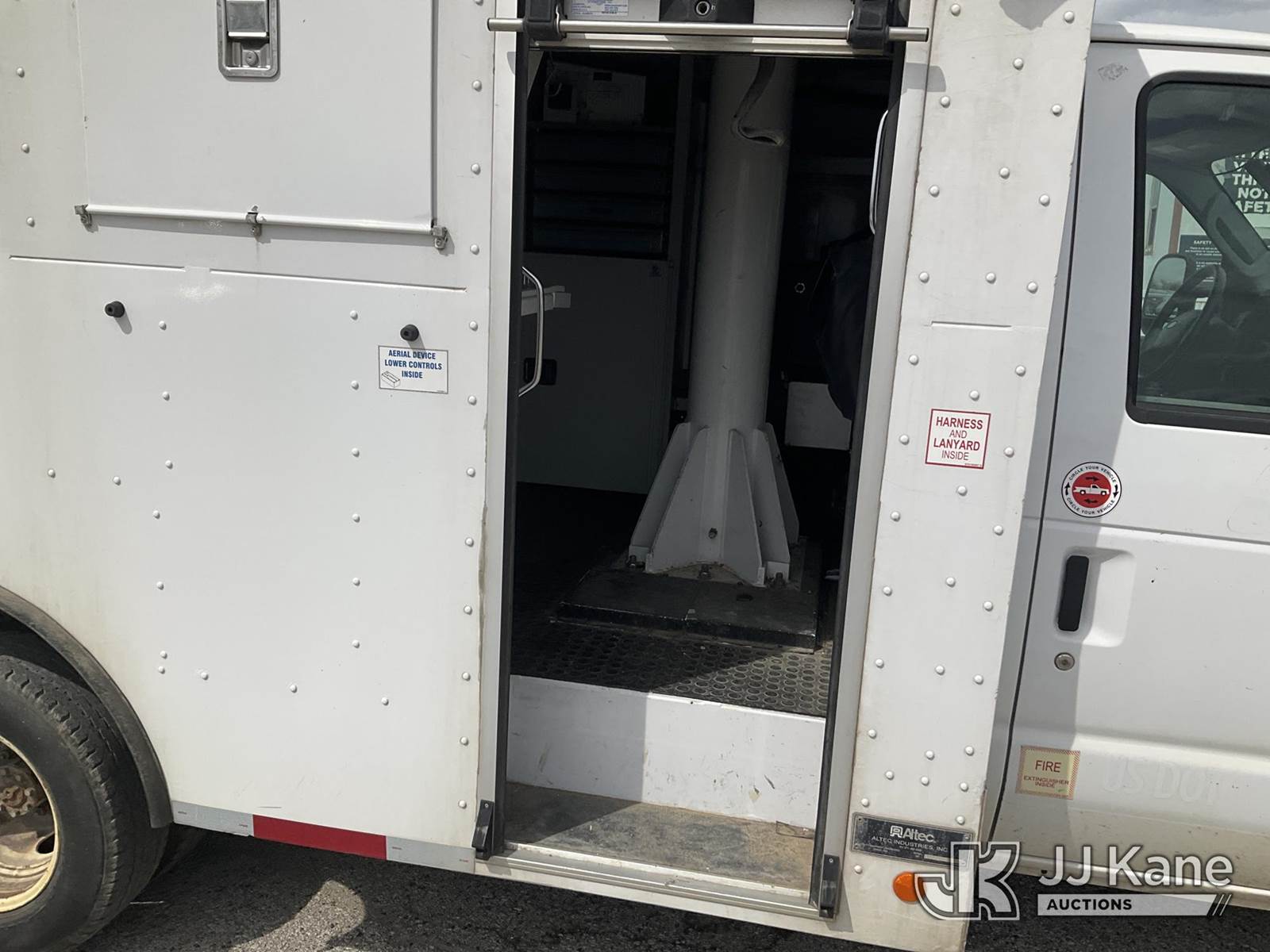 Altec AT200A, 35 ft, Telescopic Bucket Truck s/n 0419BV25556, with single-man bucket, mounted on 2019 Ford Econoline E-350 Super Duty Enclosed Service Truck, 6.8L V10 SOHC 20V RWD, GAS, Auto, A/C, with Generator & Convertor, (141,009 miles) (Runs, Moves & Operates) (Dash Warning Indicators On) (“Dealer Only”-Catalytic Converter Missing/DPF Components Missing, components have been removed. Vehicle will not pass smog and should be used for parts only unless repaired back to OEM specifications) The manufacturer has notified JJ Kane that this equipment is subject to an open recall. CSN 3008 Circuit Breaker Addition The equipment should not be operated until this is addressed. Buyer is responsible for reviewing the recall notice and contacting the manufacturer to schedule the recommended corrective actions. Associated costs may be covered by the manufacturer in some cases.) (Bidding Restricted to Licensed Vehicle Dealers Only), This is a Titled Item NOTE: This unit is being sold AS IS/WHERE IS via Timed Auction and is located in Kansas City, MO. Inspection & preview days for this unit are the 2 business days prior to the first day of items closing for this auction, item is located at 962 Tel Aviv Ave Kansas City, MO 64153 and hours of operations are 8a-4p. For pre-sale questions, please contact Ricky McPherson @ (816) 610-2250. (Manuals provided in cab) (Buyer is responsible for removal. Assistance by consignor or JJ Kane Auctions is not assured.)