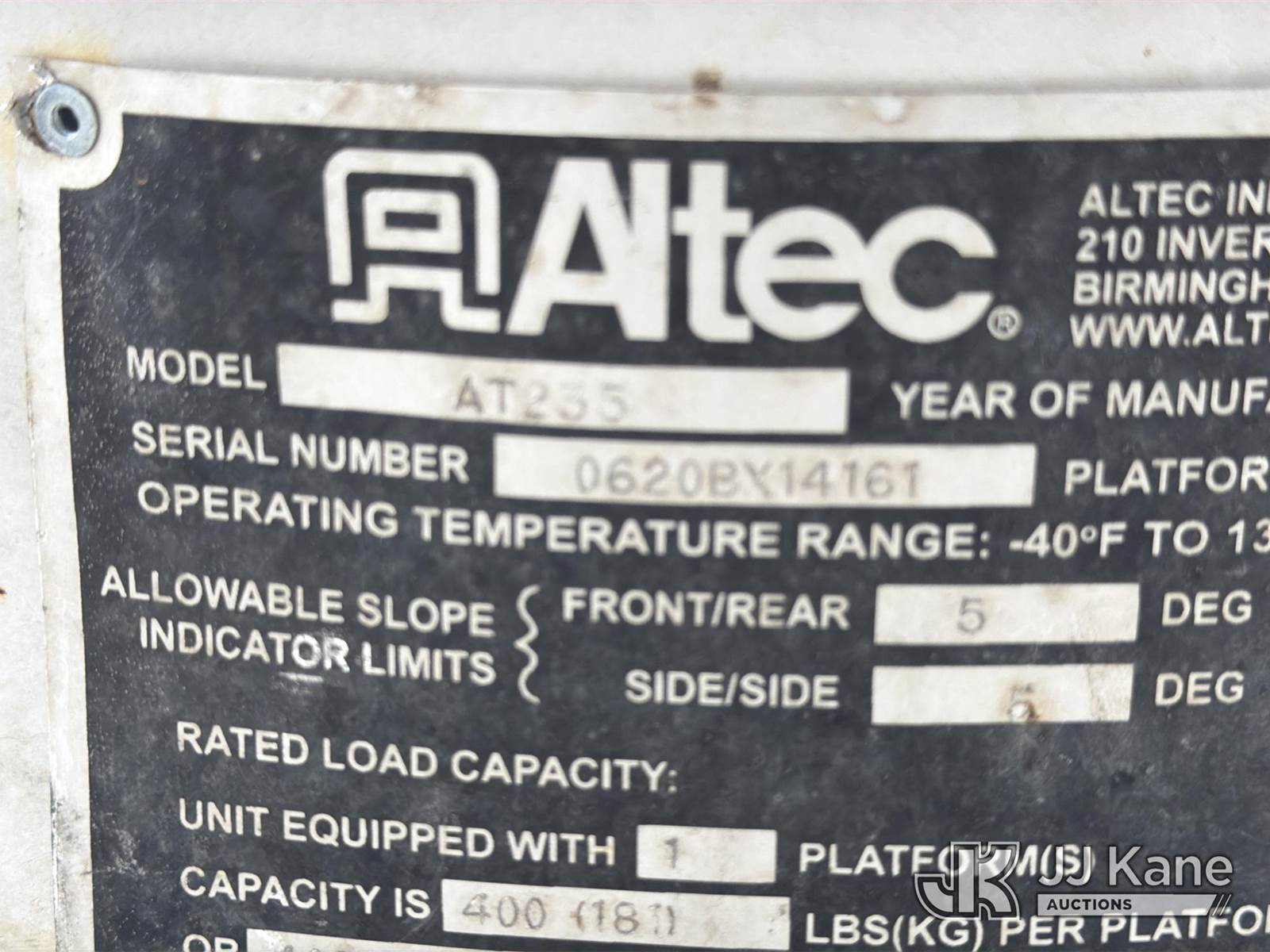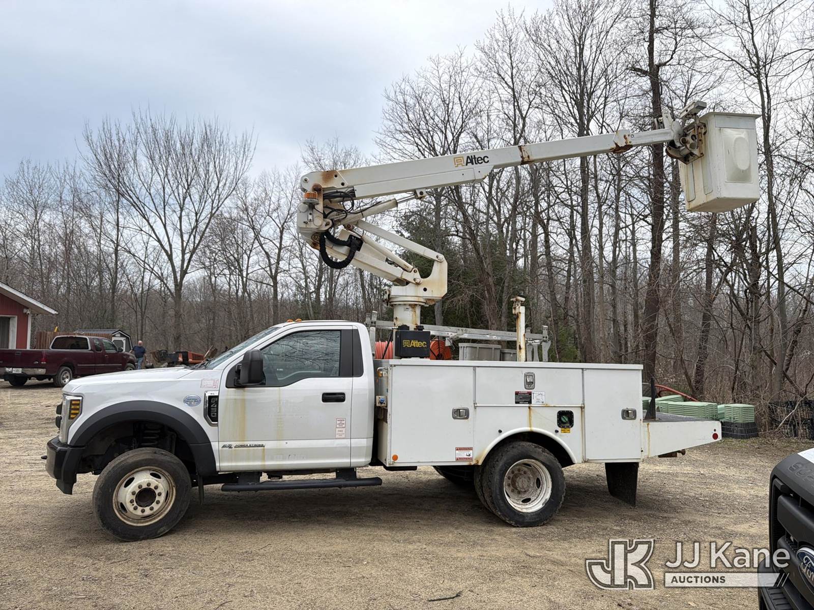 Altec AT235, 40 ft, Articulating & Telescopic Non-Insulated Bucket Truck s/n 0620BX14161, with single-man bucket, mounted behind cab on 2019 Ford F-450 SD Service Truck, 6.7L V8 OHV 16V Diesel, RWD, Auto, A/C, (196,903 miles) (Runs & Moves, Upper Unit Operates) ( The manufacturer has notified JJ Kane that this equipment is subject to an open recall. CSN 855 Fuel Line and Brake Line Inspection The equipment should not be operated until this is addressed. Buyer is responsible for reviewing the recall notice and contacting the manufacturer to schedule the recommended corrective actions. Associated costs may be covered by the manufacturer in some cases.) This is a Titled Item NOTE: This unit is being sold AS IS/WHERE IS via Timed Auction and is located in Albion, PA. For more information & removal arrangements please contact Sean Slugo @ 412-719-6276. (Missing manuals, See Auction Company for Manufacturers Information to obtain manuals) (Buyer is responsible for removal. Assistance by consignor or JJ Kane Auctions is not assured.)