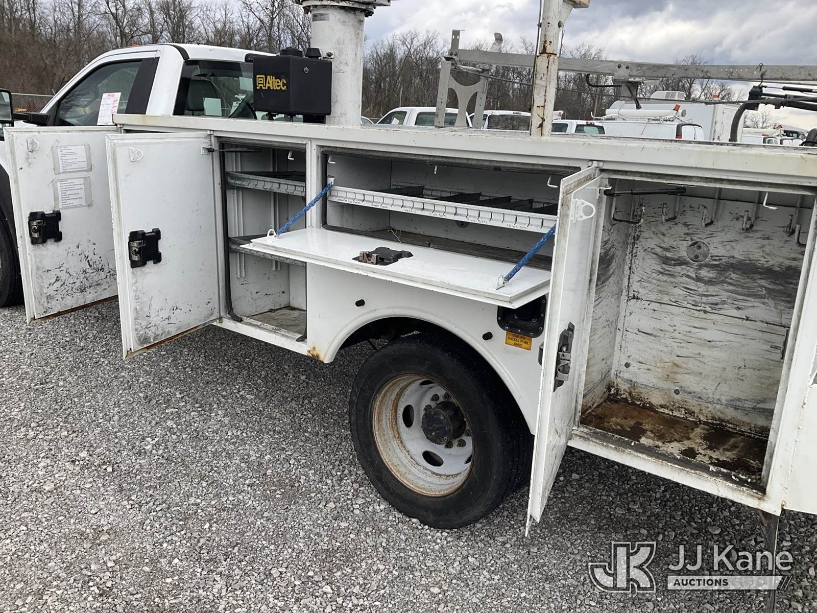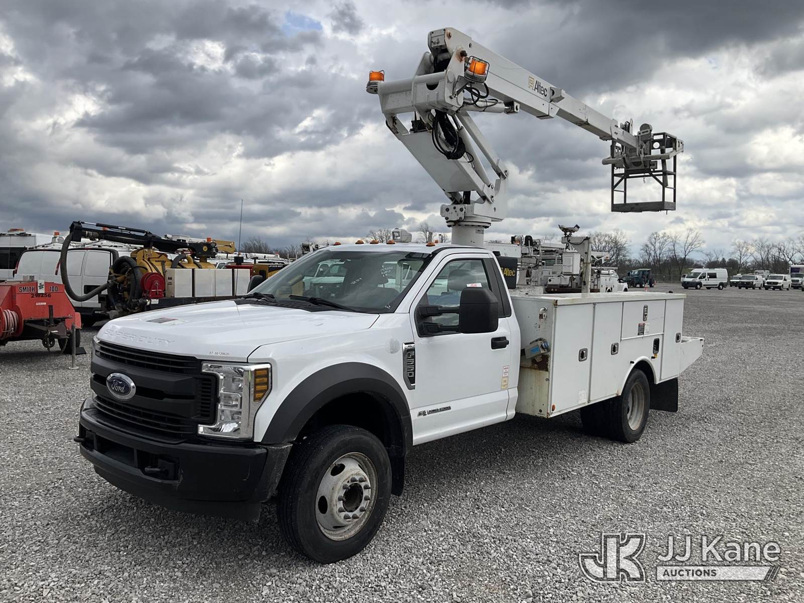 Altec AT235-P, 40 ft, Articulating & Telescopic Non-Insulated Bucket Truck s/n 0918BX11568, with single-man bucket, mounted behind cab on 2019 Ford F-550 Service Truck, 6.7L V8 OHV 16V Diesel, RWD, Auto, A/C, (209,407 miles) (Runs, Moves & Upper Operates) (Rust Damage) (The manufacturer has notified JJ Kane that this equipment is subject to an open recall. CSN 855 Fuel Line and Brake Line Inspection The equipment should not be operated until this is addressed. Buyer is responsible for reviewing the recall notice and contacting the manufacturer to schedule the recommended corrective actions. Associated costs may be covered by the manufacturer in some cases.) This is a Titled Item NOTE: This unit is being sold AS IS/WHERE IS via Timed Auction and is located in Verona, KY. Inspection & preview days for this unit are the 2 business days prior to the first day of items closing for this auction, item is located at 2841 Verona-Mudlick Rd Ste B Verona, KY 41092 and hours of operations are 8a-4p. For pre-sale questions, please contact Office Staff @ (502) 612-5080. Auctioneer Michael Whitebread / License # 256617. (Manuals provided in cab) (Buyer is responsible for removal. Assistance by consignor or JJ Kane Auctions is not assured.)