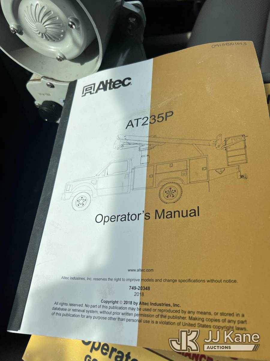 Altec AT235-P, 40 ft, Articulating & Telescopic Non-Insulated Cable Placing Bucket Truck s/n 0918BX11613, with single-man basket, mounted behind cab on 2019 Ford F550 Service Truck, 6.7L diesel, Auto, A/C, (193,323 miles (unverified)) (Runs, Moves & Upper Operates) (Body Damage, Ladder Rack Damaged) This is a Titled Item NOTE: This unit is being sold AS IS/WHERE IS via Timed Auction and is located in Chester, VA. Inspection & preview days for this unit are the 2 business days prior to the first day of items closing for this auction, item is located at 13301 Great Coastal Dr Chester, VA 23836 and hours of operations are 7am-3pm. For pre-sale questions, please contact Doug Caton @ 804-807-4574. (Manuals provided in cab) (Buyer is responsible for removal. Assistance by consignor or JJ Kane Auctions is not assured.)