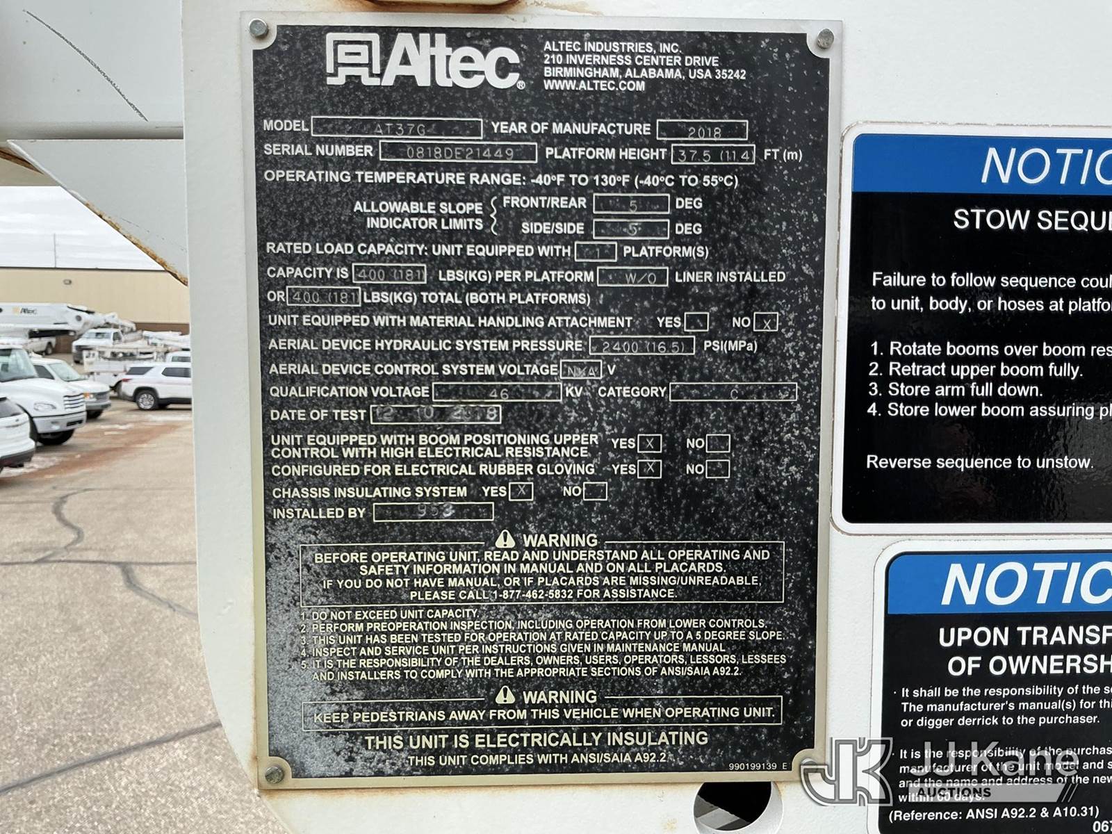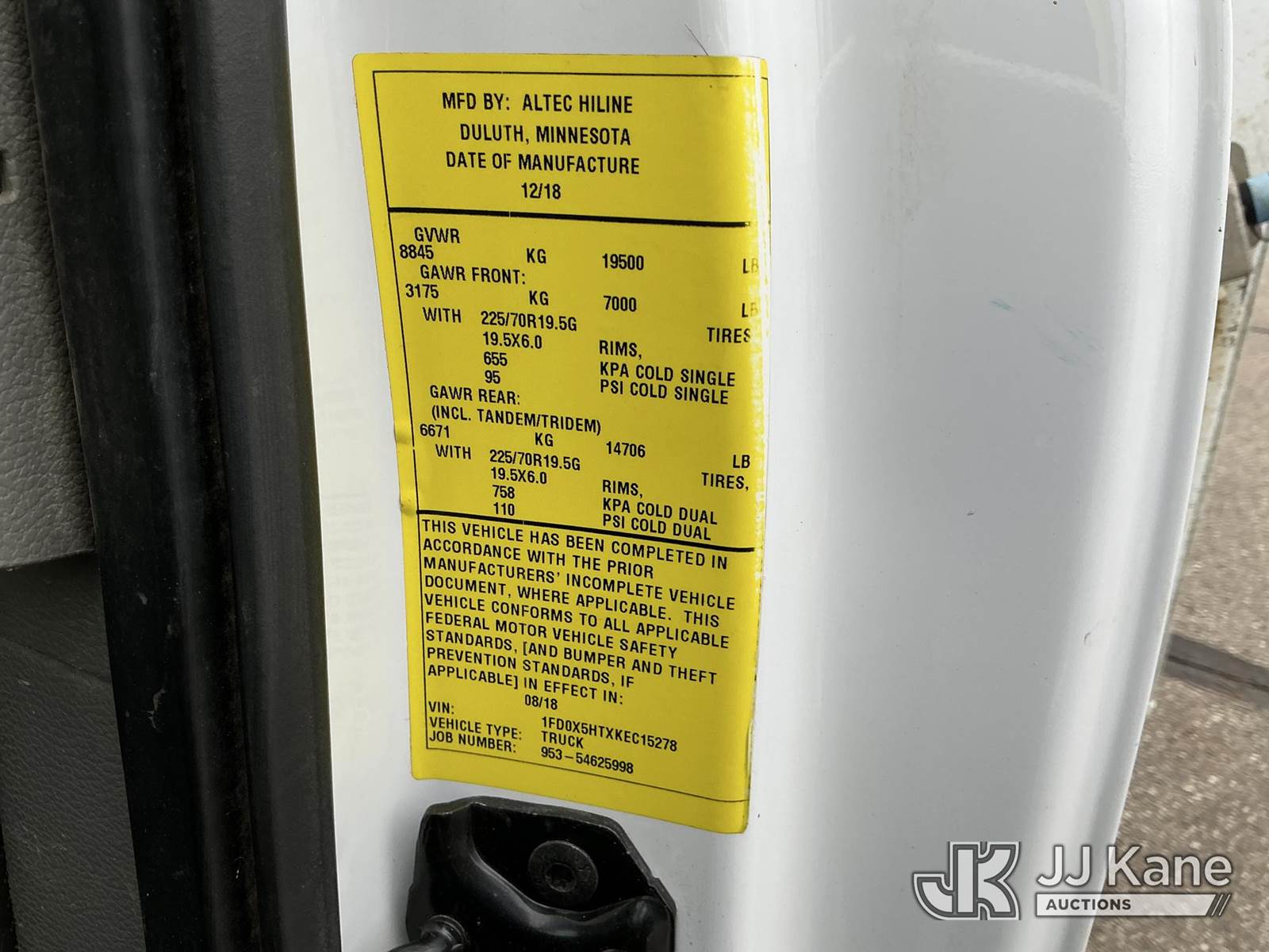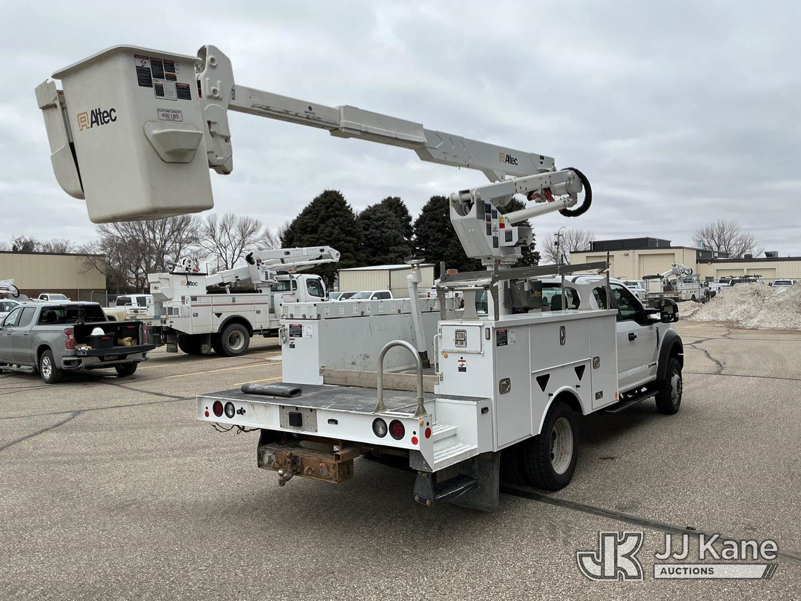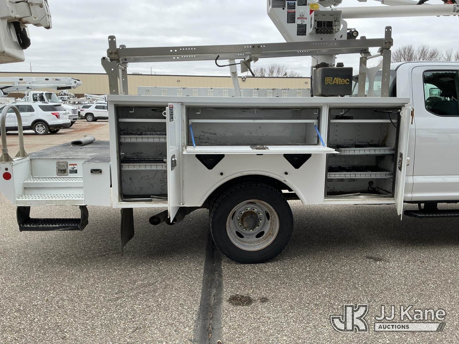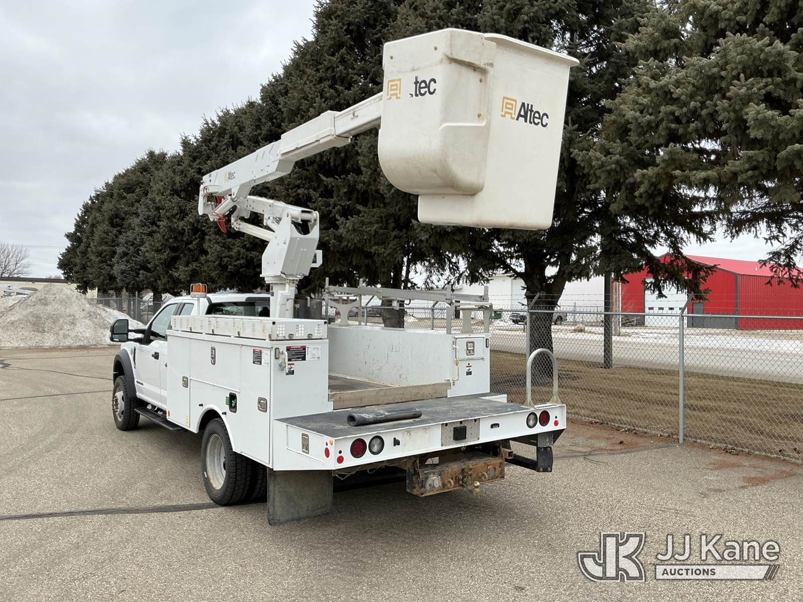 Altec AT37G, 42 ft, Articulating & Telescopic Bucket Truck s/n 0818DE21449, with single-man bucket, mounted behind cab on 2019 Ford F550 4x4 Extended-Cab Service Truck, 6.7L V8 OHV 16V DIESEL, Auto, A/C, (146,494 miles) Investor Utility Owned (Runs, Moves & Upper Operates) (Reads 7,852 hours) This is a Titled Item NOTE: This unit is being sold AS IS/WHERE IS via Timed Auction and is located in Bismarck, ND. For specific technical information or questions about this item, contact Ben Boucher at (612) 616-2798. For load-out and pick information, reference the hauler sheet sent out after purchase. These items are used and may contain defects that are not immediately detectable. Text descriptions and photos given are meant to be used as a guide only. The conditions are provided by the consignor. The Buyer is responsible for inspecting the item before bidding. Purchaser acknowledges ALL lots must be removed within 10 business days of the Auction, or a storage fee may be incurred. All information provided is believed to be correct but no warranty as such is either intended or implied. All items are sold AS IS - WHERE IS AND WITH ALL FAULTS AND DEFECTS THEREIN. (Manuals provided in cab) (Buyer is responsible for removal. Assistance by consignor or JJ Kane Auctions is not assured.)