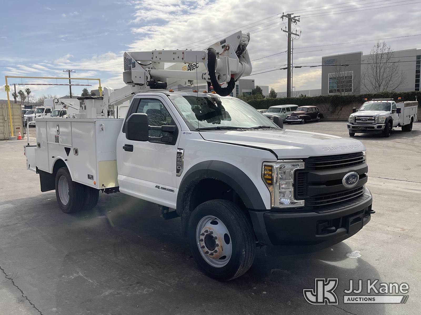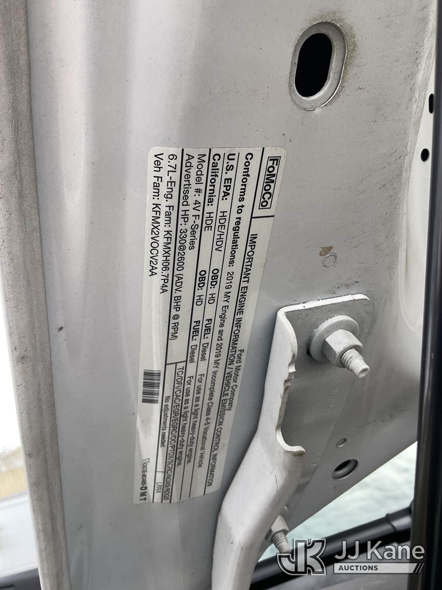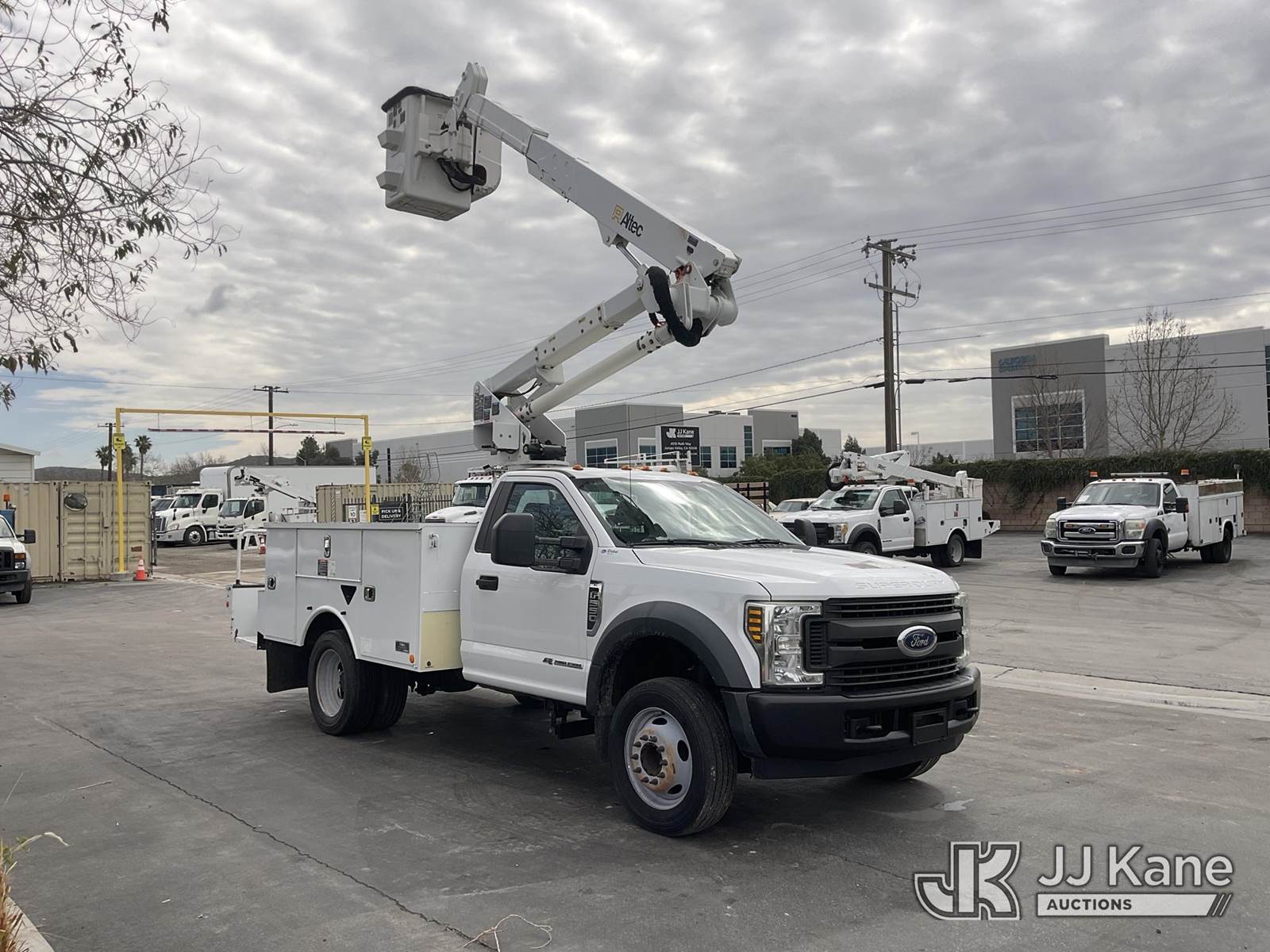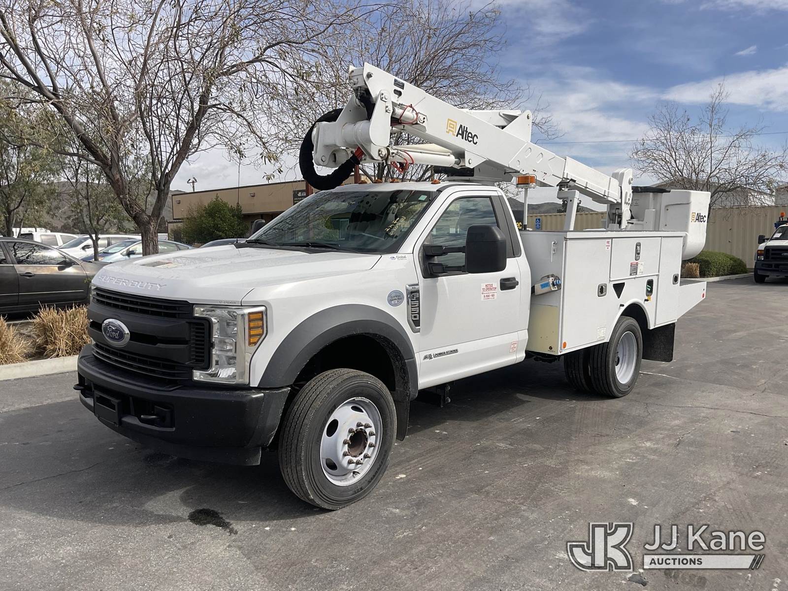 Altec AT37G, 42 ft, Articulating & Telescopic Bucket Truck s/n 0119DE21952, with Single-Man Bucket, mounted behind cab on 2019 Ford F-550 Service Truck, 6.7L Diesel Auto, A/C, (128,991 miles) (Runs, Moves & Operates The manufacturer has notified JJ Kane that this equipment is subject to an open recall. CSN 855 Fuel Line and Brake Line Inspection The equipment should not be operated until this is addressed. Buyer is responsible for reviewing the recall notice and contacting the manufacturer to schedule the recommended corrective actions. Associated costs may be covered by the manufacturer in some cases.) (Reads 5,991 hours) May be subject to ARB Regulations This is a Titled Item NOTE: This unit is being sold AS IS/WHERE IS via Timed Auction and is located in Jurupa Valley, CA. Inspection & preview days for this unit are the 2 business days prior to the first day of items closing for this auction, item is located at 4510 Muth Way Jurupa Valley, CA 92509 and hours of operations are 8a-4p. For pre-sale questions, please contact please contact Office Staff @ (310) 353-7140. Dealer License Number 45696. (Missing manuals, See Auction Company for Manufacturers Information to obtain manuals) (Buyer is responsible for removal. Assistance by consignor or JJ Kane Auctions is not assured.)