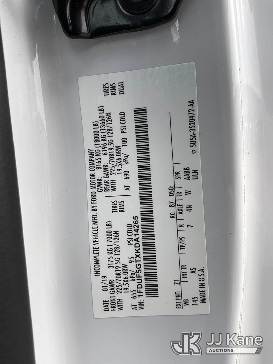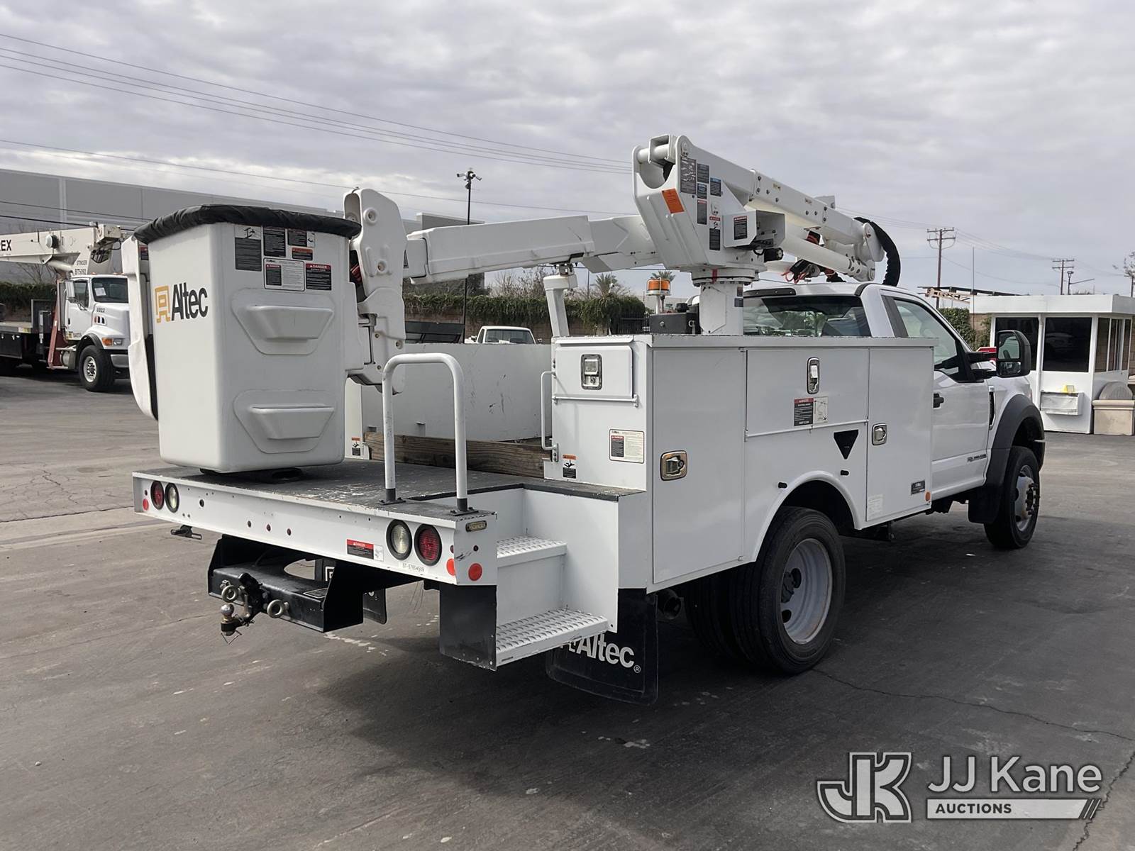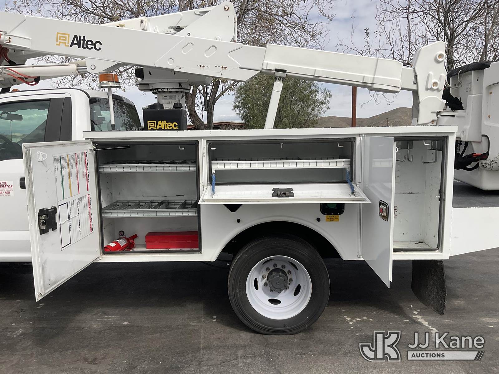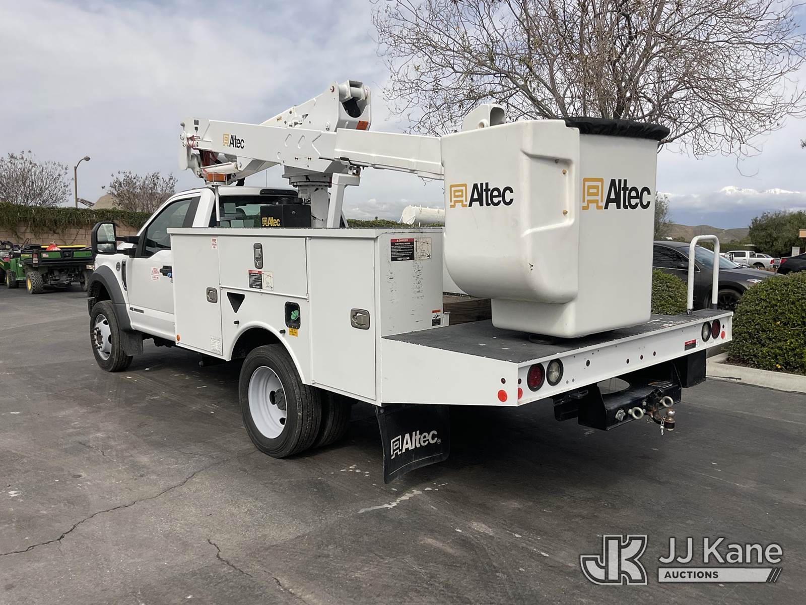Altec AT37G, 42 ft, Articulating & Telescopic Bucket Truck s/n 0119DE21952, with Single-Man Bucket, mounted behind cab on 2019 Ford F-550 Service Truck, 6.7L Diesel Auto, A/C, (128,991 miles) (Runs, Moves & Operates The manufacturer has notified JJ Kane that this equipment is subject to an open recall. CSN 855 Fuel Line and Brake Line Inspection The equipment should not be operated until this is addressed. Buyer is responsible for reviewing the recall notice and contacting the manufacturer to schedule the recommended corrective actions. Associated costs may be covered by the manufacturer in some cases.) (Reads 5,991 hours) May be subject to ARB Regulations This is a Titled Item NOTE: This unit is being sold AS IS/WHERE IS via Timed Auction and is located in Jurupa Valley, CA. Inspection & preview days for this unit are the 2 business days prior to the first day of items closing for this auction, item is located at 4510 Muth Way Jurupa Valley, CA 92509 and hours of operations are 8a-4p. For pre-sale questions, please contact please contact Office Staff @ (310) 353-7140. Dealer License Number 45696. (Missing manuals, See Auction Company for Manufacturers Information to obtain manuals) (Buyer is responsible for removal. Assistance by consignor or JJ Kane Auctions is not assured.)