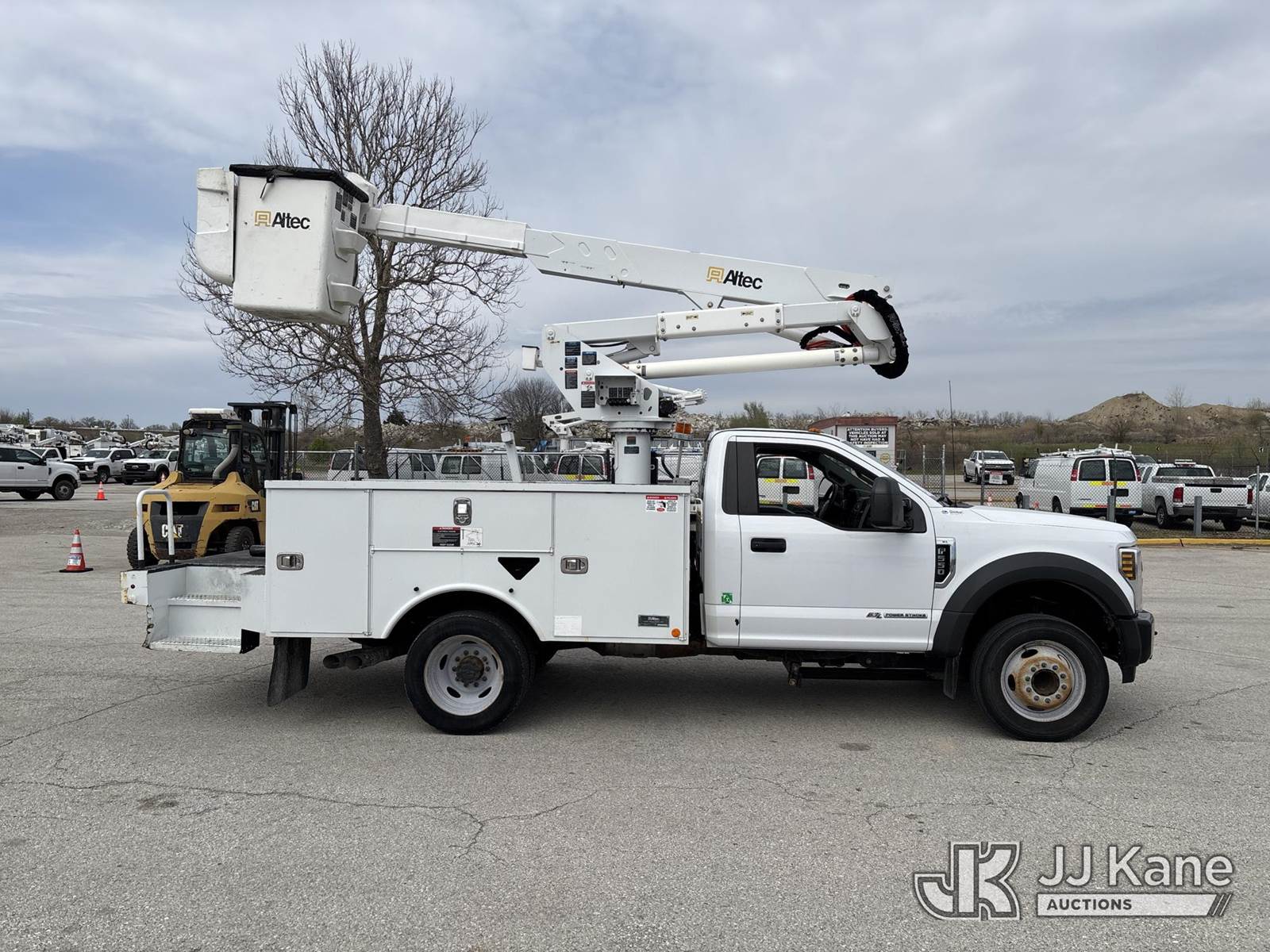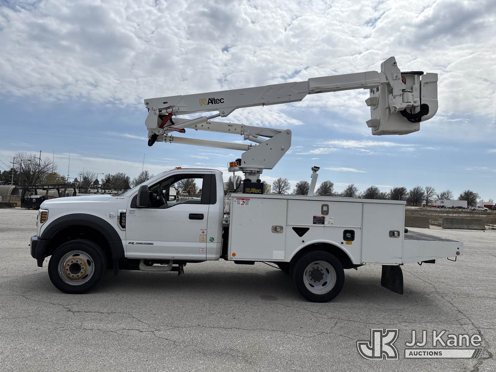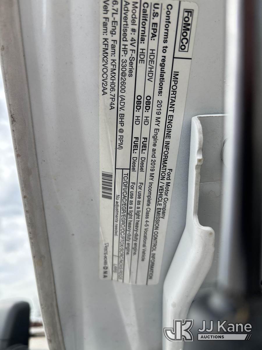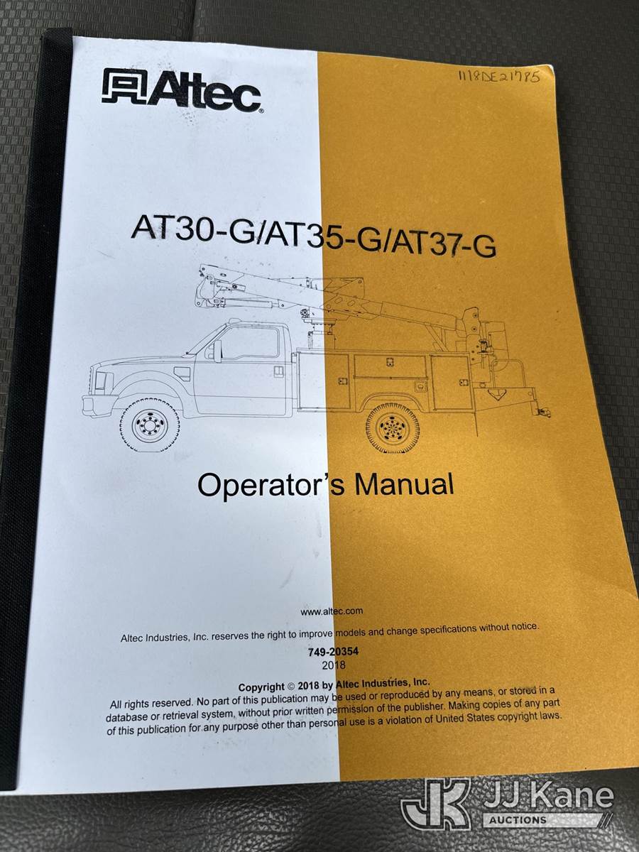 Altec AT37G, 42 ft, Bucket Truck s/n 1118DE21785, with Single-Man Bucket, mounted behind cab on 2019 Ford F550 Service Truck, 6.7L Diesel 2wd, Auto, A/C, (54,976 miles) (Runs, Moves & Upper Operates) (Dash Warning Indicators On)) (Reads 5,154 hours) This is a Titled Item NOTE: This unit is being sold AS IS/WHERE IS via Timed Auction and is located in Kansas City, MO. Inspection & preview days for this unit are the 2 business days prior to the first day of items closing for this auction, item is located at 962 Tel Aviv Ave Kansas City, MO 64153 and hours of operations are 8a-4p. For pre-sale questions, please contact Ricky McPherson @ (816) 610-2250. (Manuals provided in cab) (Buyer is responsible for removal. Assistance by consignor or JJ Kane Auctions is not assured.)